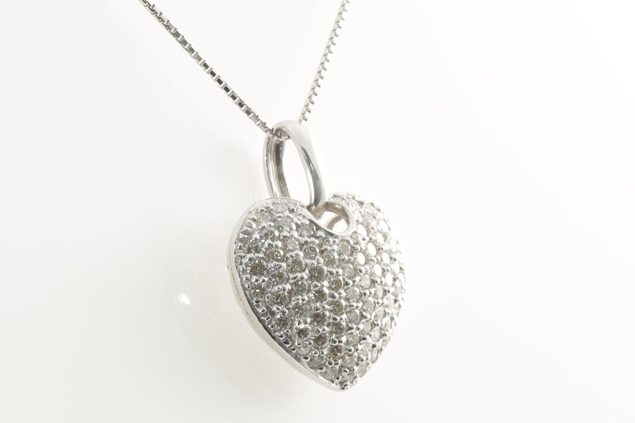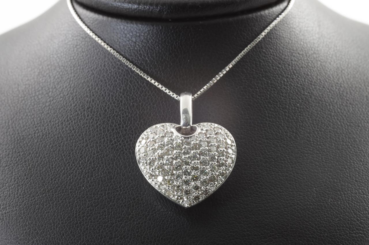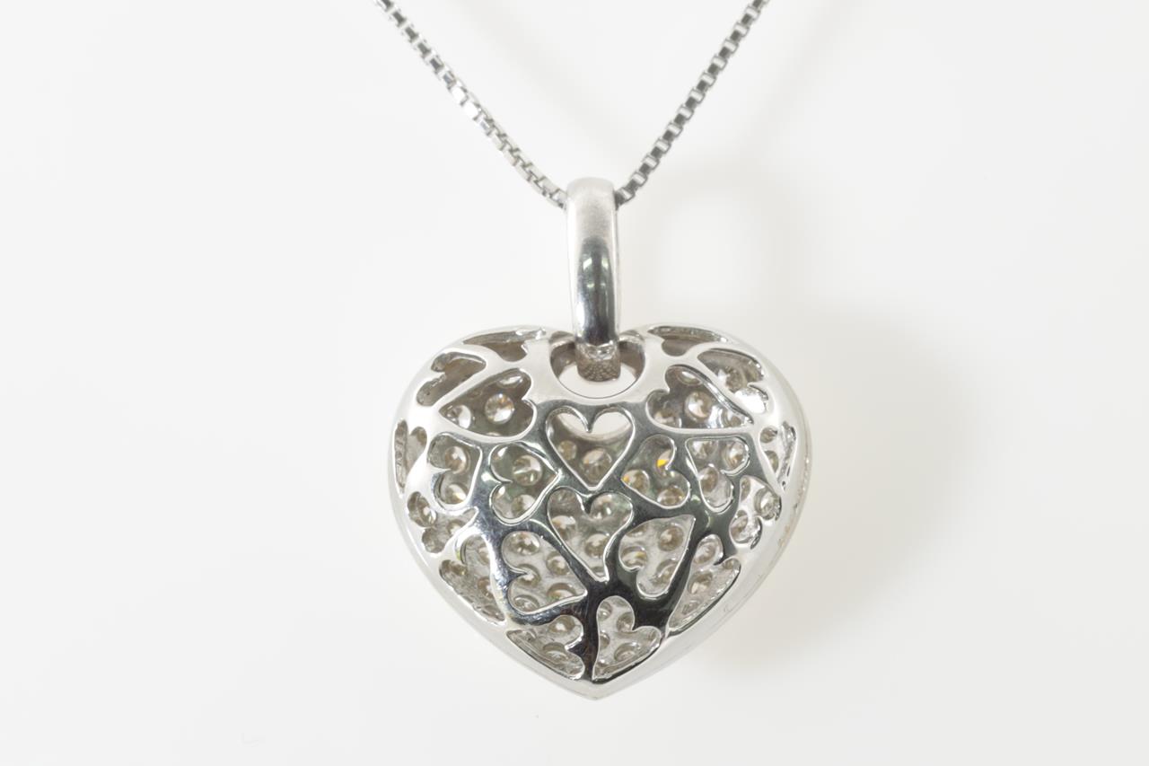 Diamond heart shape pendant with round Diamonds totalling 2.00cts (Estimated grading: H SI). Platinum with adjustable 45cm chain. Weight: 12g. (Pre-owned)