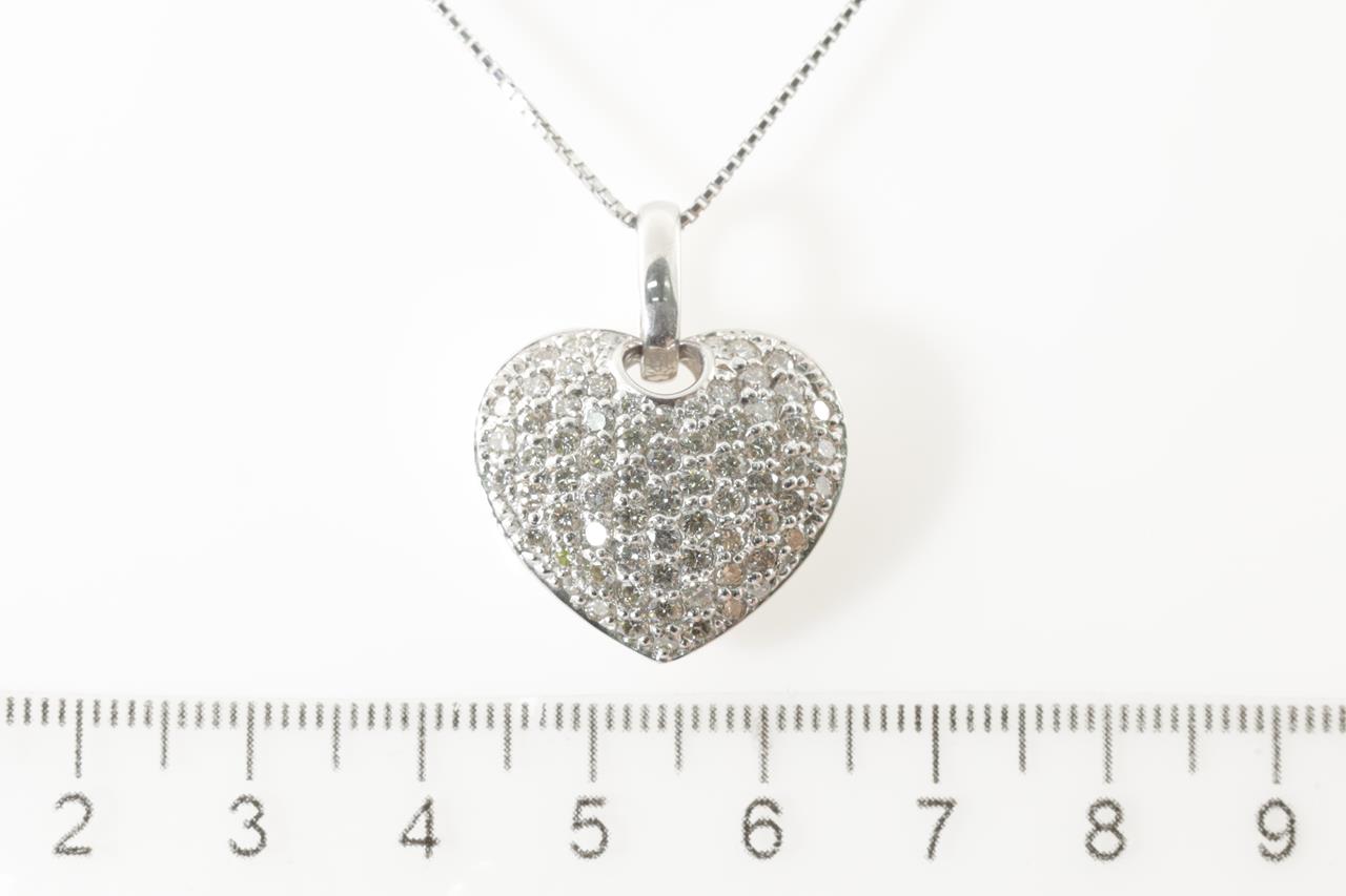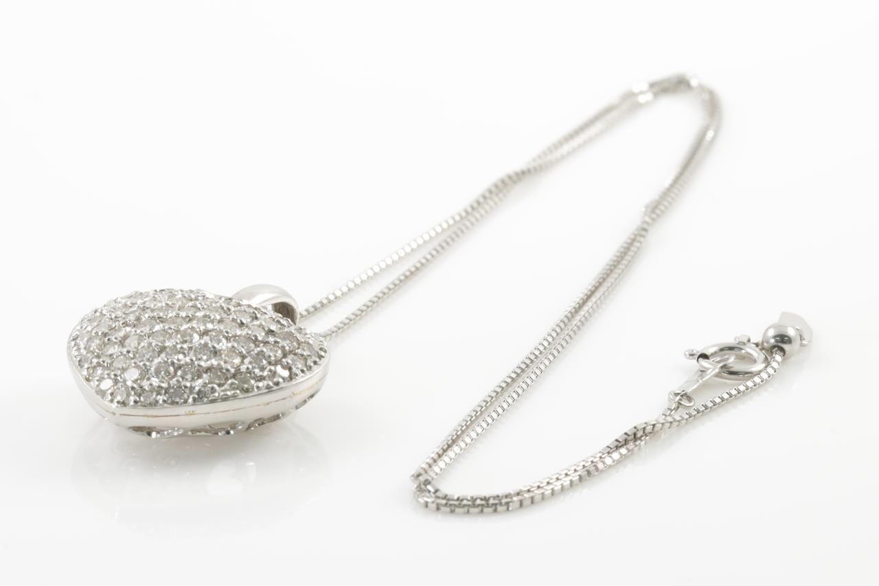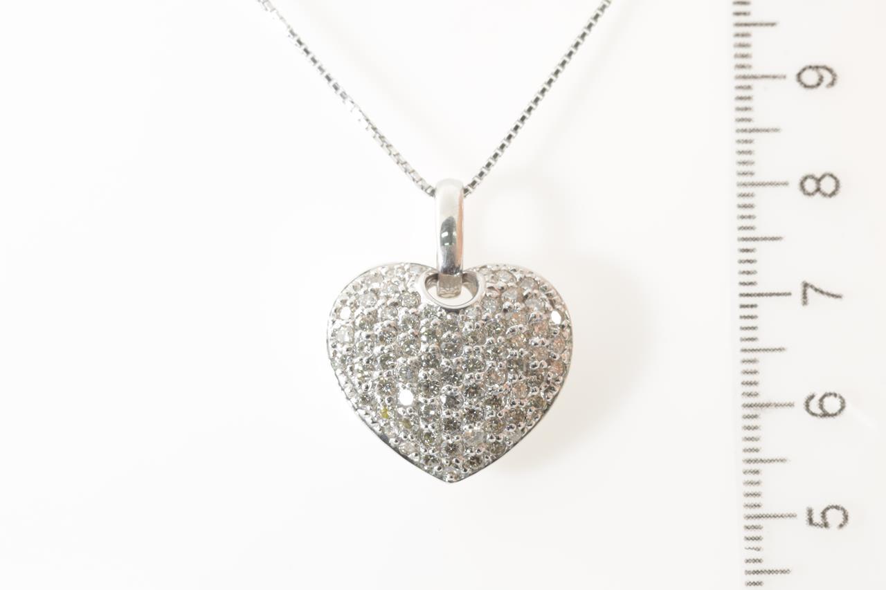 Diamond heart shape pendant with round Diamonds totalling 2.00cts (Estimated grading: H SI). Platinum with adjustable 45cm chain. Weight: 12g. (Pre-owned)
