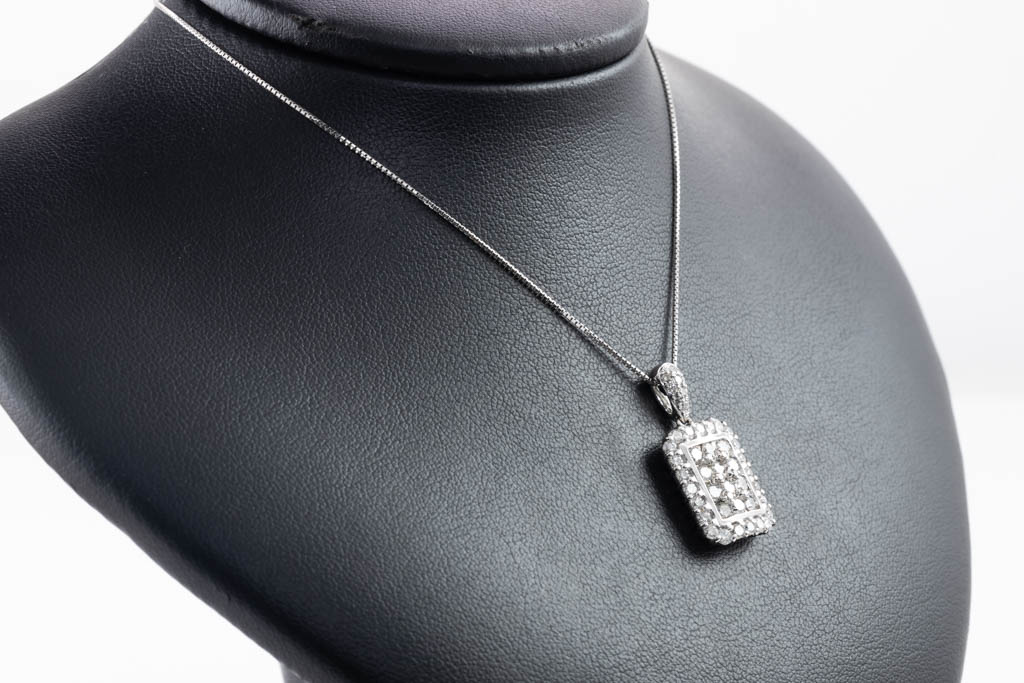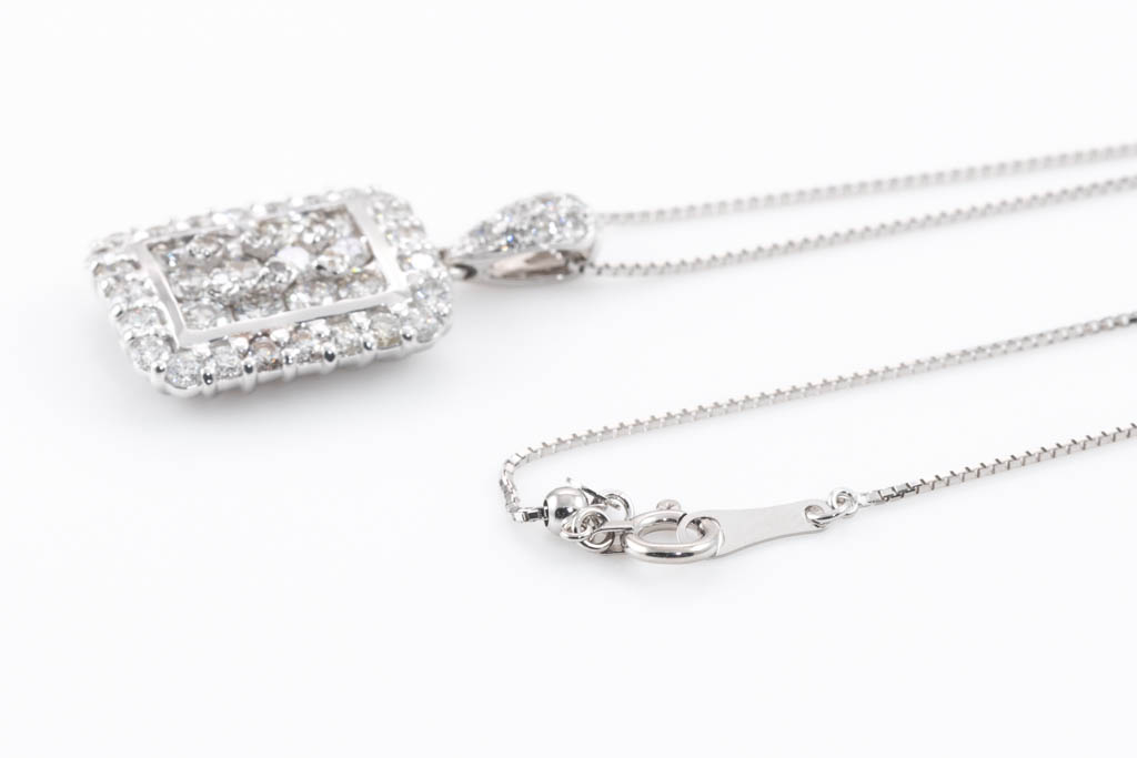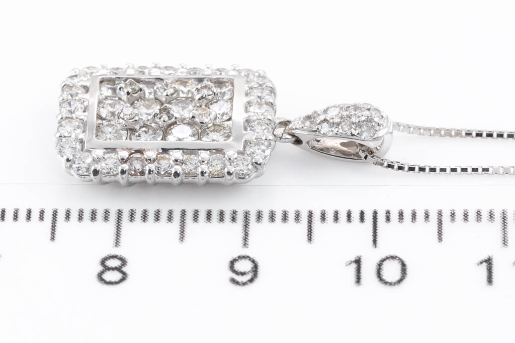 Diamond pendant with round Diamonds totalling 2.00cts (Estimated grading: I-J SI). 18ct white gold with 18ct white gold adjustable 44cm chain. Weight: 7.5g. (Pre-owned)