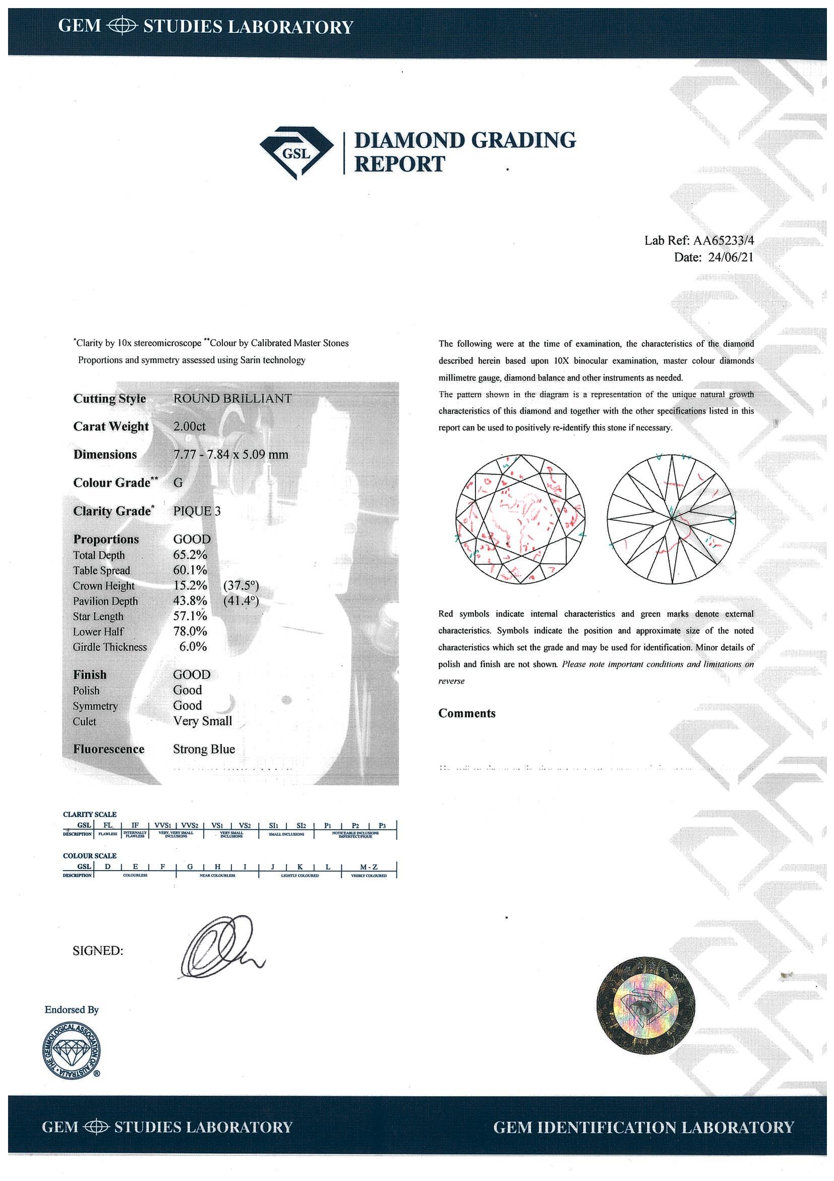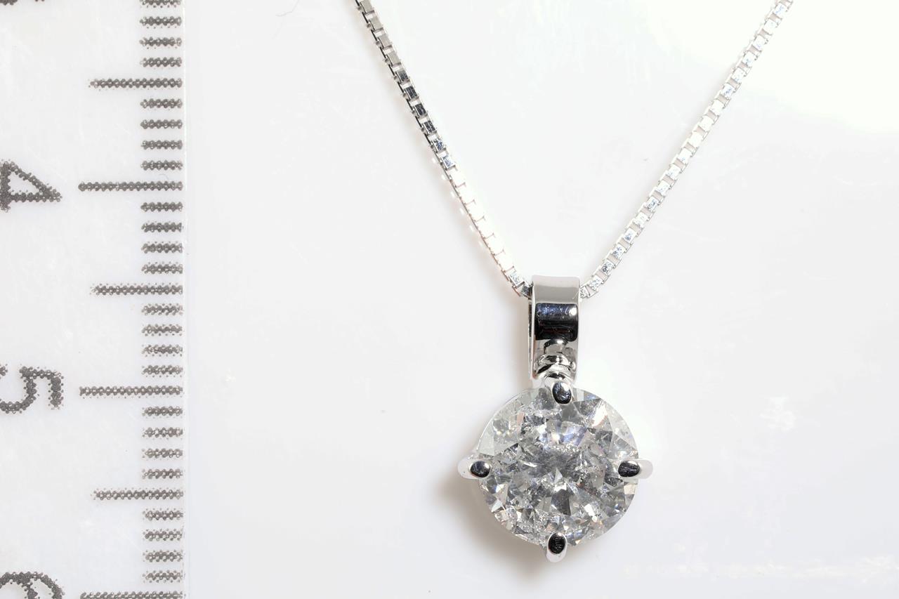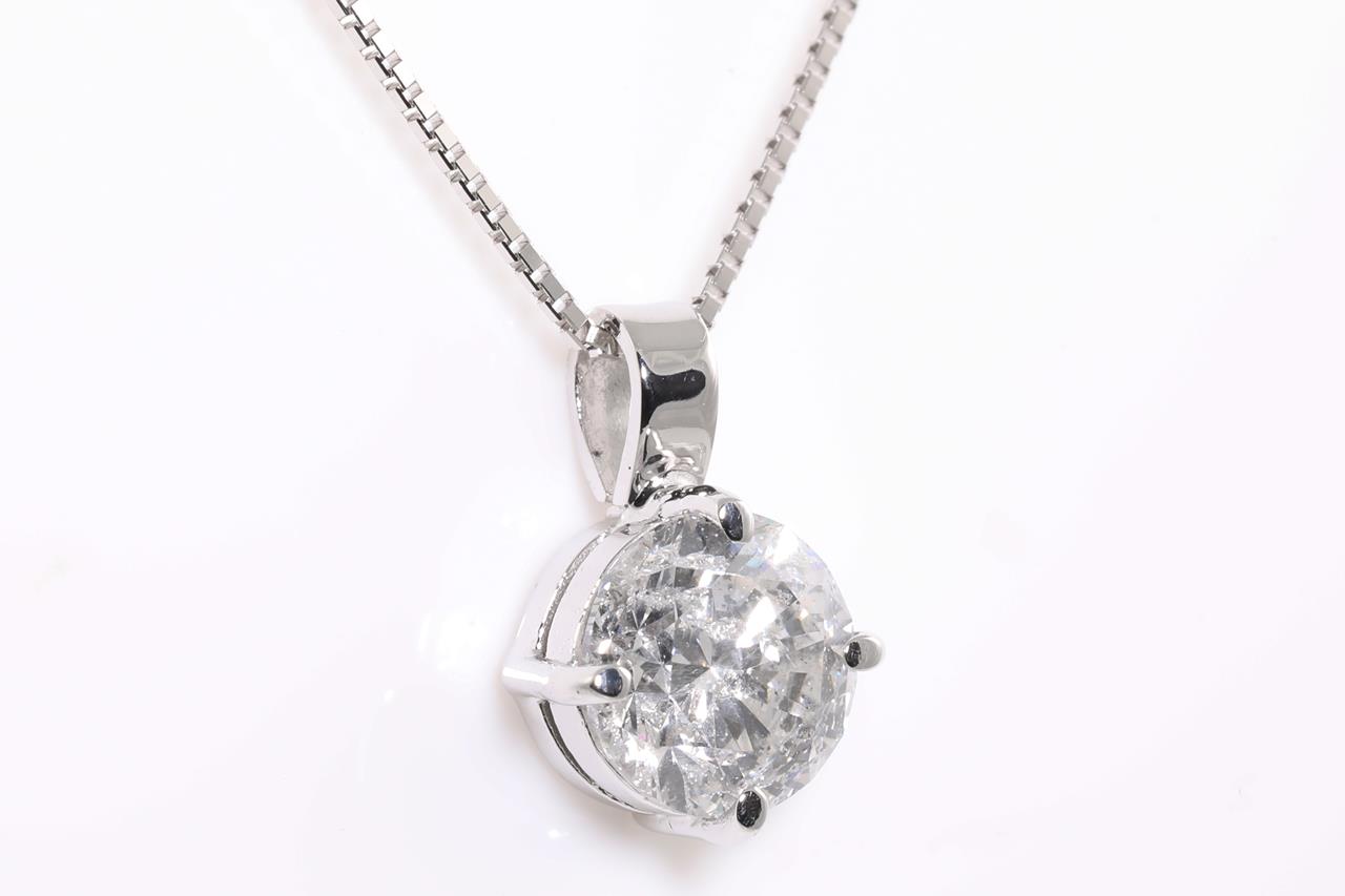 Diamond Solitaire pendant with Round Brilliant Cut Diamond of 2.00ct (With GSL Report graded as G P3 #AA65233/4. 18ct white gold wiith 44cm adjustable chain. Weight: 4.1g (New)