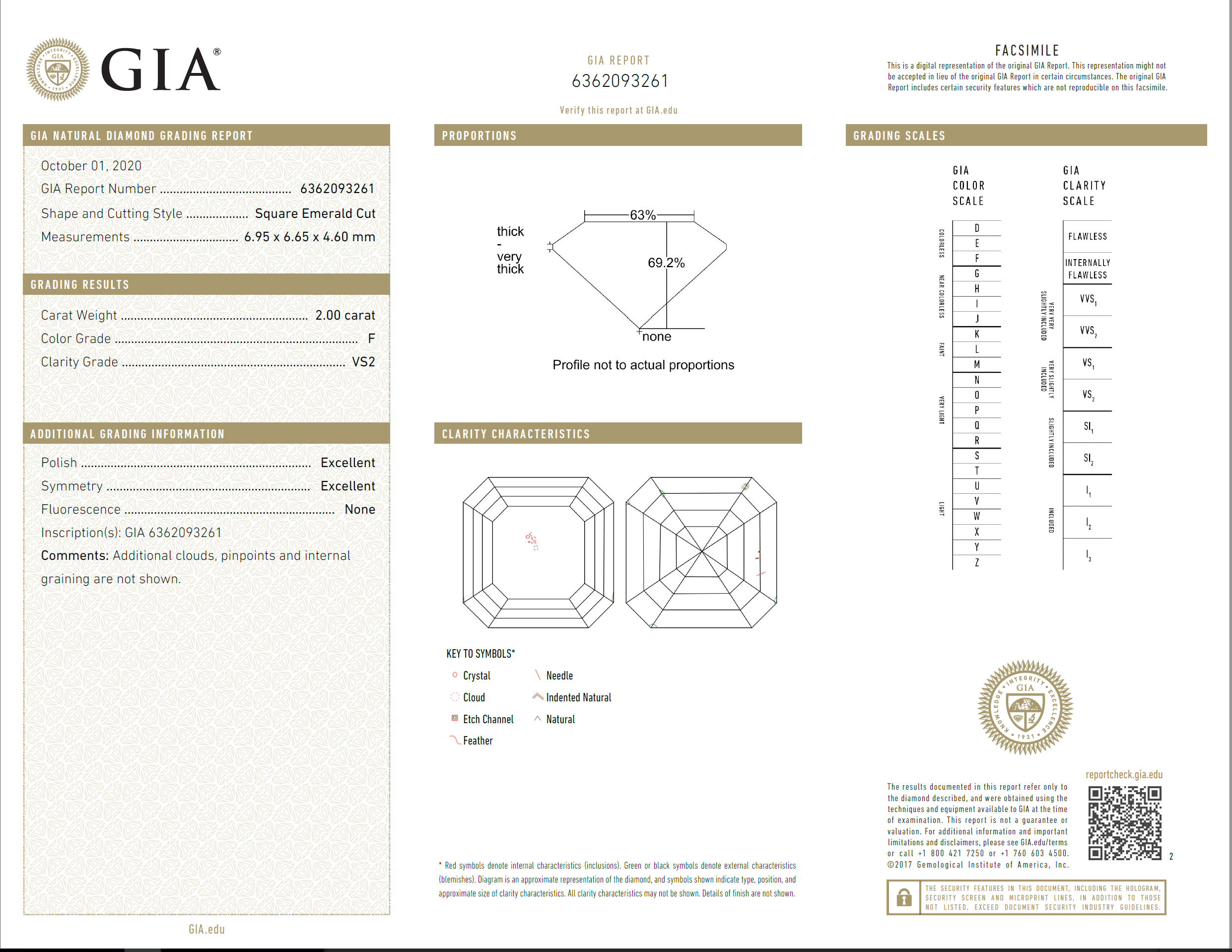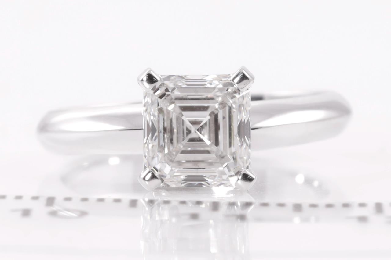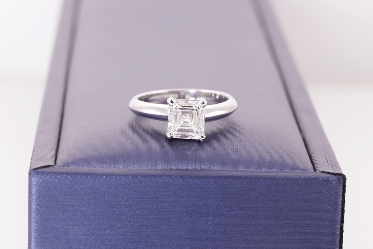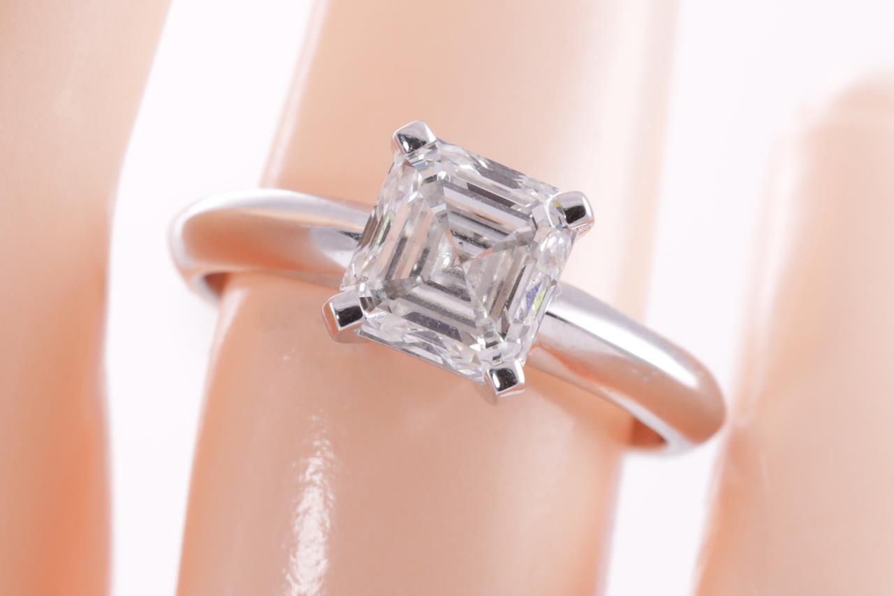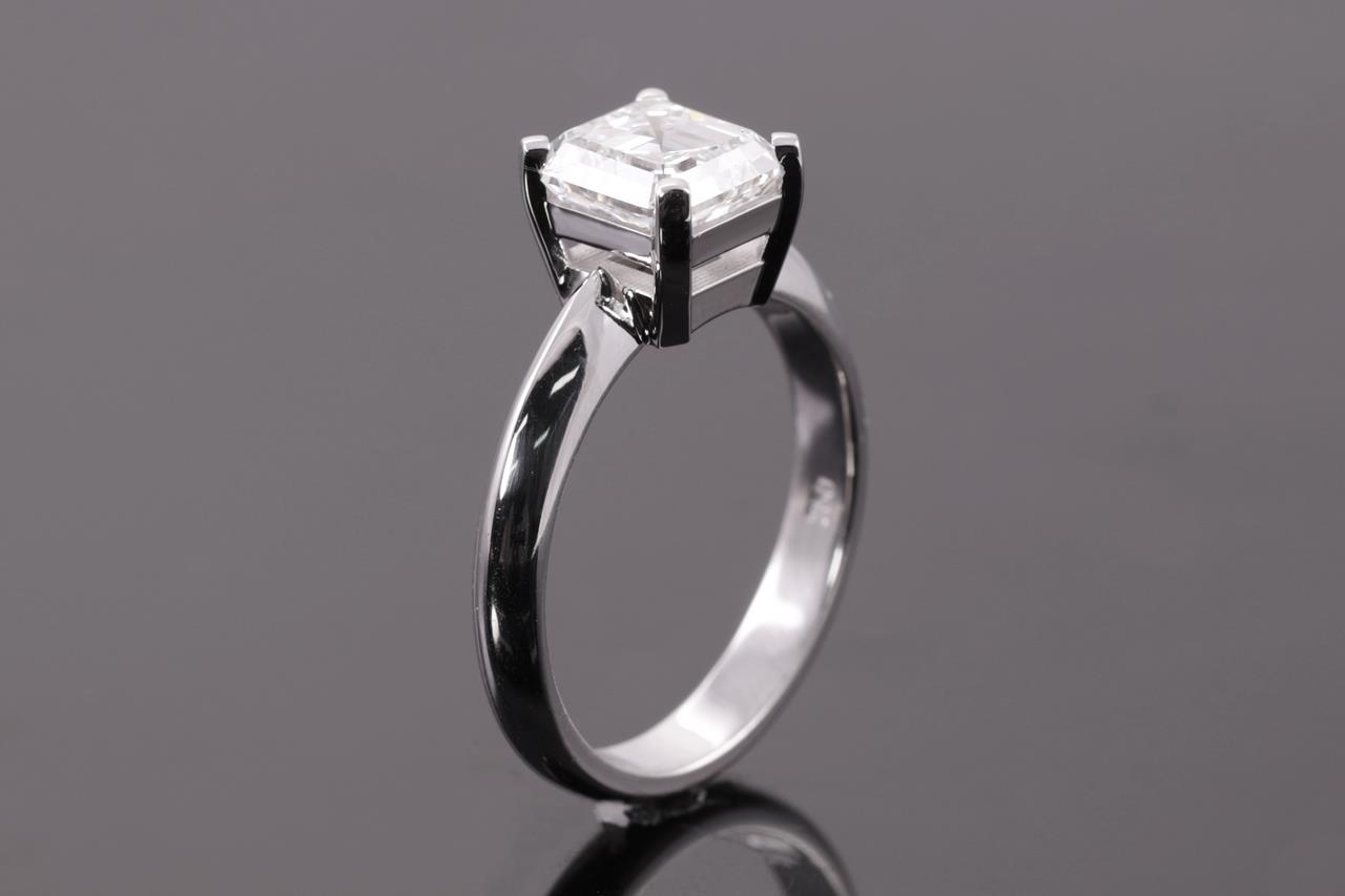Diamond Solitaire Ring with Square Emerald Cut Diamond of 2.00ct (with GIA report graded as F VS2 #6362093261). 18ct white gold. Ring size L1/2. Weight: 5.4g. (New)