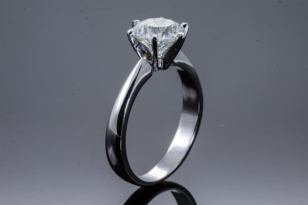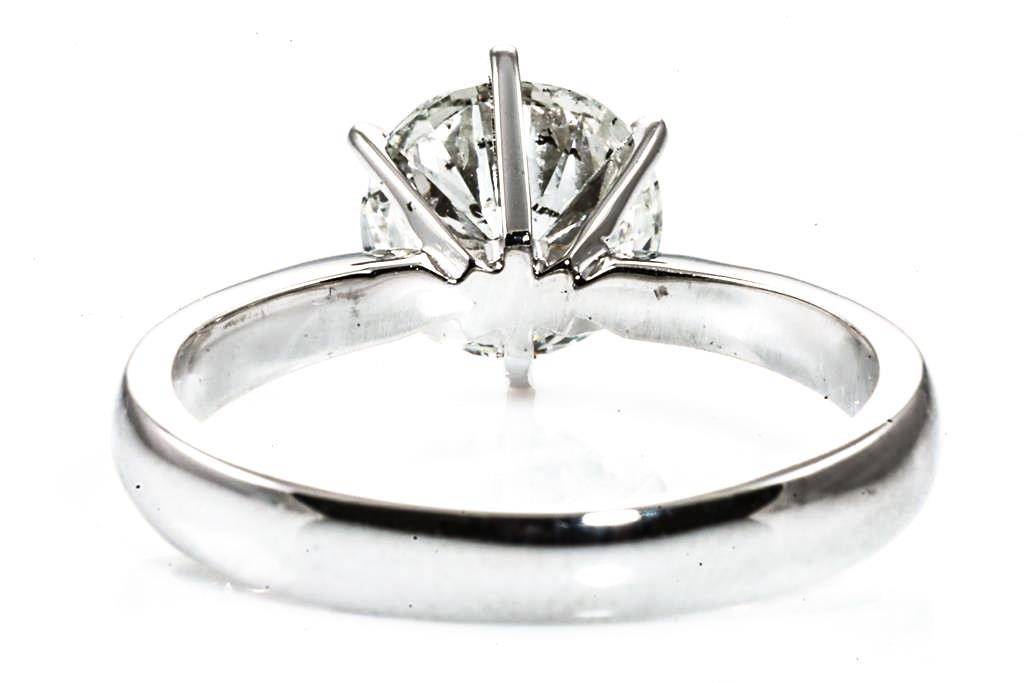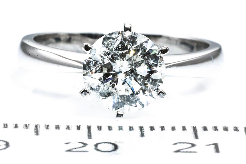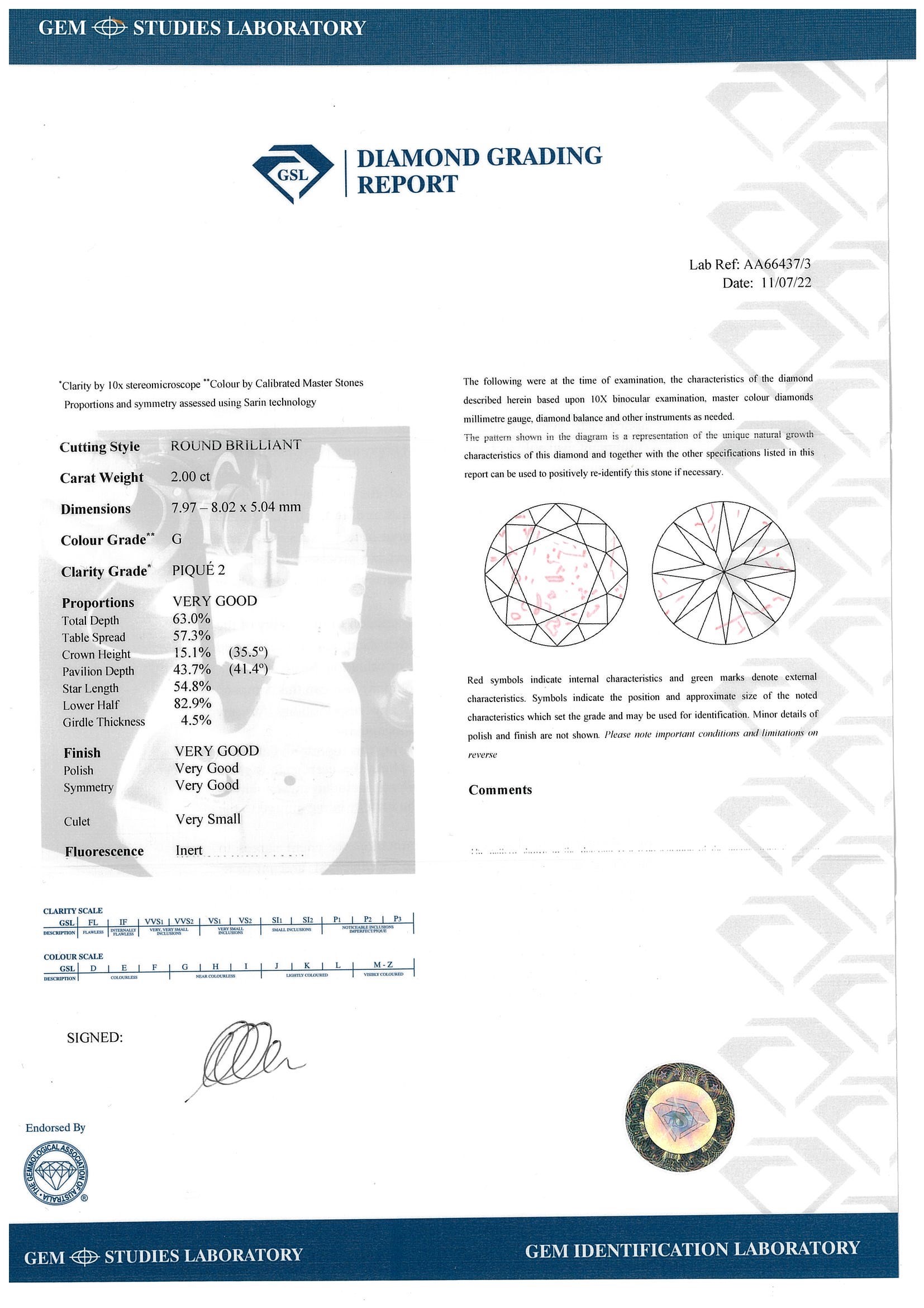 Diamond solitaire ring with round brilliant cut Diamond of 2.00cts (With GSL Report graded as G P2 #AA66437/3). 18ct white gold. Ring size: N. Weight: 4.9g (New)