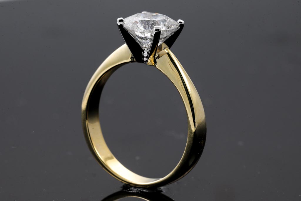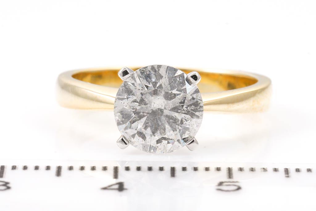 Diamond solitaire ring with round brilliant cut Diamond of 2.00cts (With GSL Report graded as H P3; AA66437/2). Ring size: M 3/4. 18ct yellow and white gold. Weight: 4.5g (New)