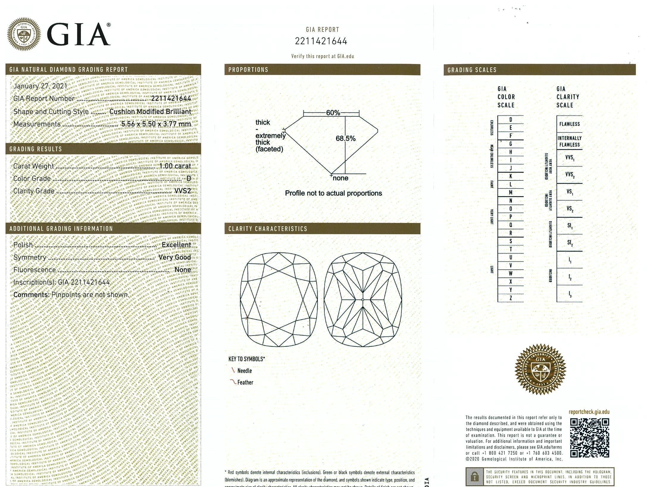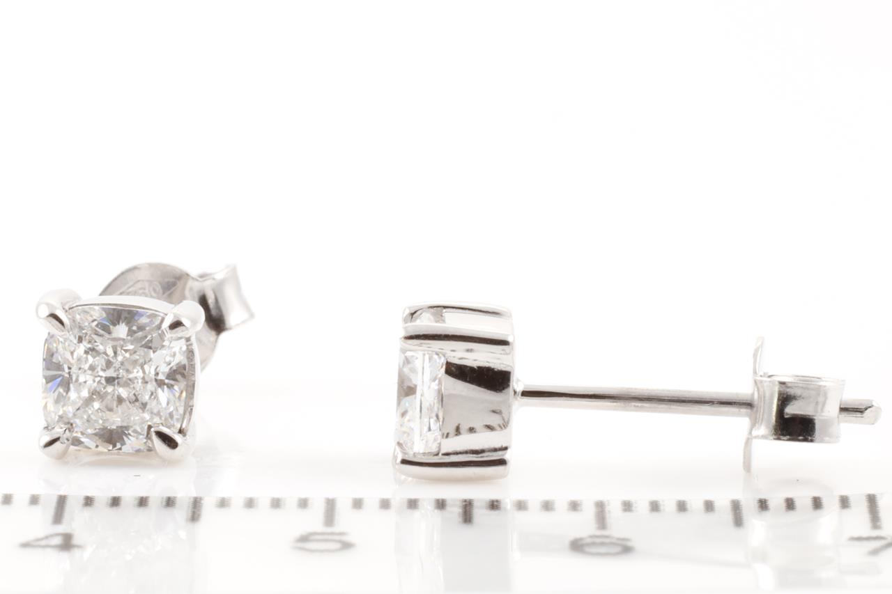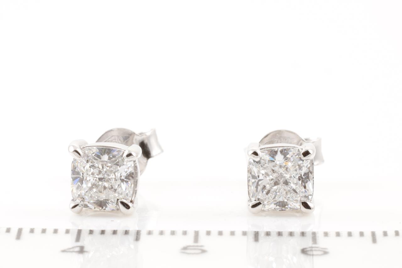Diamond stud earrings with 2 Cushion cut Diamonds totalling 2.00cts (both with GIA report both graded as D VVS2#6214421737, 2211421644). 18ct white gold. Weight: 3.2g (New)