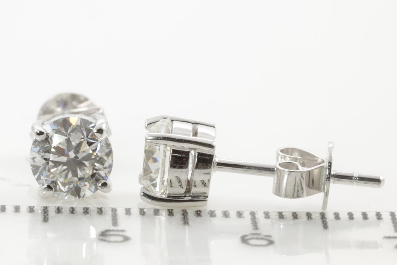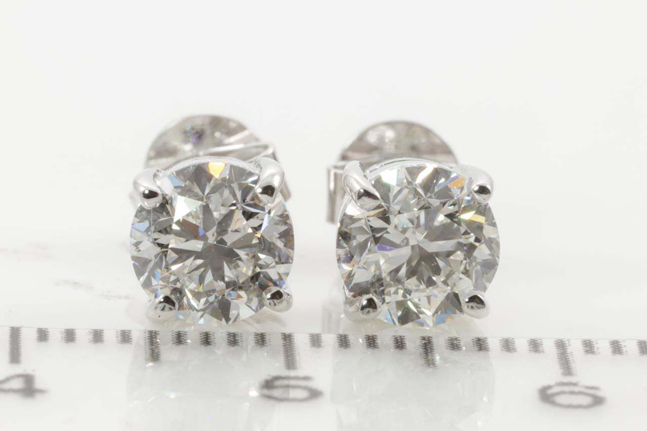 Diamond stud earrings with 2 round brilliant cut Diamonds totalling 2.00cts (with GIA reports graded as D VS2 & E VS2 #2215669319, 7396117174). 18ct white gold. Weight: 2.6g (New).