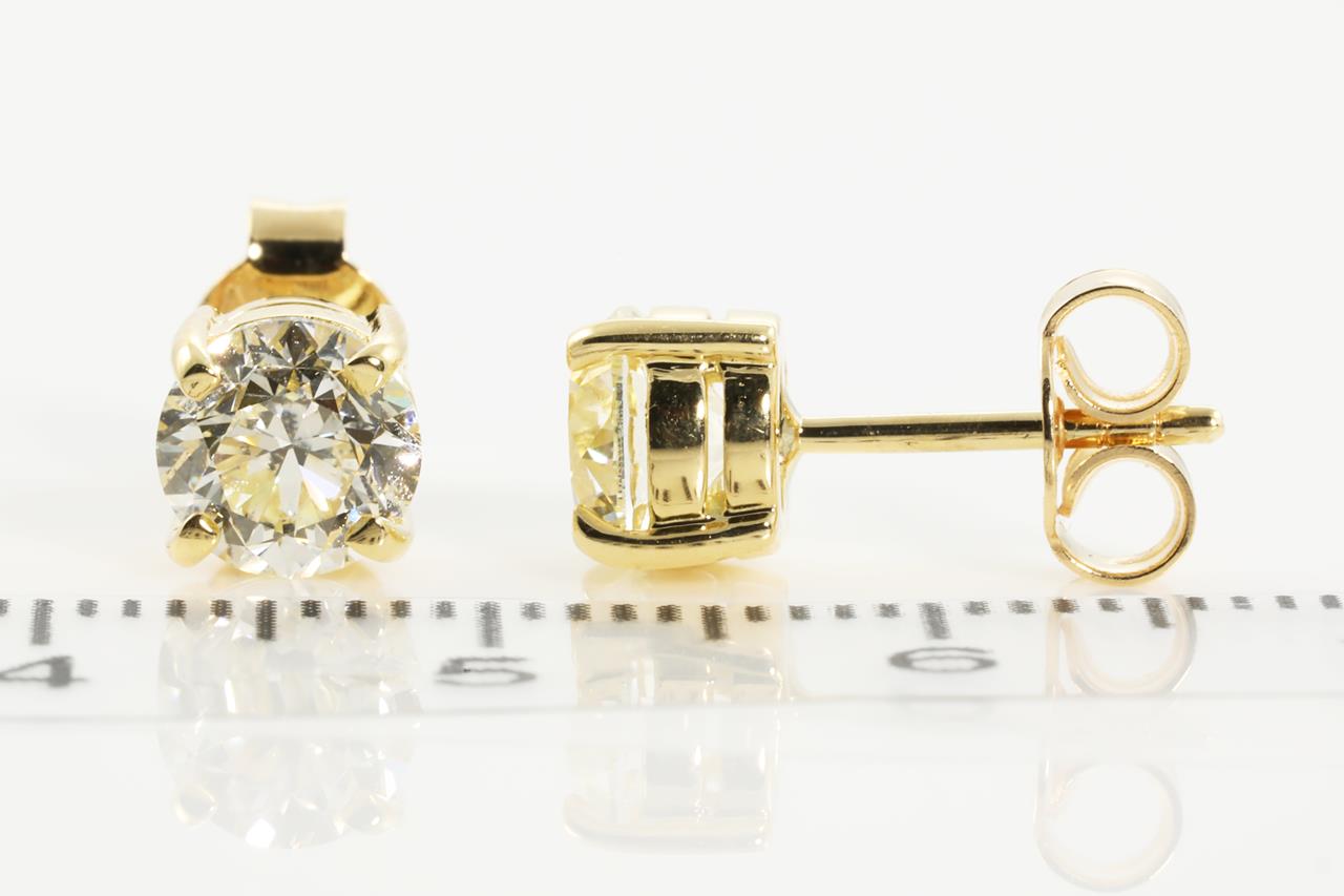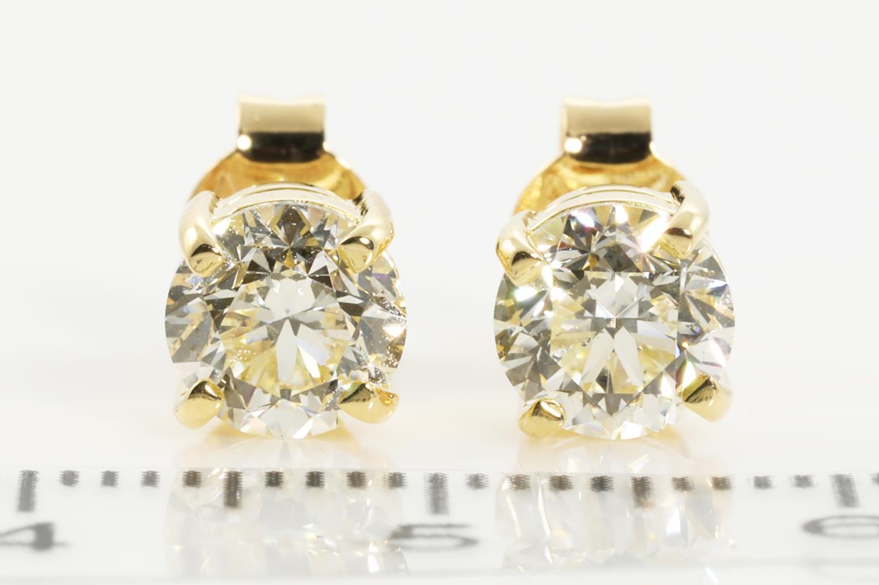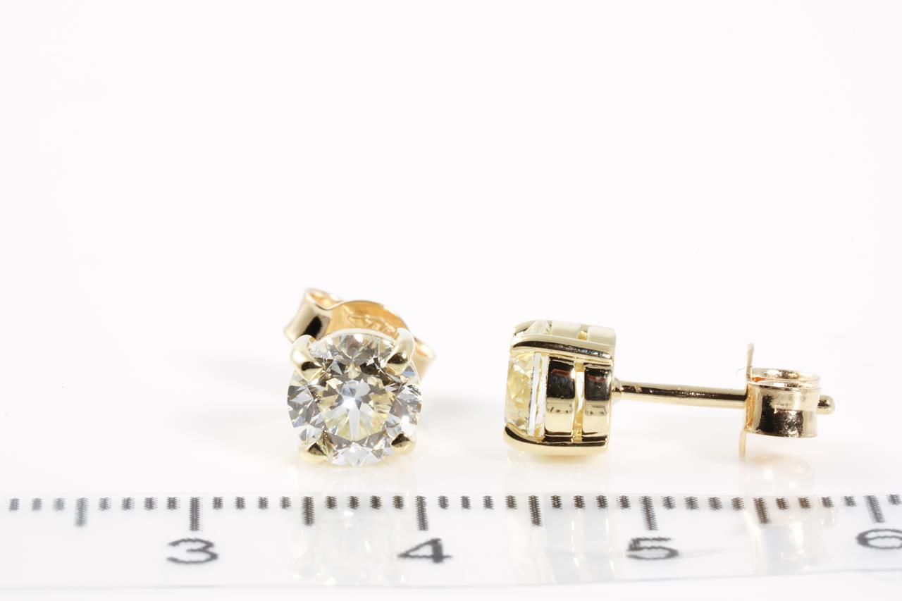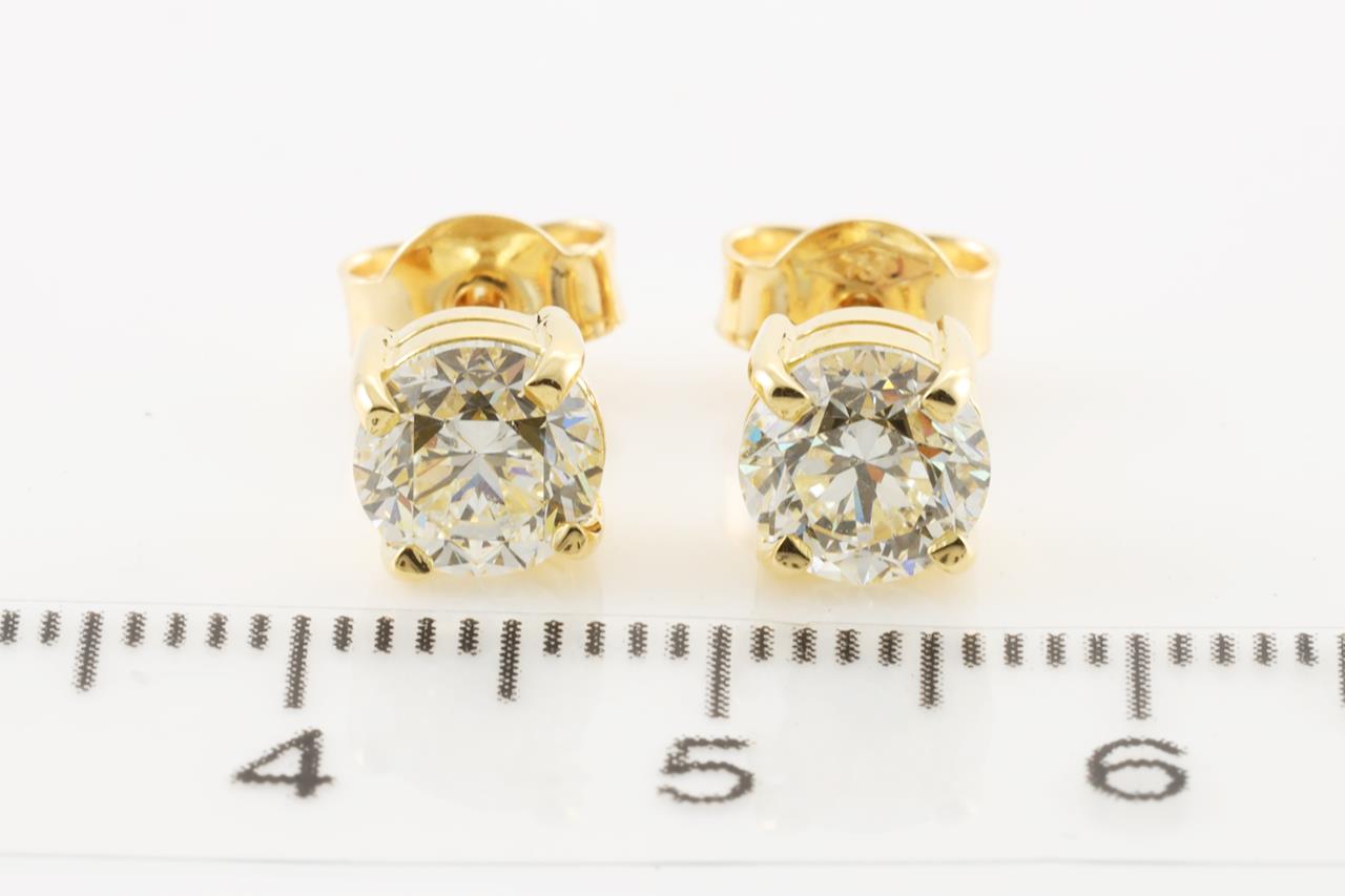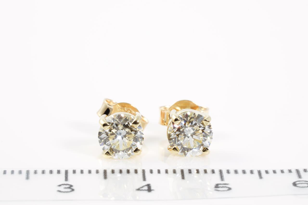 Diamond stud earrings with Round Brilliant Cut Diamonds totalling 2.00cts (with GIA report both graded as L SI1 #5212016867, 6204851416). 18ct yellow gold. Weight: 2.6g (New)