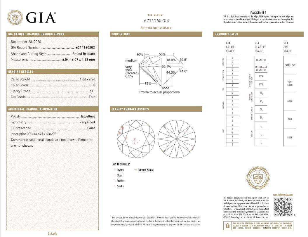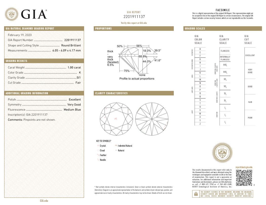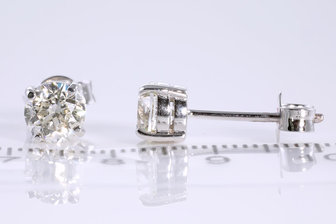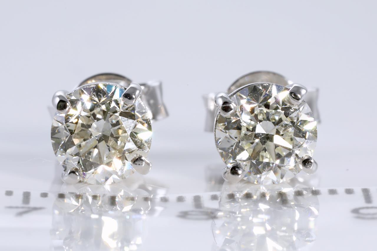 Diamonds stud earrings with Round Brilliant Cut Diamonds totalling 2.00cts (with GIA report both graded as K SI1 #6214160203, 2201911137). 18ct white gold. Weight: 2.6g (New)