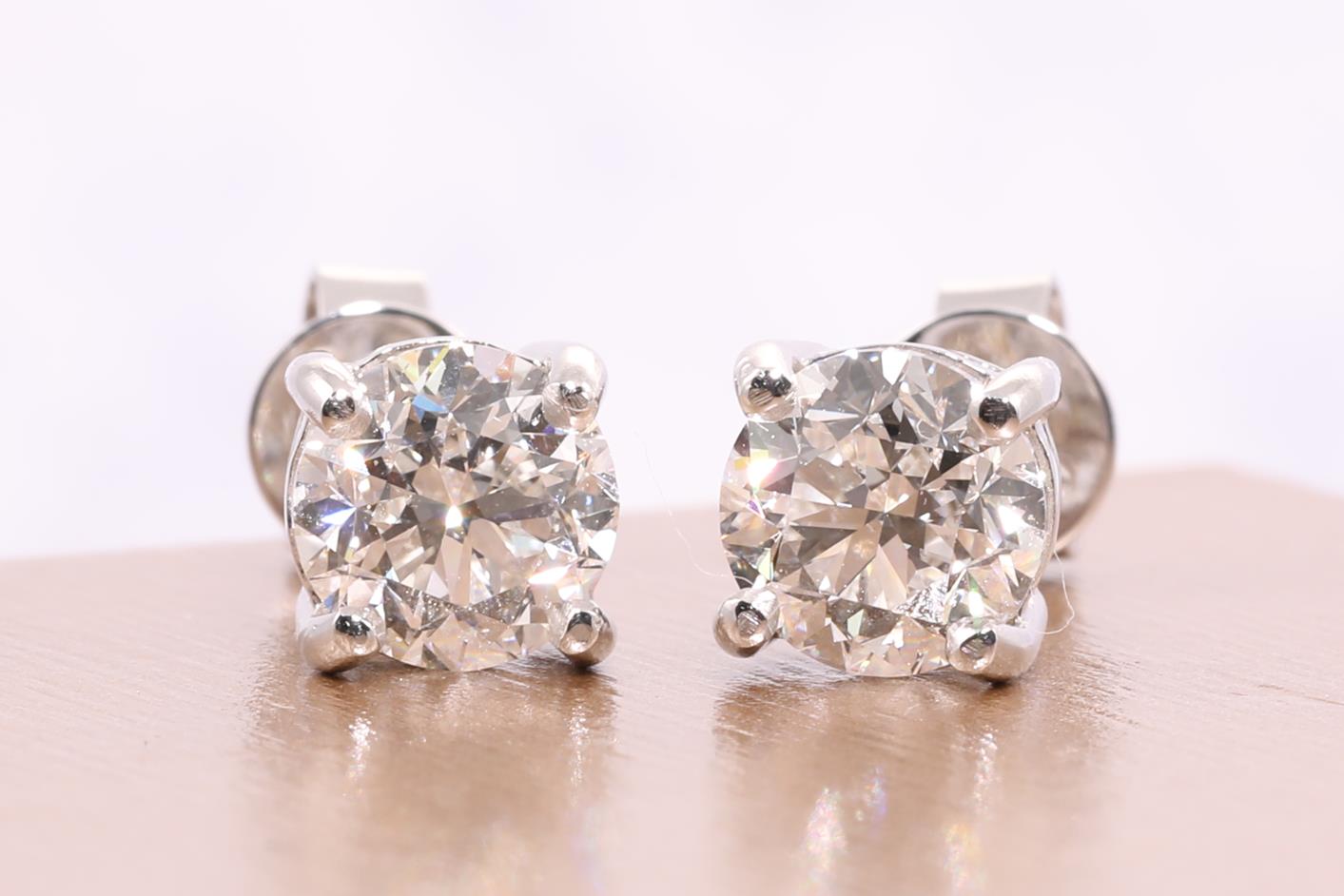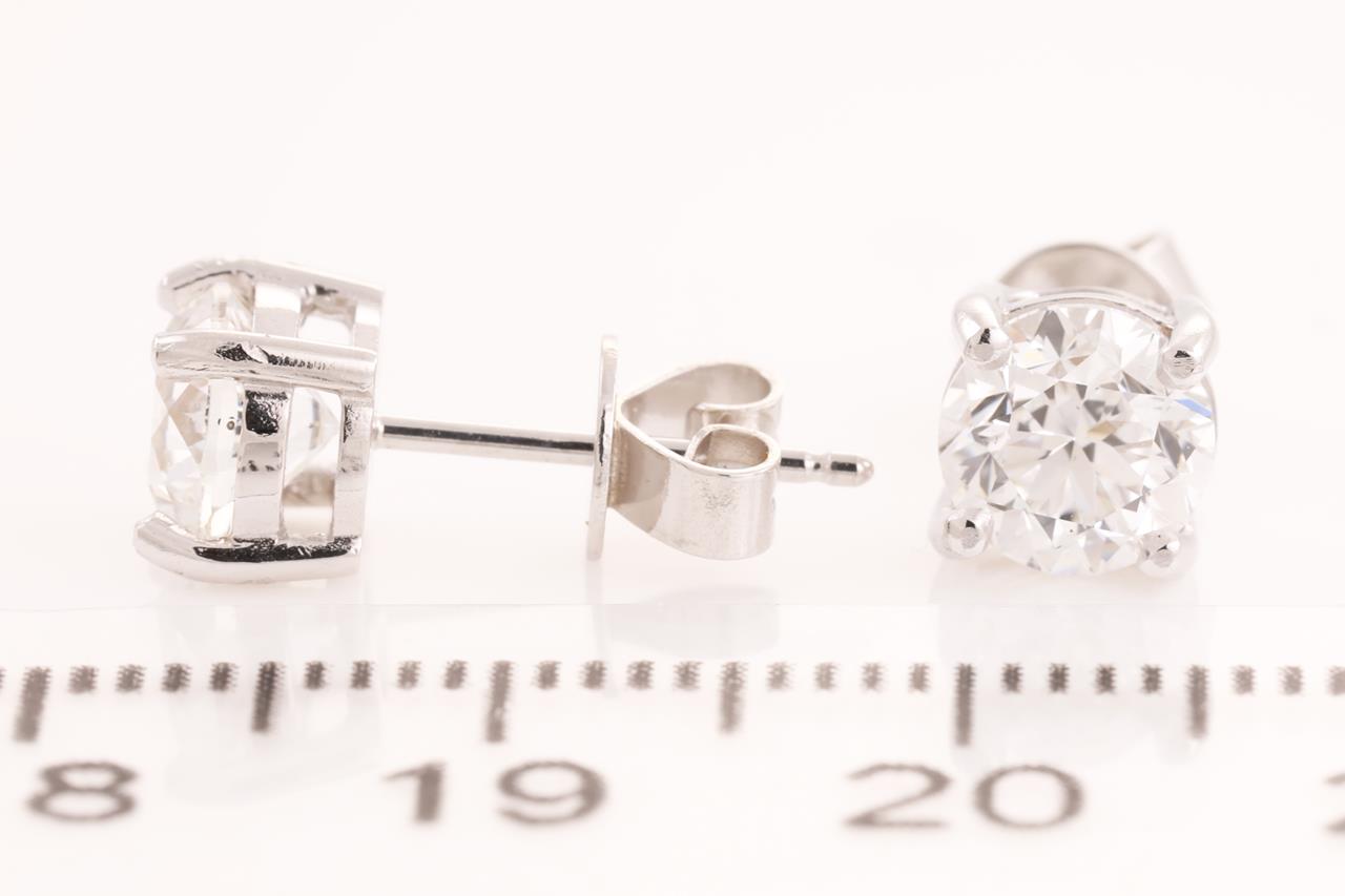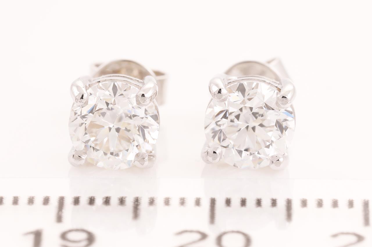 Diamond stud earrings with 2 round brilliant cut Diamonds totalling 2.00cts (with GIA reports graded as D VS1 & E VS2 #2225066882, 1419123274). 18ct white gold. Weight: 2.3g. (New)