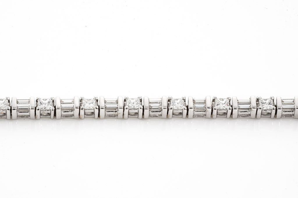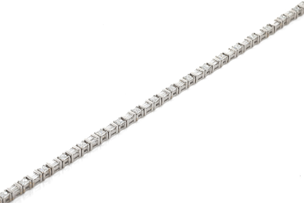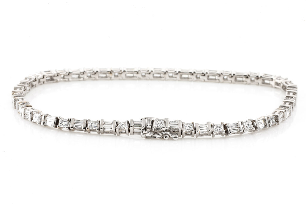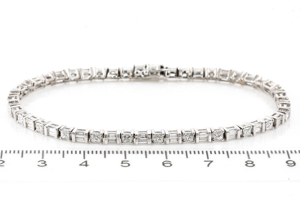 Diamond tennis bracelet with baguette & princess cut Diamonds totalling approximately 2.00cts (Estimated grading: G-H VS-SI) 18ct white gold. Length: 19cm. Weight: 13.0g. (Pre-owned)