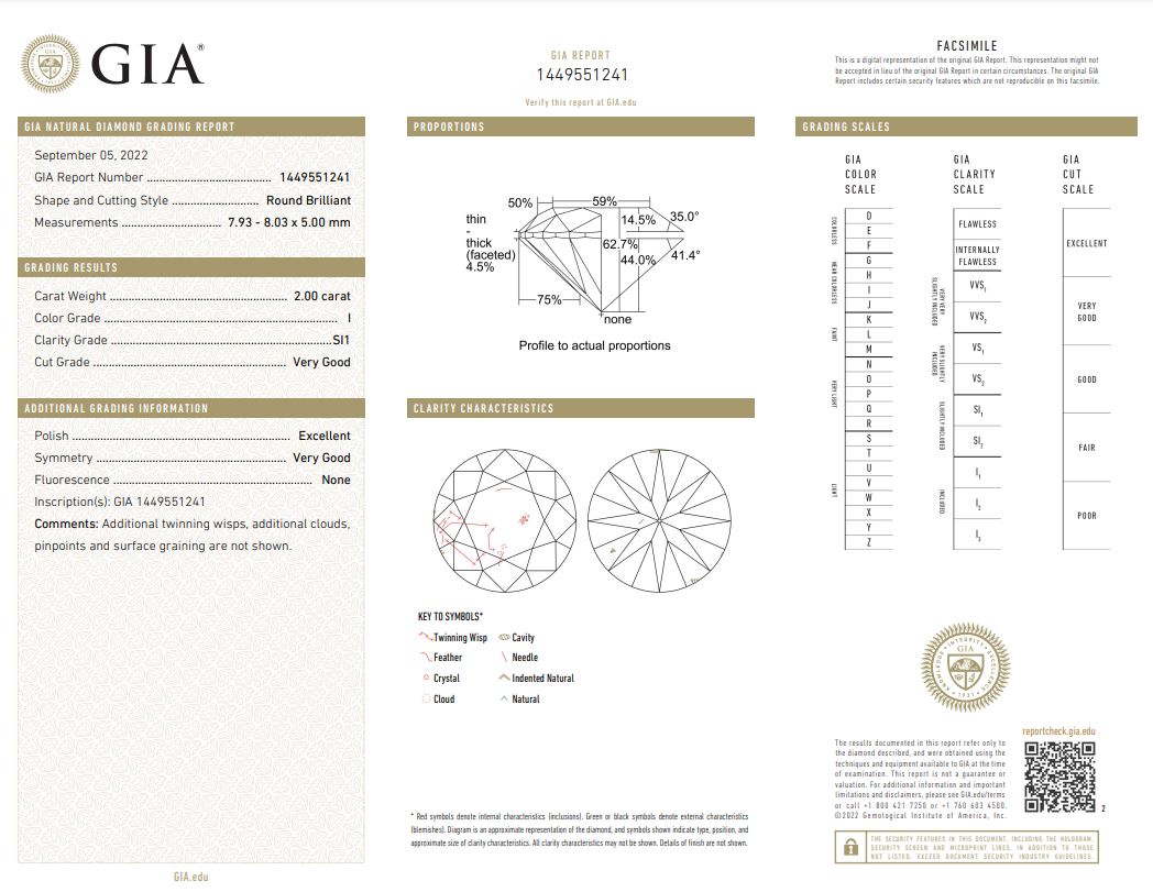 A loose round brilliant cut Diamond of 2.00ct (with GIA report graded as I SI1 #1449551241