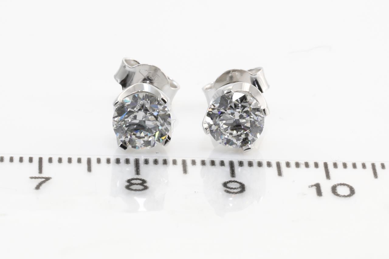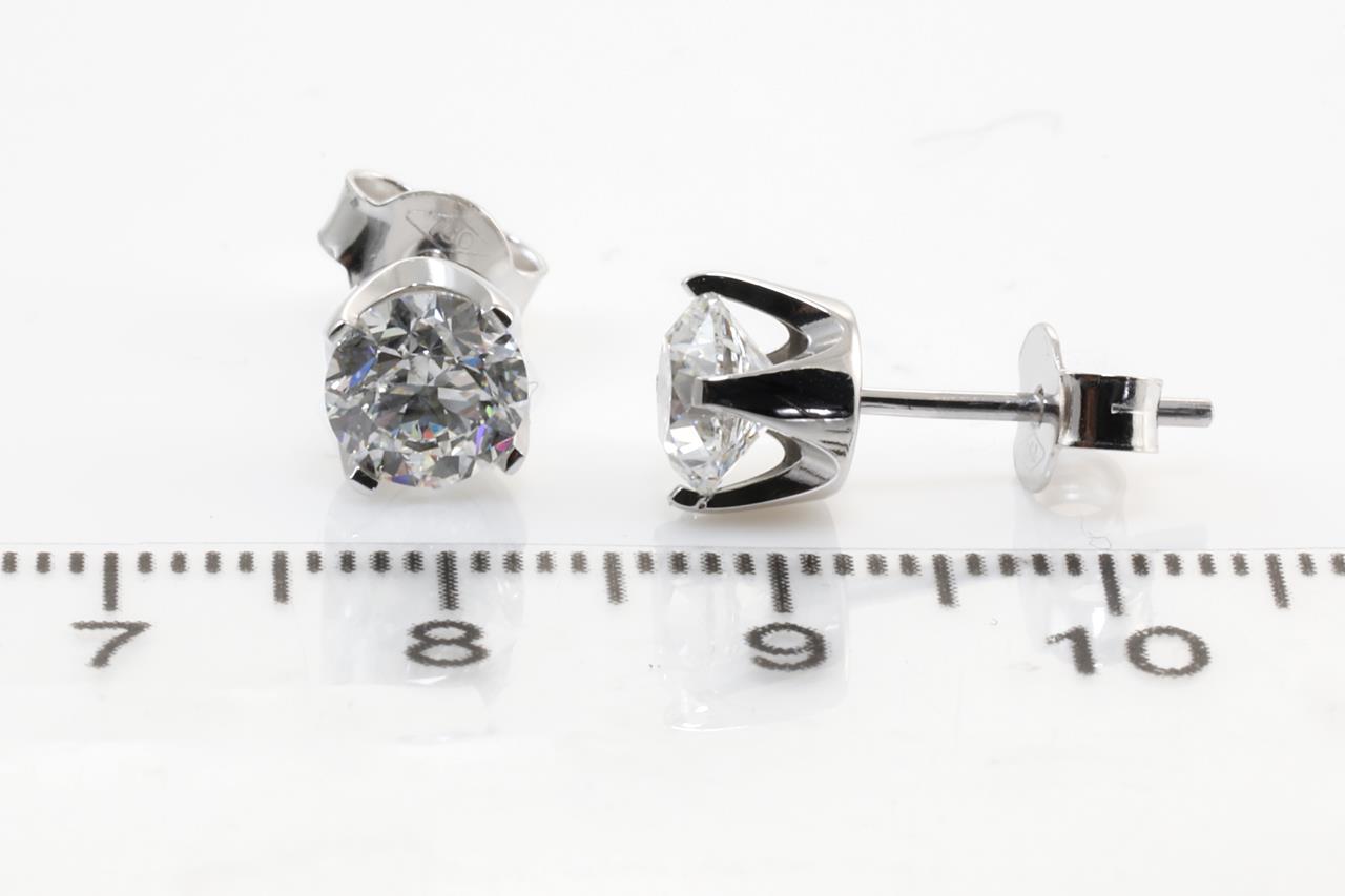 Diamond stud earrings with 2 round brilliant cut Diamonds totalling 2.00cts (both with GIA reports graded as D VS2 & E VS2 #1216393924, 6213395160). 18ct white gold. Weight: 2.6g. (New)