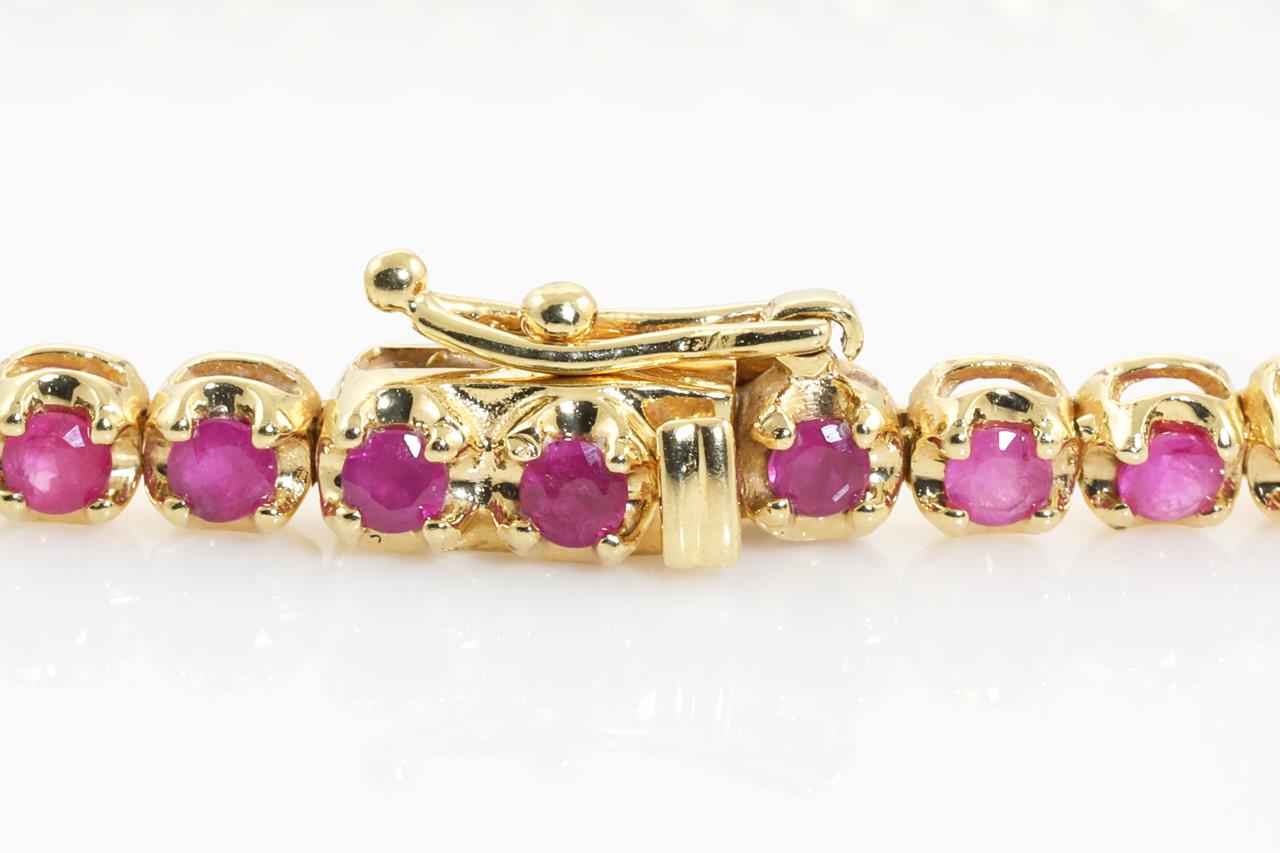 Ruby bracelet with round Rubies totalling 2.00cts. 18cct yellow gold. Length: 17.5cm. Weight: 7.5g (Pre-owned).