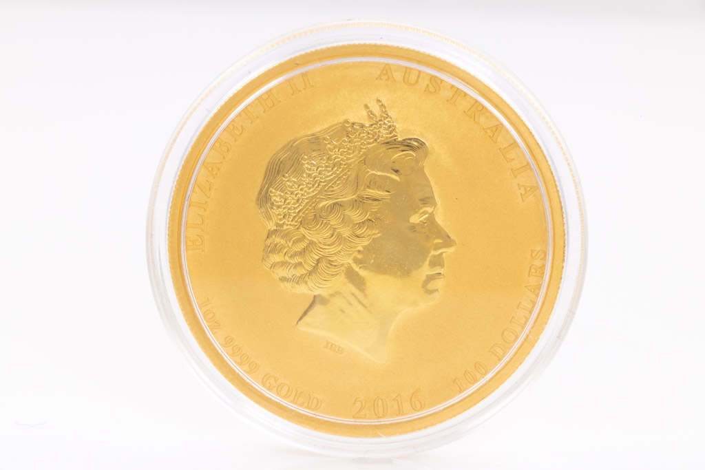 2016 Australian 100 dollars .999 fine gold coin. Perth Mint. Weight 31.1g. ***Gold Bullion attracts no GST and no Buyers Premium. Available for shipping within Australia only***