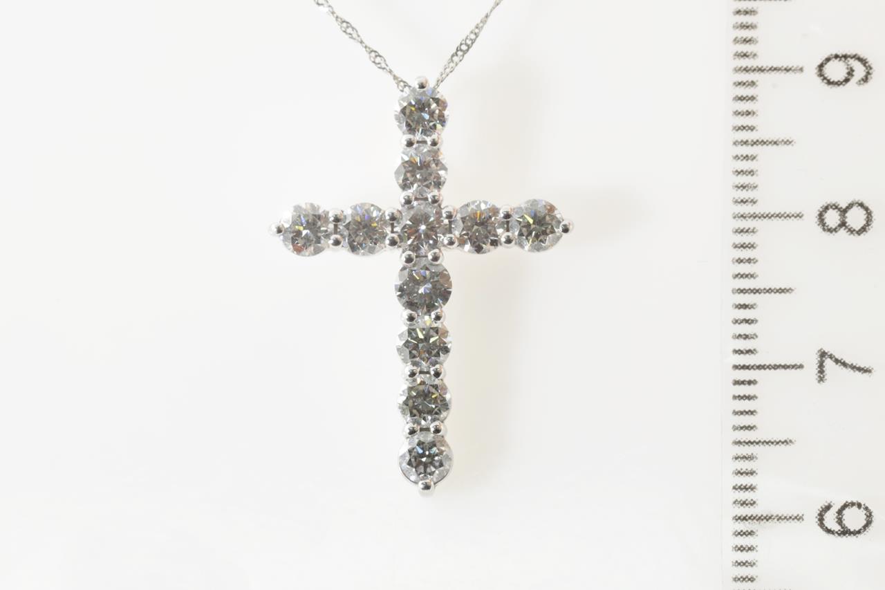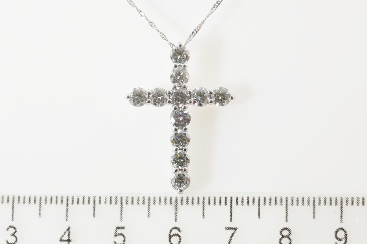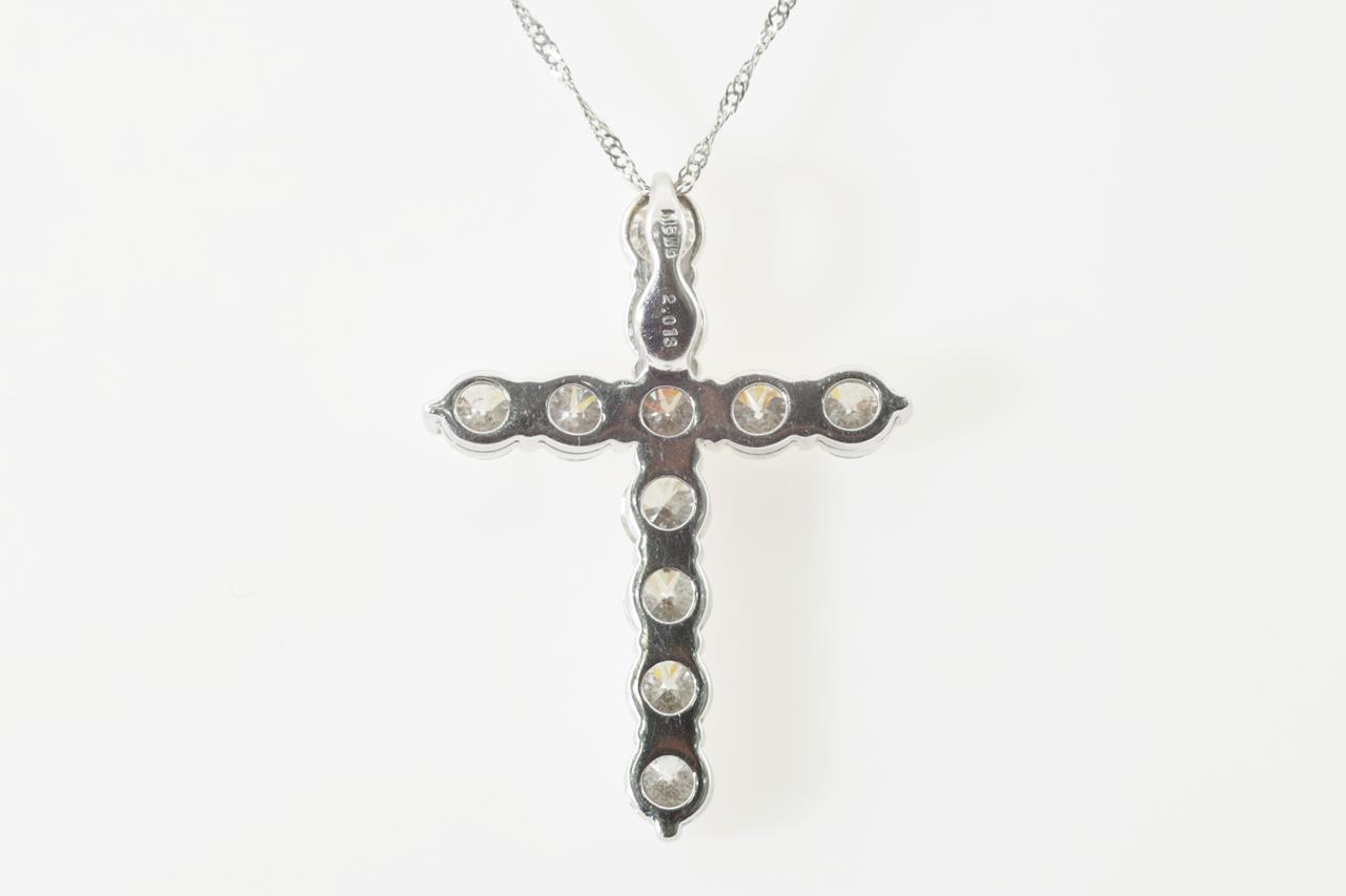Diamond Cross pendant with round Diamonds totalling 2.01cts (Estimated grading: H SI2). 18ct white gold with adjustable platinum 42cm chain. Weight: 3.9g (Pre-owned)