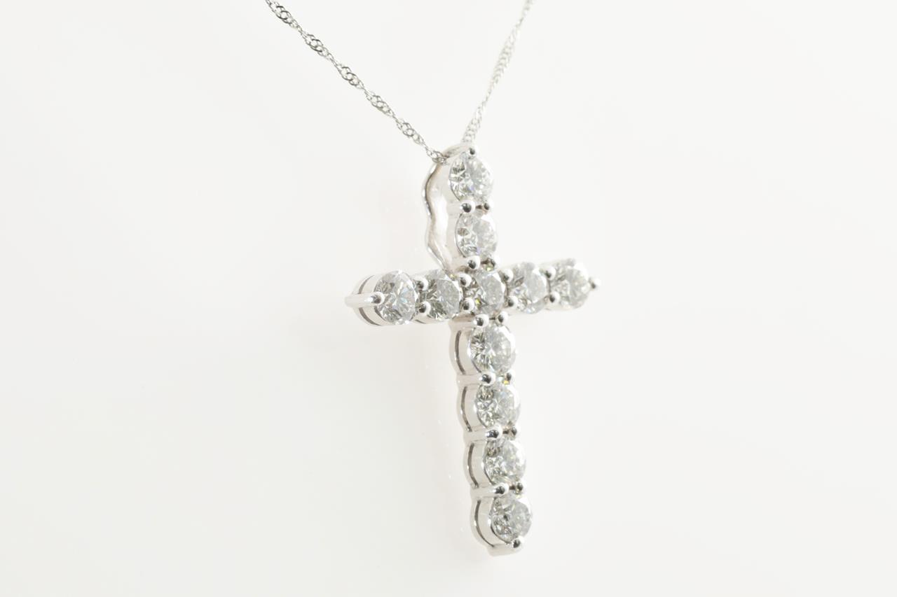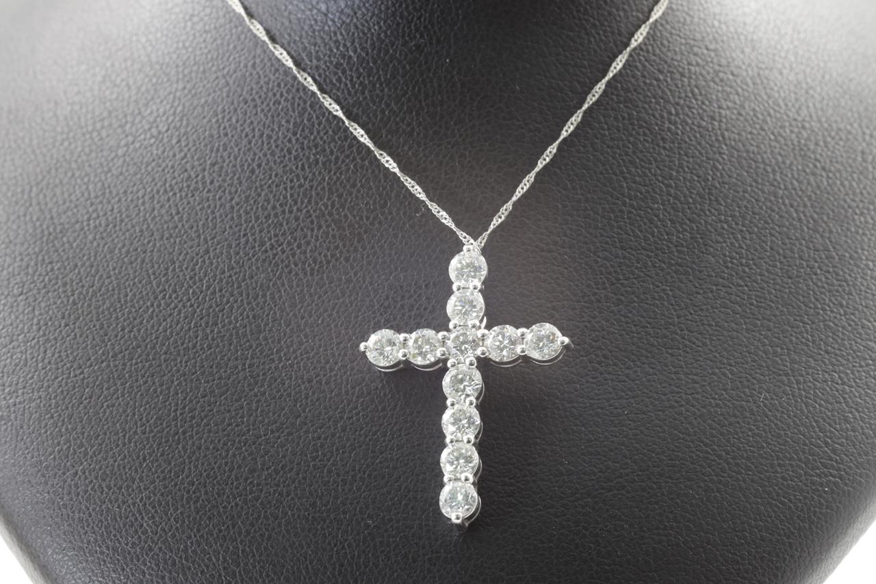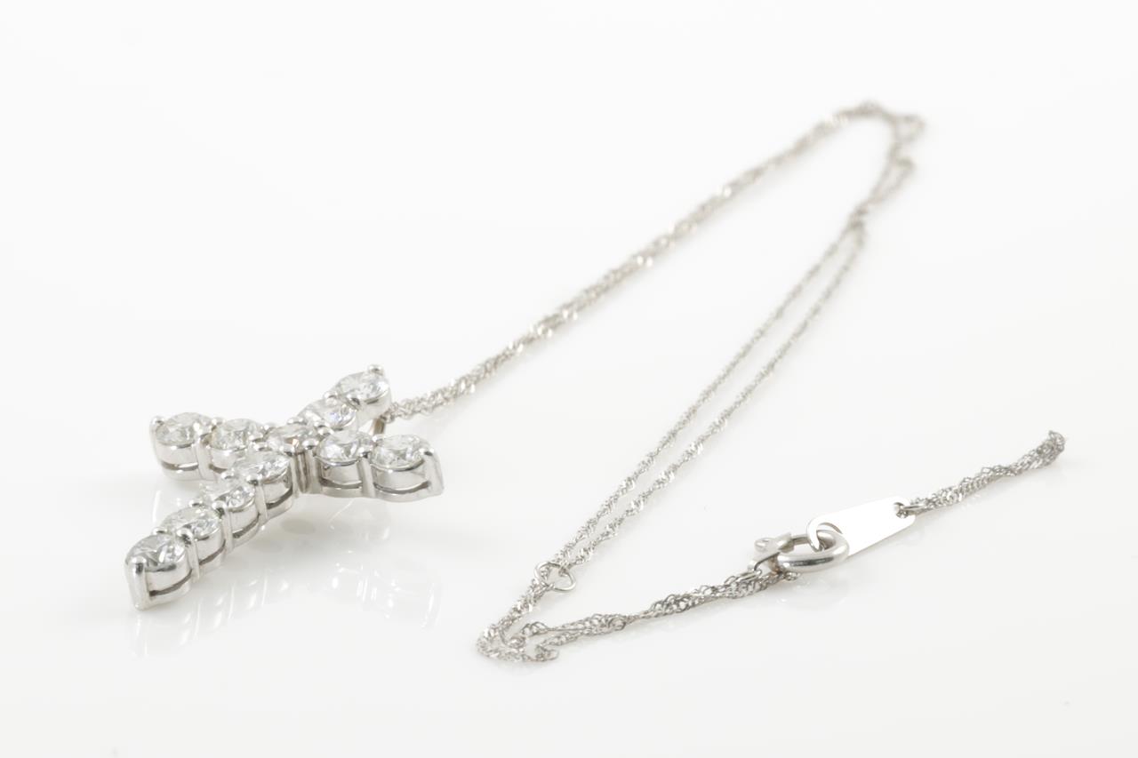 Diamond Cross pendant with round Diamonds totalling 2.01cts (Estimated grading: H SI2). 18ct white gold with adjustable platinum 42cm chain. Weight: 3.9g (Pre-owned)