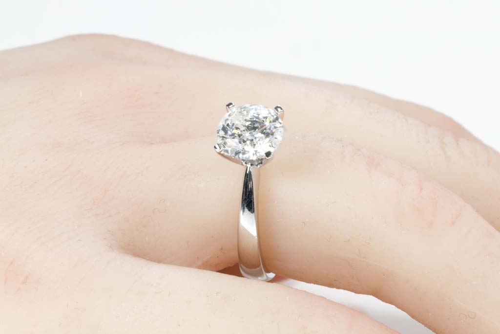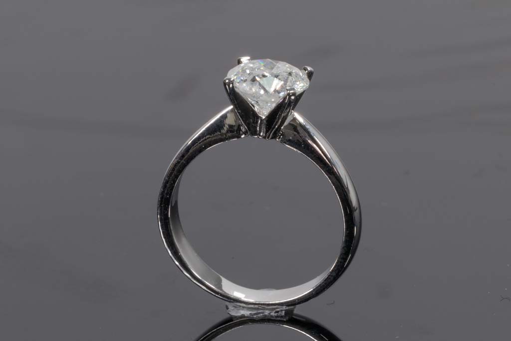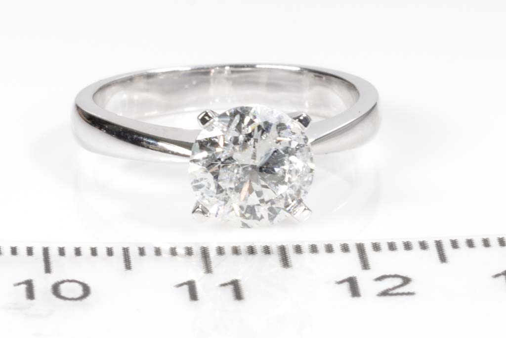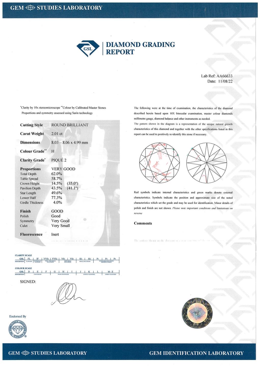 Diamond Solitaire ring with round brilliant cut Diamond totalling 2.01cts (With GSL Report graded as H P2, #AA66633). 18ct white gold. Ring size: M1/2. Weight: 4.8g (New)