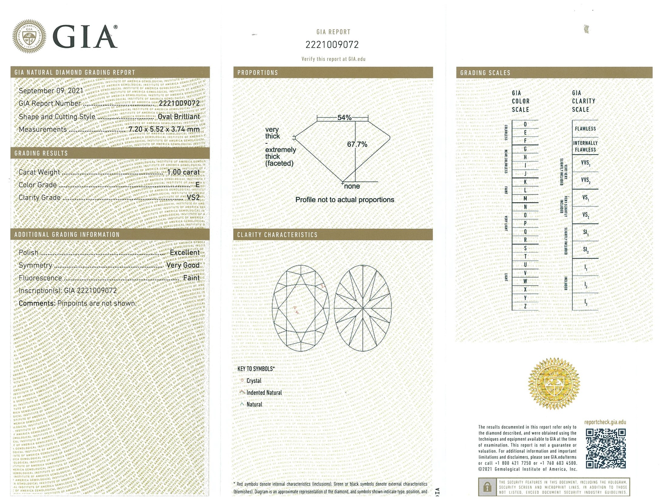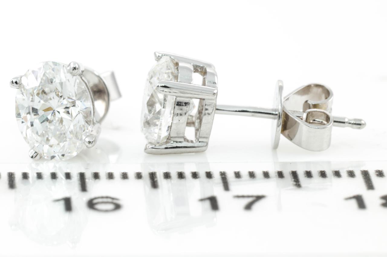 Diamond stud earrings with 2 oval brilliant cut Diamonds totalling 2.01cts (Both with GIA reports graded as D & E VS2 #2215641543, 2221009072). 18ct white gold. Weight: 2.1g. (New)