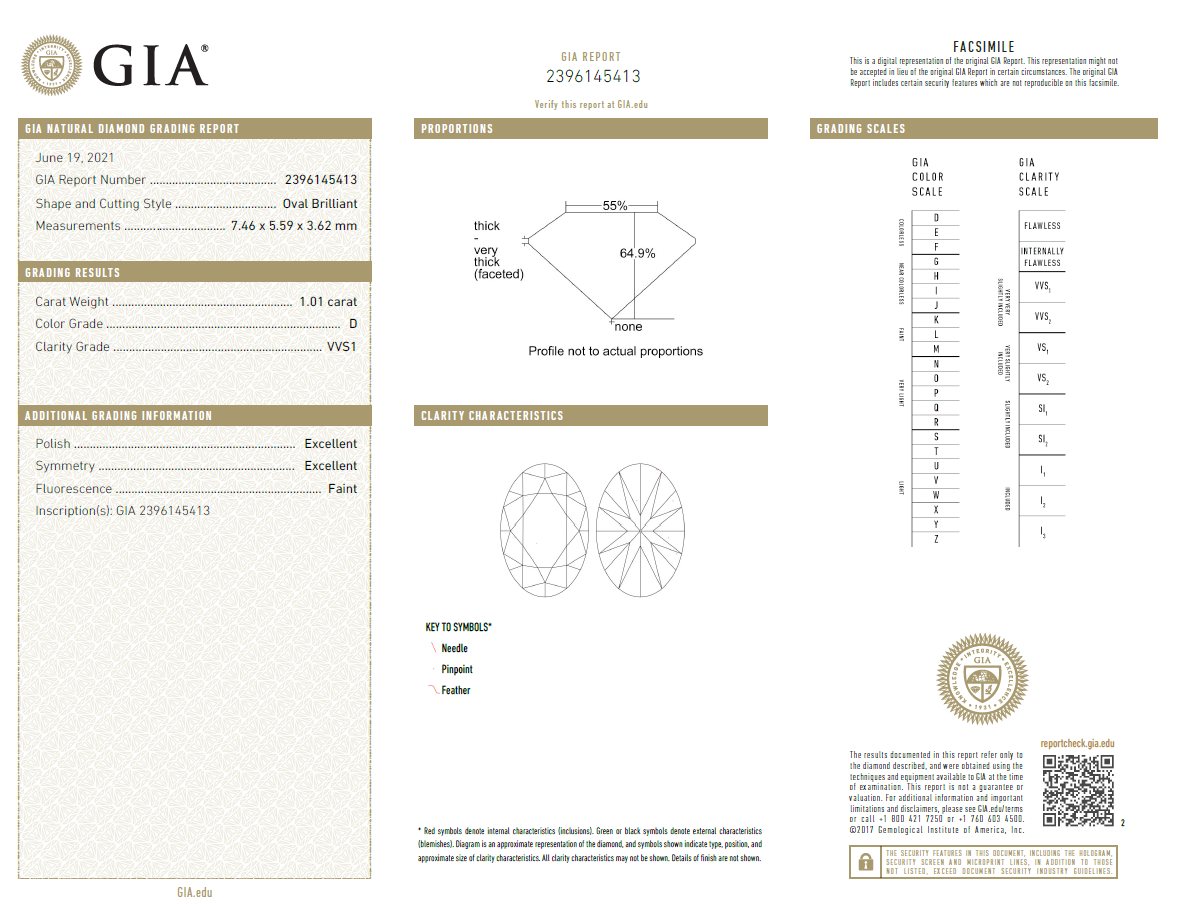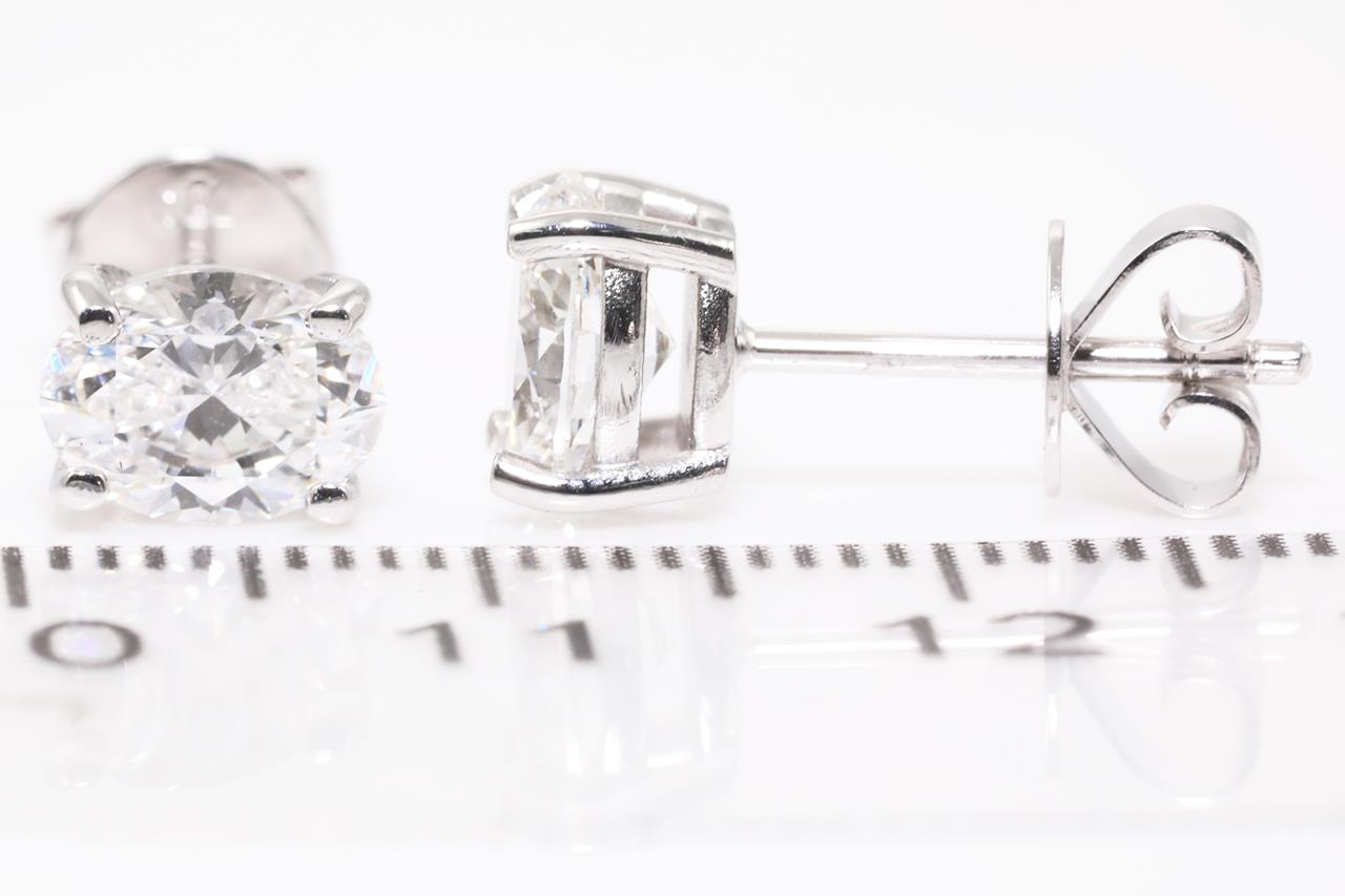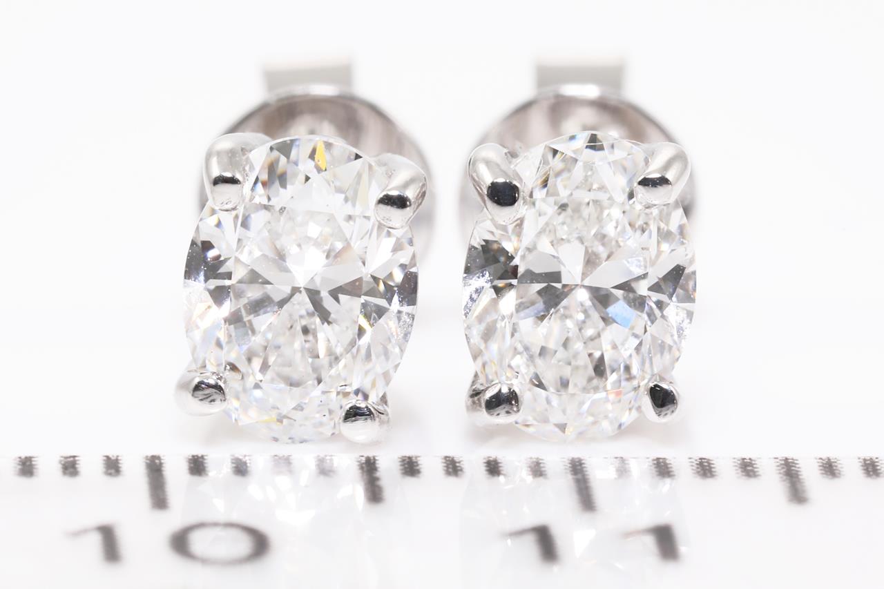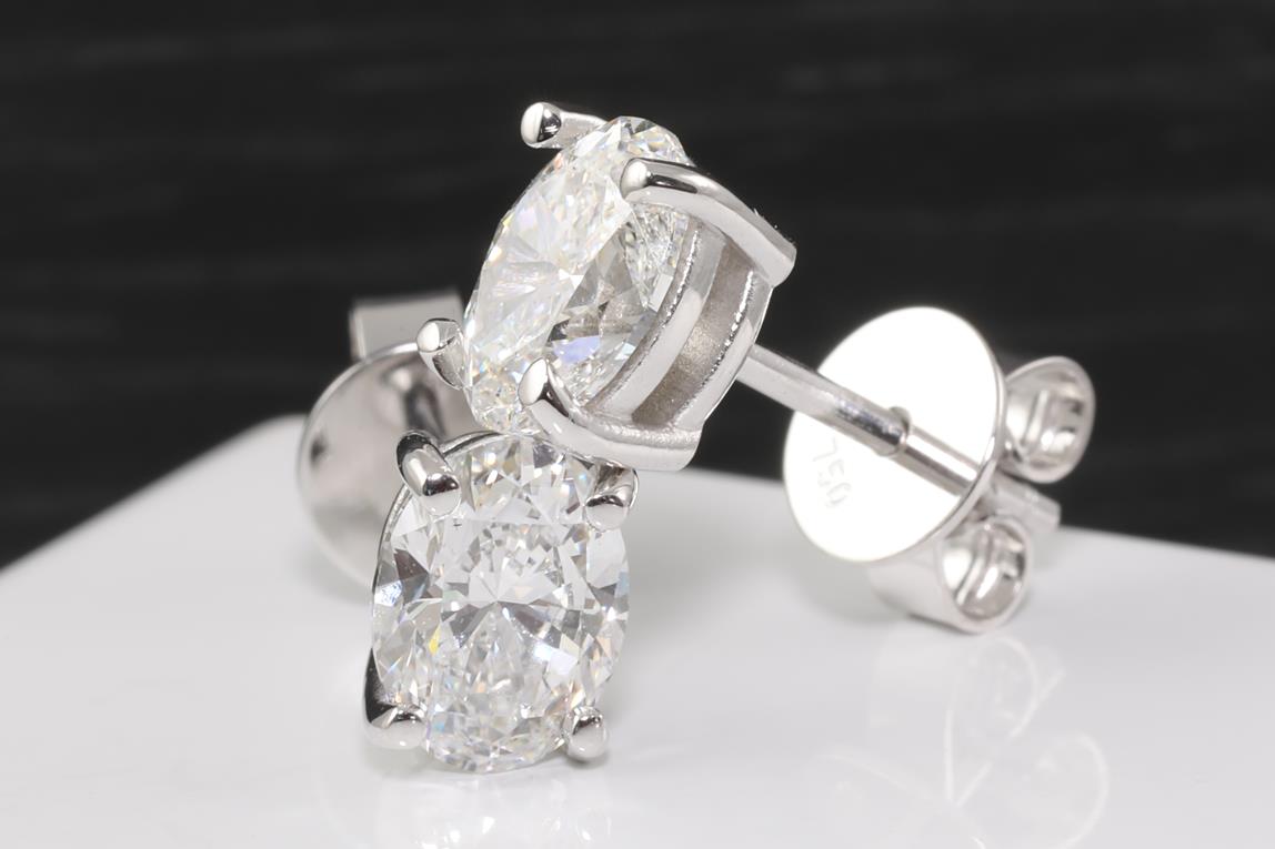Diamond stud earrings with 2 oval cut Diamonds totalling 2.01cts (both with GIA report both graded as D-E VVS1#2396145413, 2215558318). 18ct white gold. Weight: 3.1g (New)