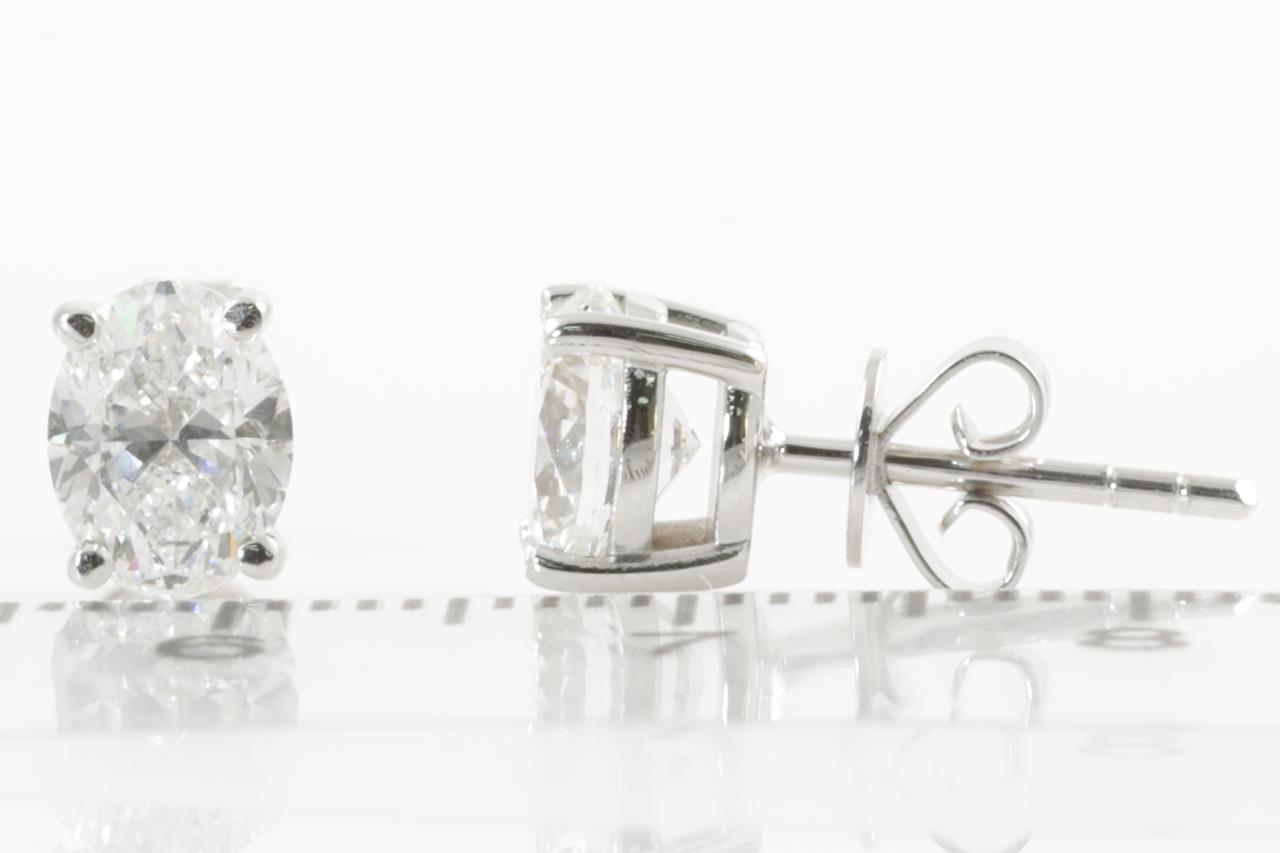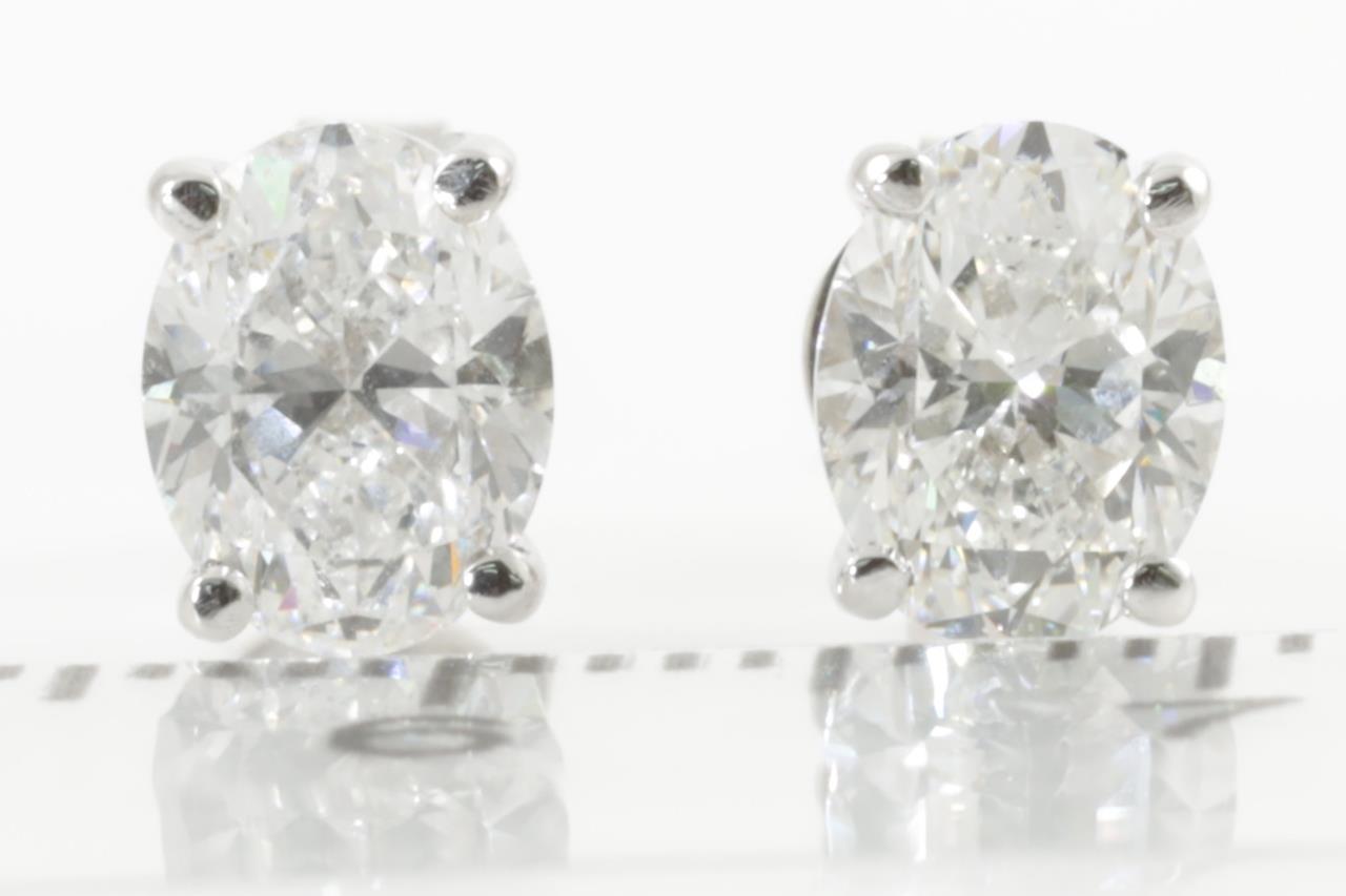 Diamond Stud Earring with 2 oval Diamonds totalling 2.01cts (with GIA reports graded as D VS2 & E VS2 #2215942629, 5211911257). 18ct white gold. Weight 2.6g. (New)