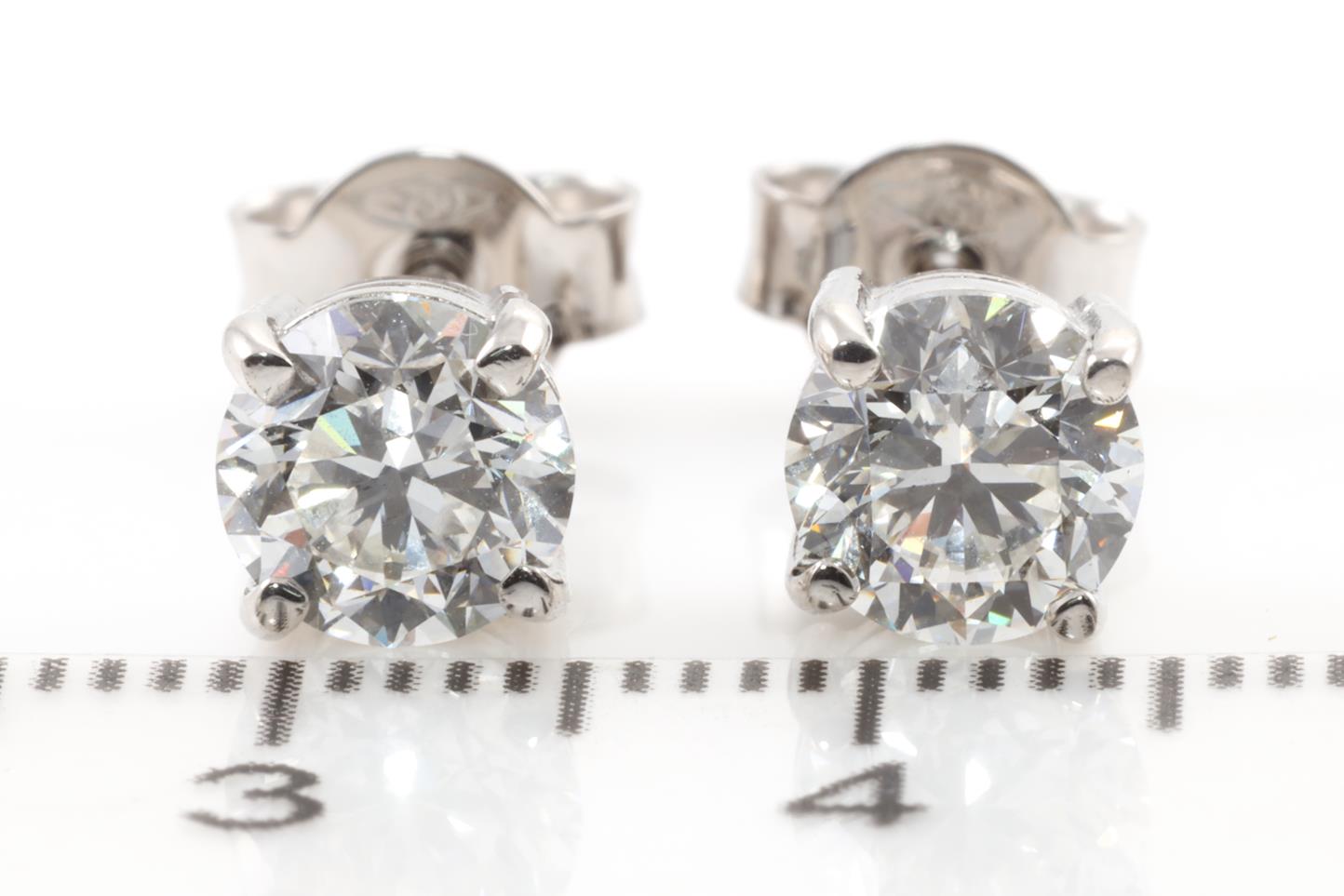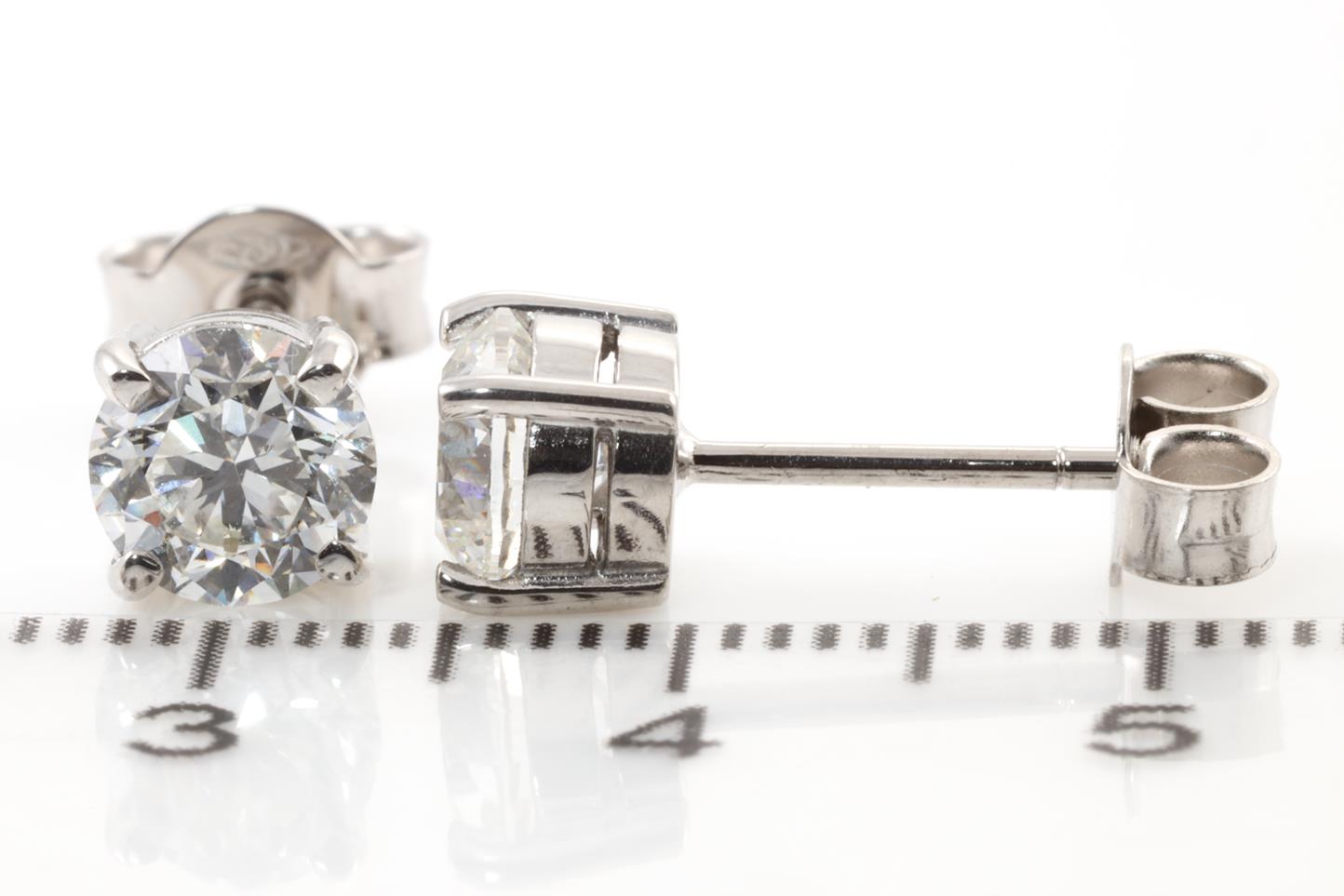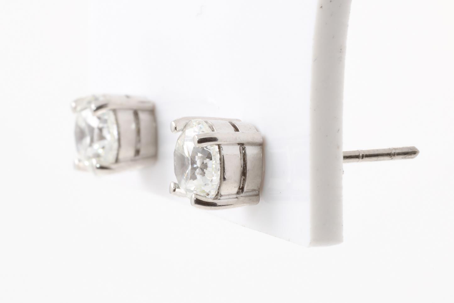 Diamond stud earrings with Round Brilliant Cut Diamonds totalling 2.01cts (with GIA report both graded as F VS1 & FVS2 #5212303806, 6217289985). 18ct white gold. Weight: 2.8g (New)
