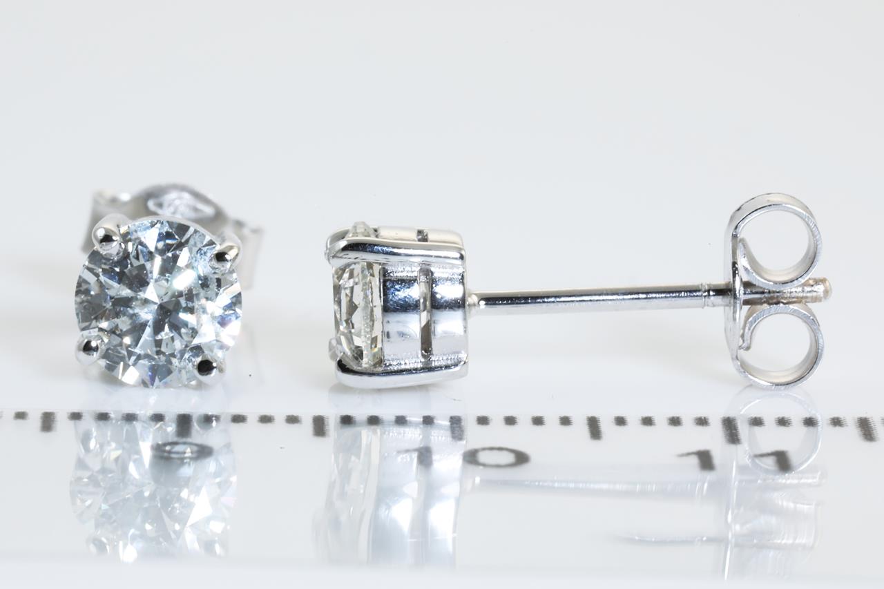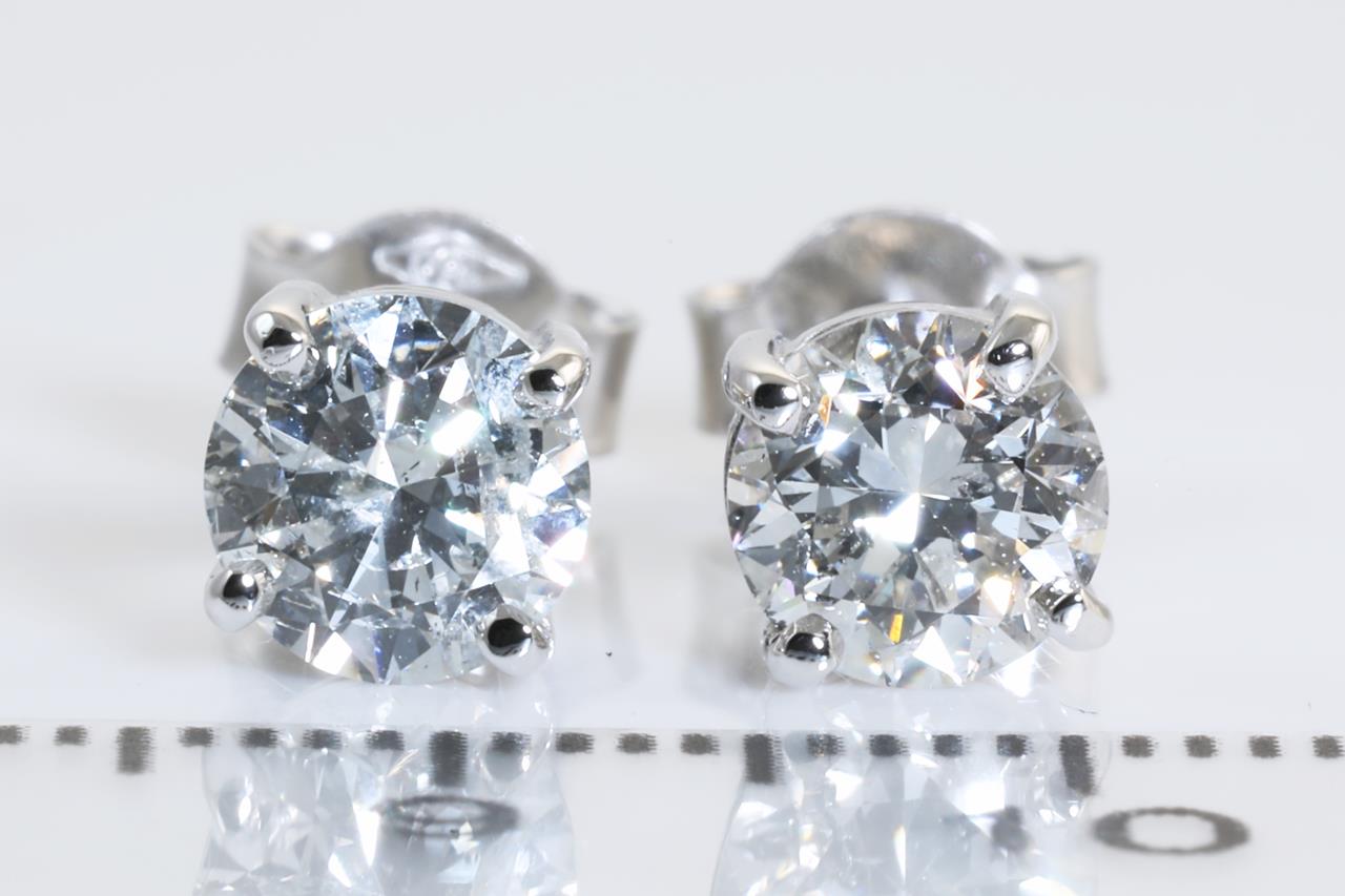 Diamond stud earrings with 2 round brilliant cut Diamonds totalling 2.01cts (Estimated grading GH P2). 18ct white gold. Weight: 2.7g. With Certificate #4391. (New).
