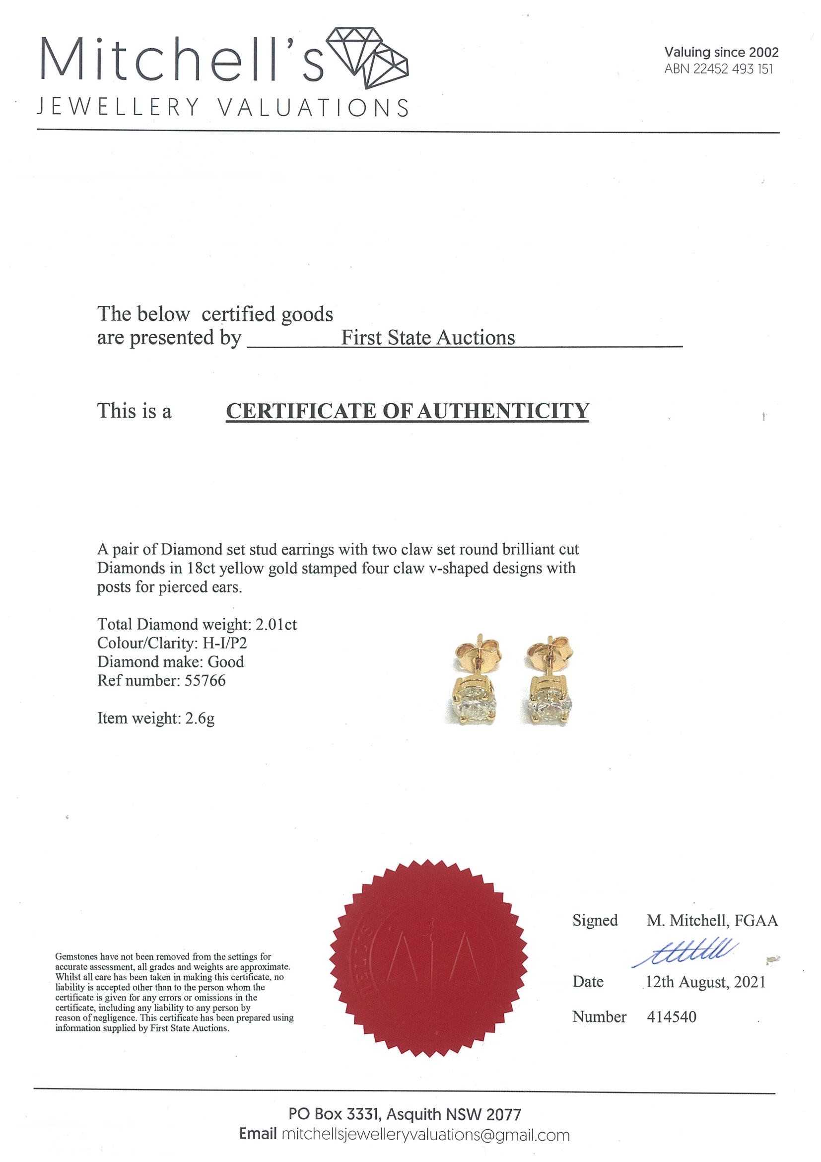2.01ct Diamond Stud Earrings | First State Auctions