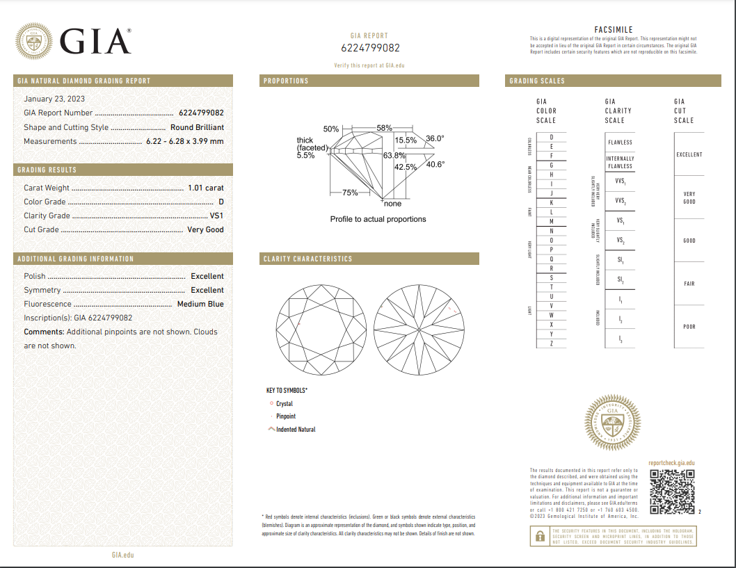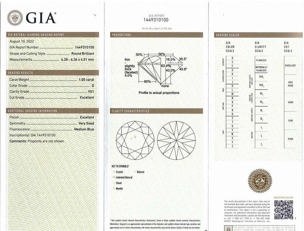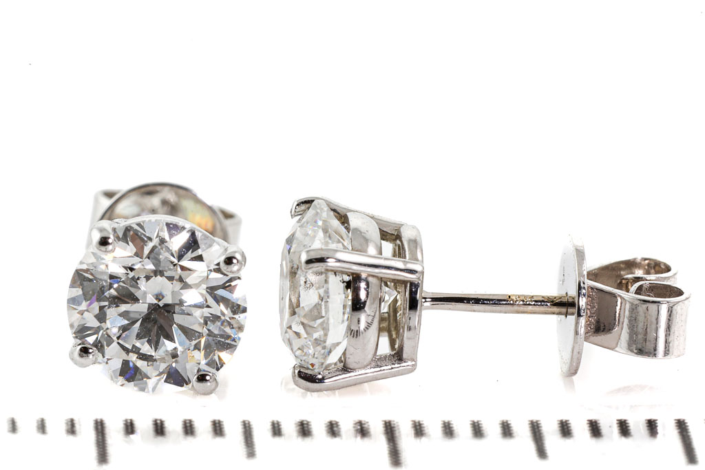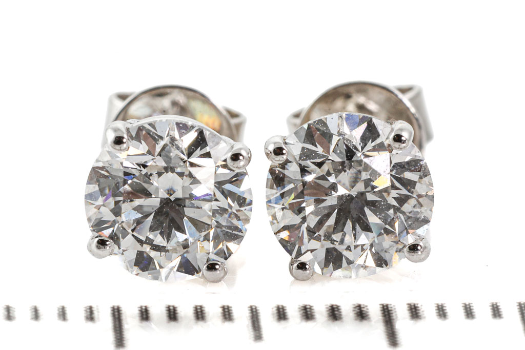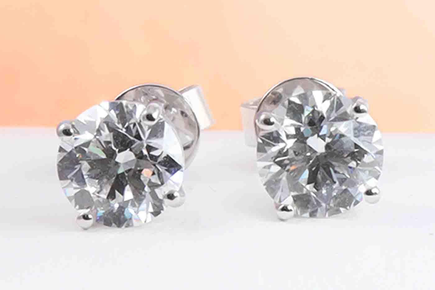 Diamond stud earrings with 2 round brilliant cut Diamonds totalling 2.01cts (Both with GIA reports graded as D VS1 #1449310100, 6224799082-copy only). 18ct white gold. Weight: 1.7g. (New)