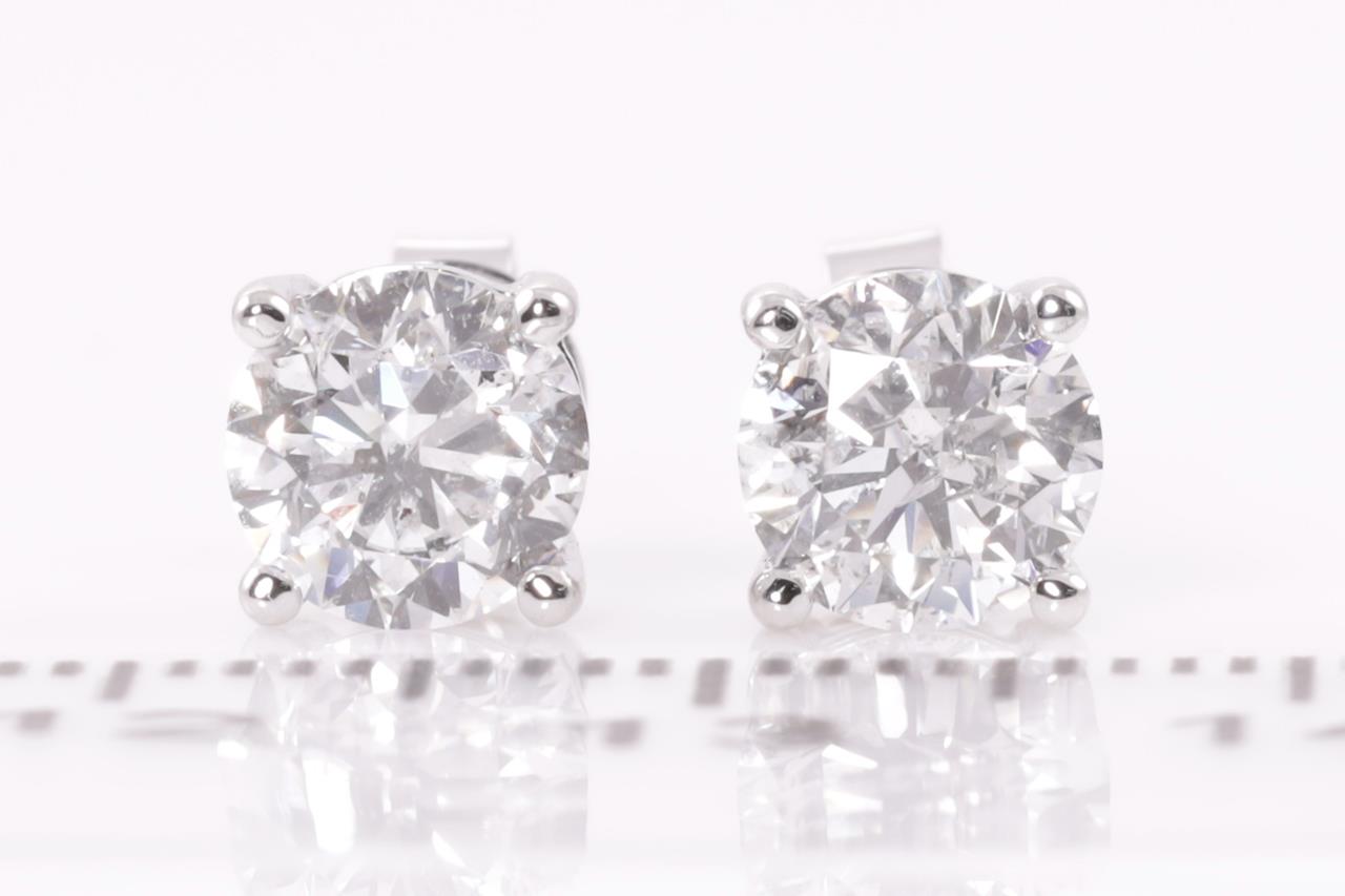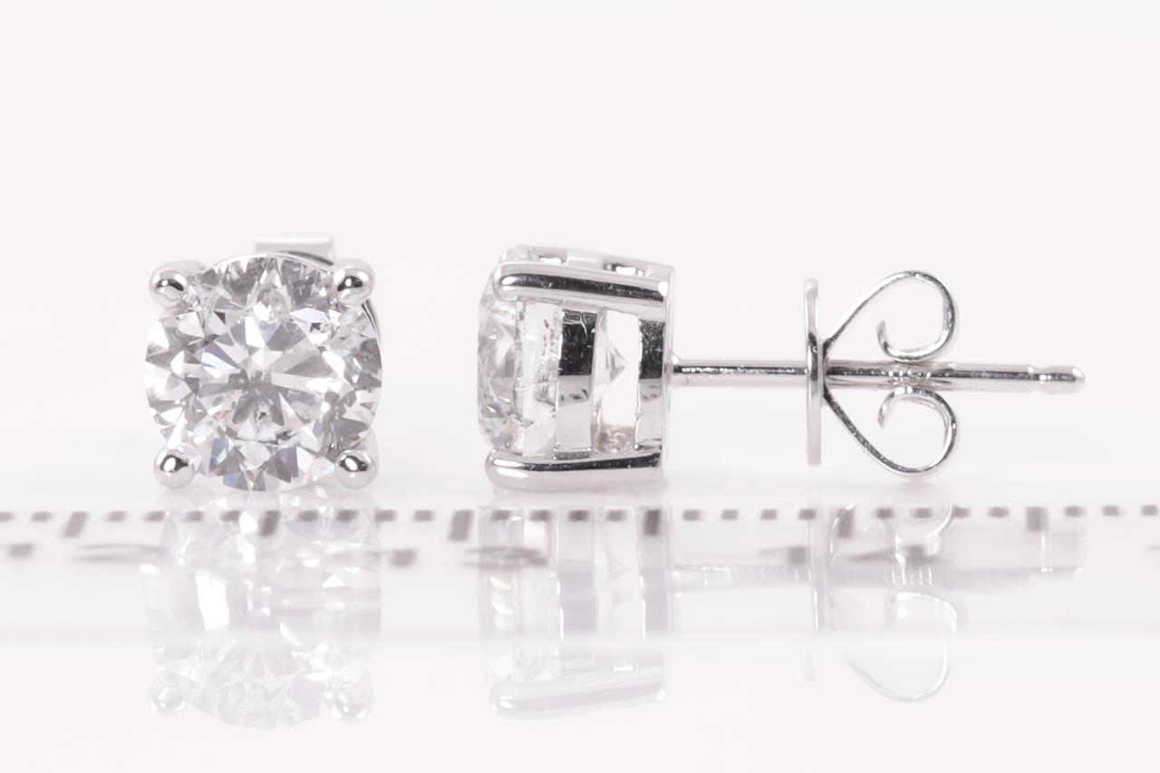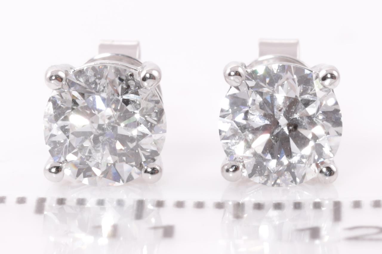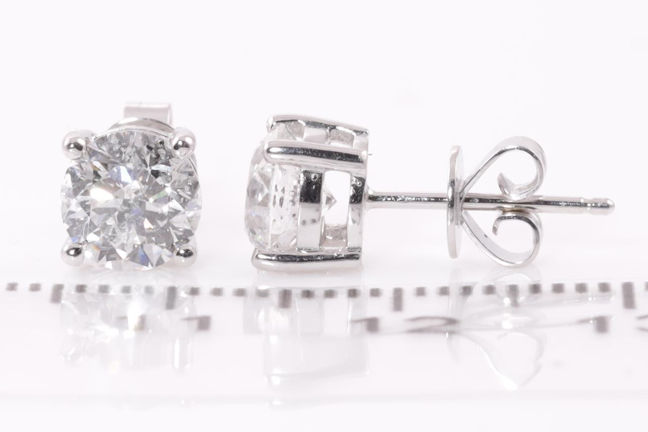 Diamond Stud earrings with 2 round brilliant cut Diamonds totalling 2.01cts (With GSL memos graded as F P1 #GSL291121-9, GSL291121-10). 18ct white gold. Weight: 2.3g (New)