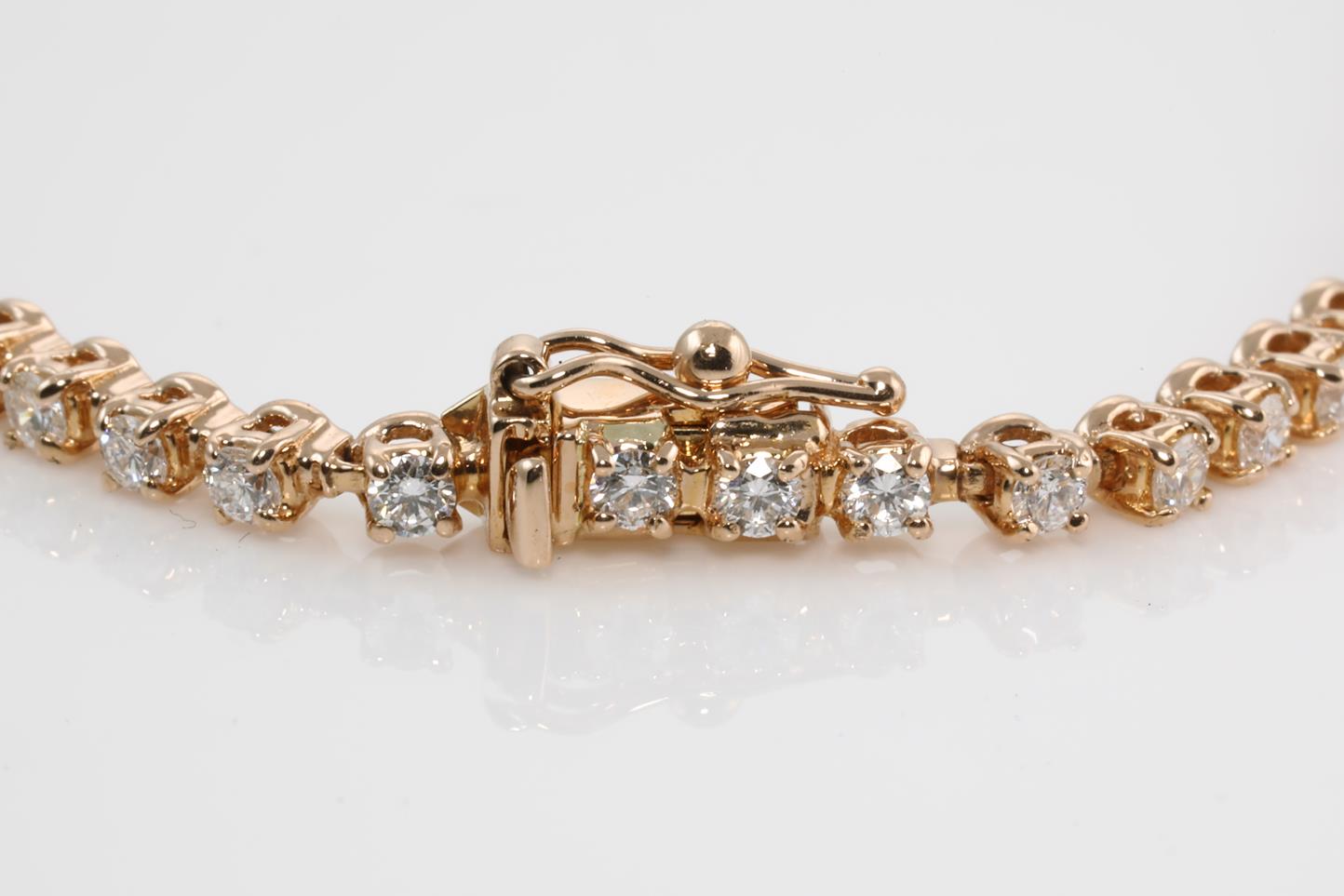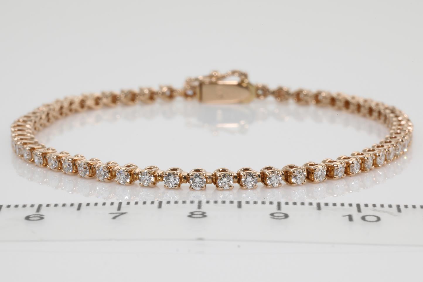 Diamond tennis bracelet with round Diamonds totalling 2.01cts (Estimated grading: H-I VS). 18ct rose gold. Length: 18.5cm. Weight: 8.4g (Pre-owned)