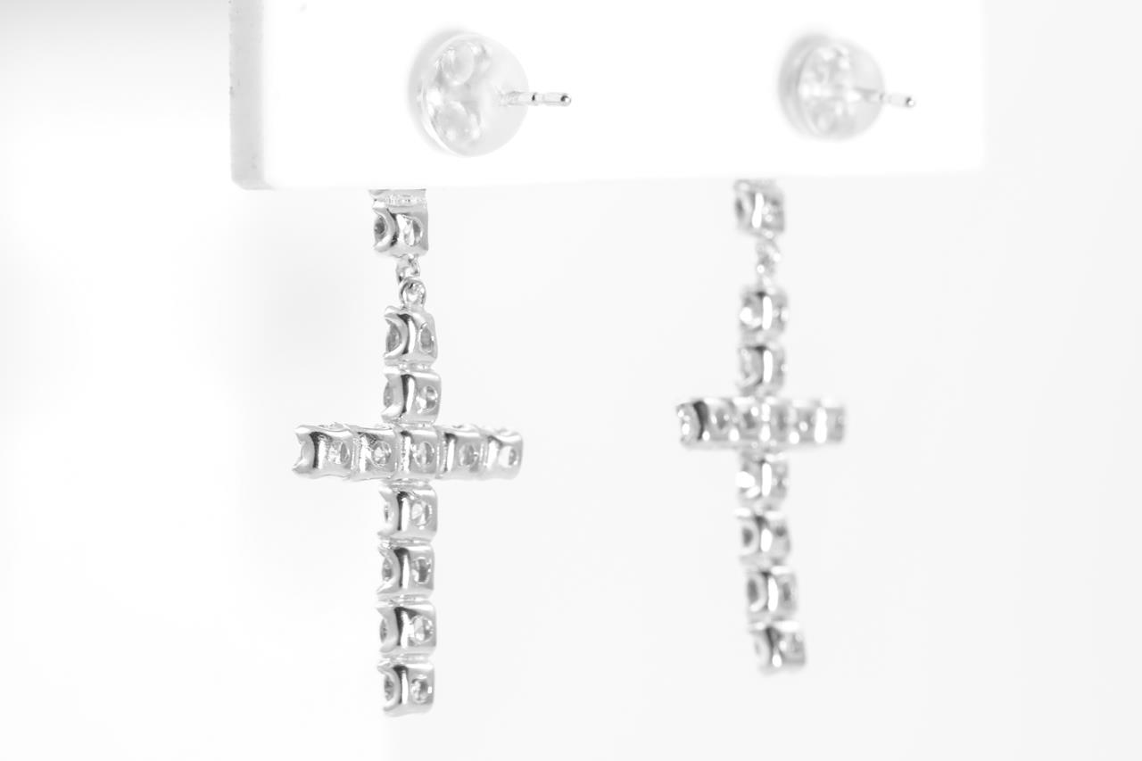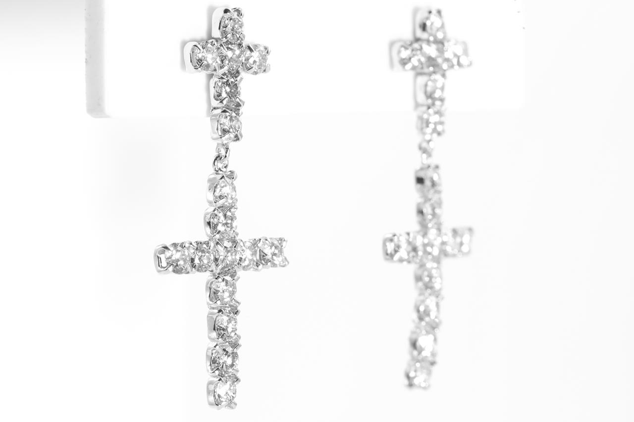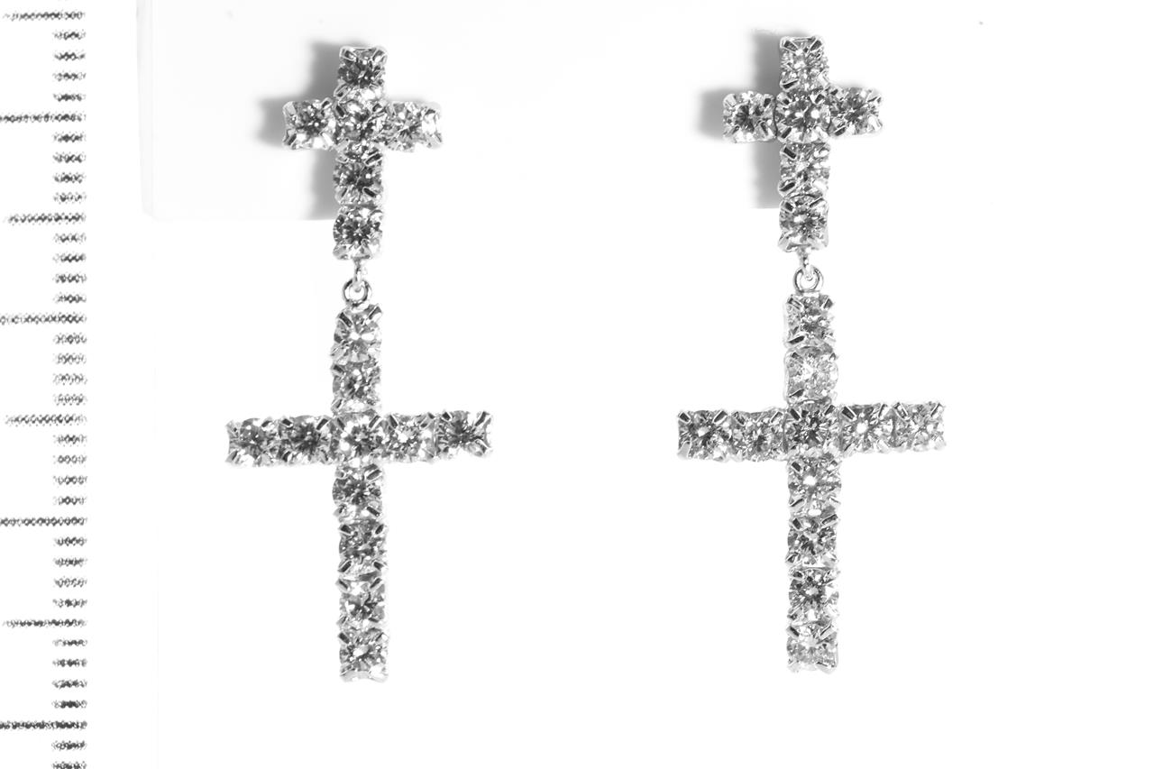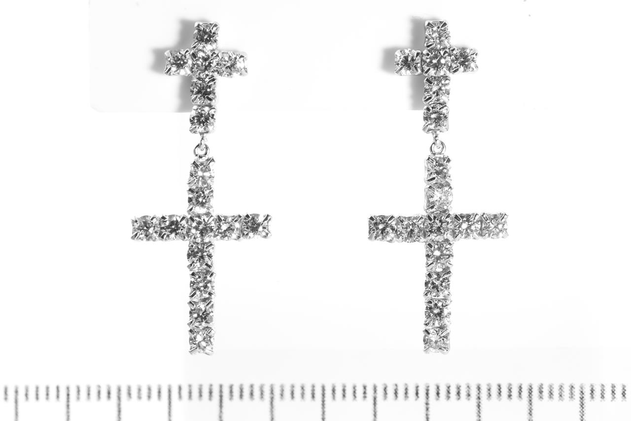 Double cross Diamond earrings with round Diamonds totalling 2.01cts (Estimated grading: I-J SI). 18ct white gold with gold & silicon bcaks. Weight: 1.8g. (Pre-owned)