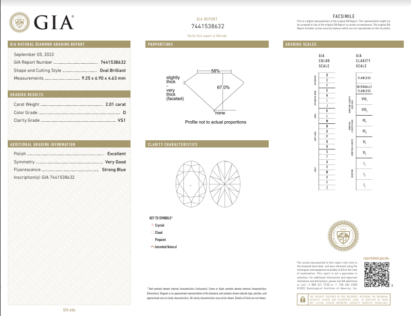 A loose oval cut Diamond of 2.01ct (with GIA report graded as D VS1#7441538632