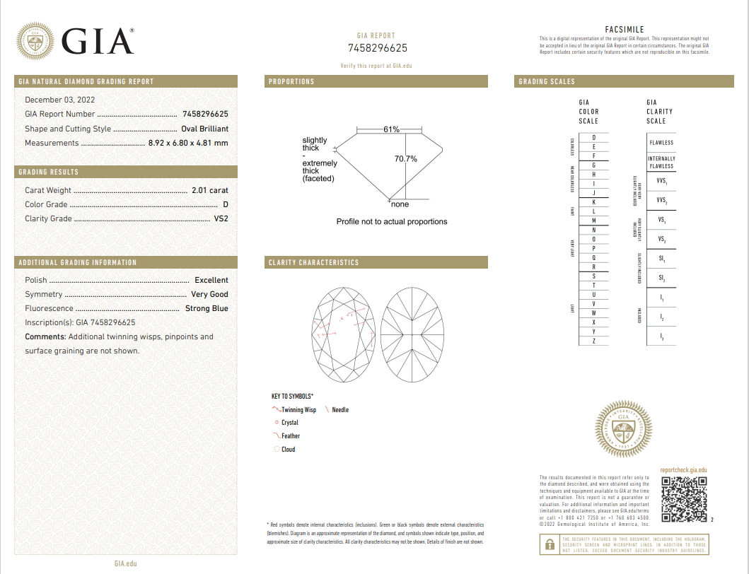 A loose oval cut Diamond of 2.01ct (with GIA report graded as D VS2#7458296625