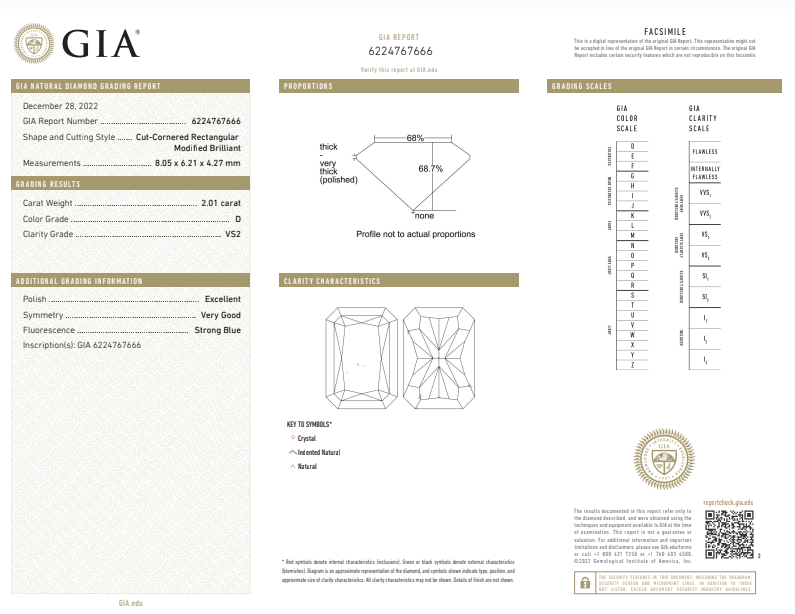 A loose radiant cut Diamond of 2.01ct (with GIA report graded as D VS2 #6224767666). (New)<br><br><STRONG>*Shipping:</STRONG> <BR>This item will be dispatched 7 working days after full payment is received <BR><BR><STRONG>*Viewing:</STRONG> <BR>Pre-auction viewing is unavailable for this item