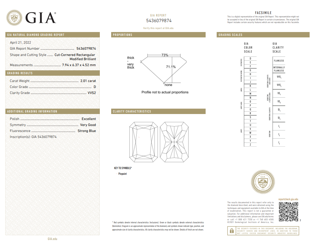 A loose radiant cut Diamond of 2.01ct (with GIA report graded as D VVS2 #5436079874). (New)