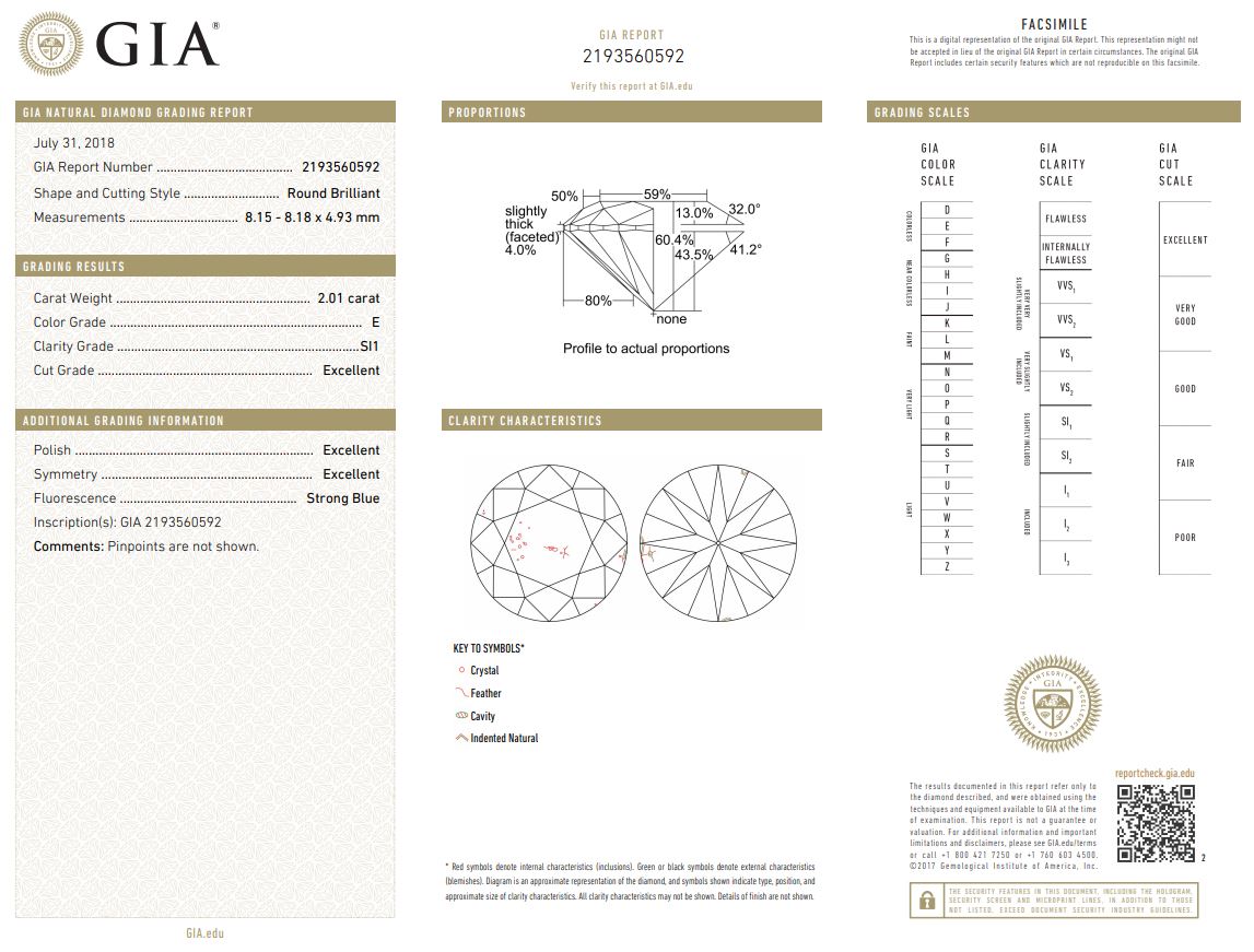 A loose Round Brilliant Cut Diamond of 2.01ct (with GIA report graded as E SI1 #2193560592). (New)