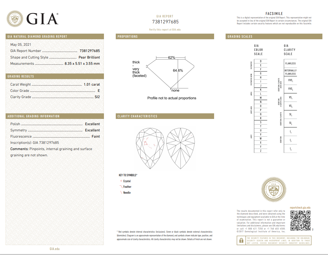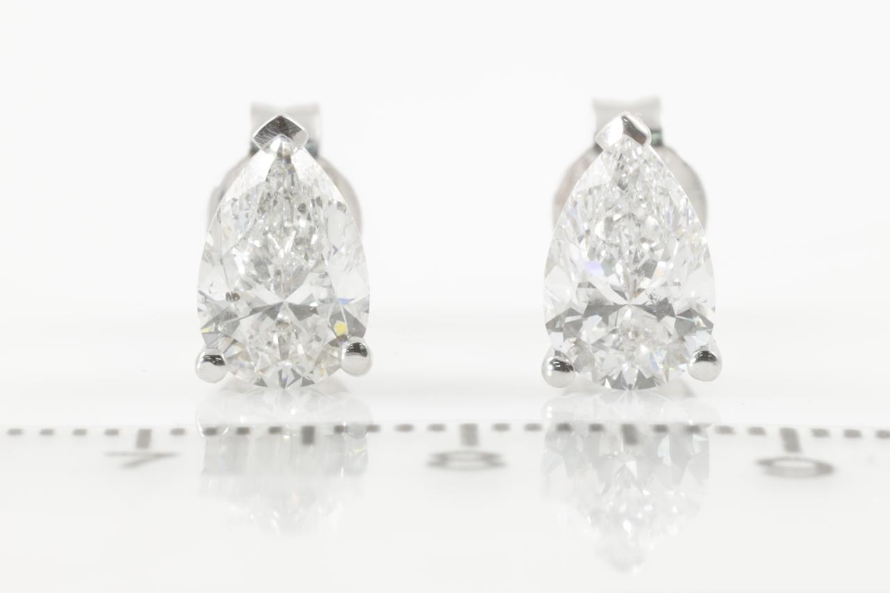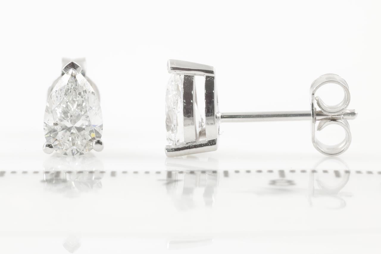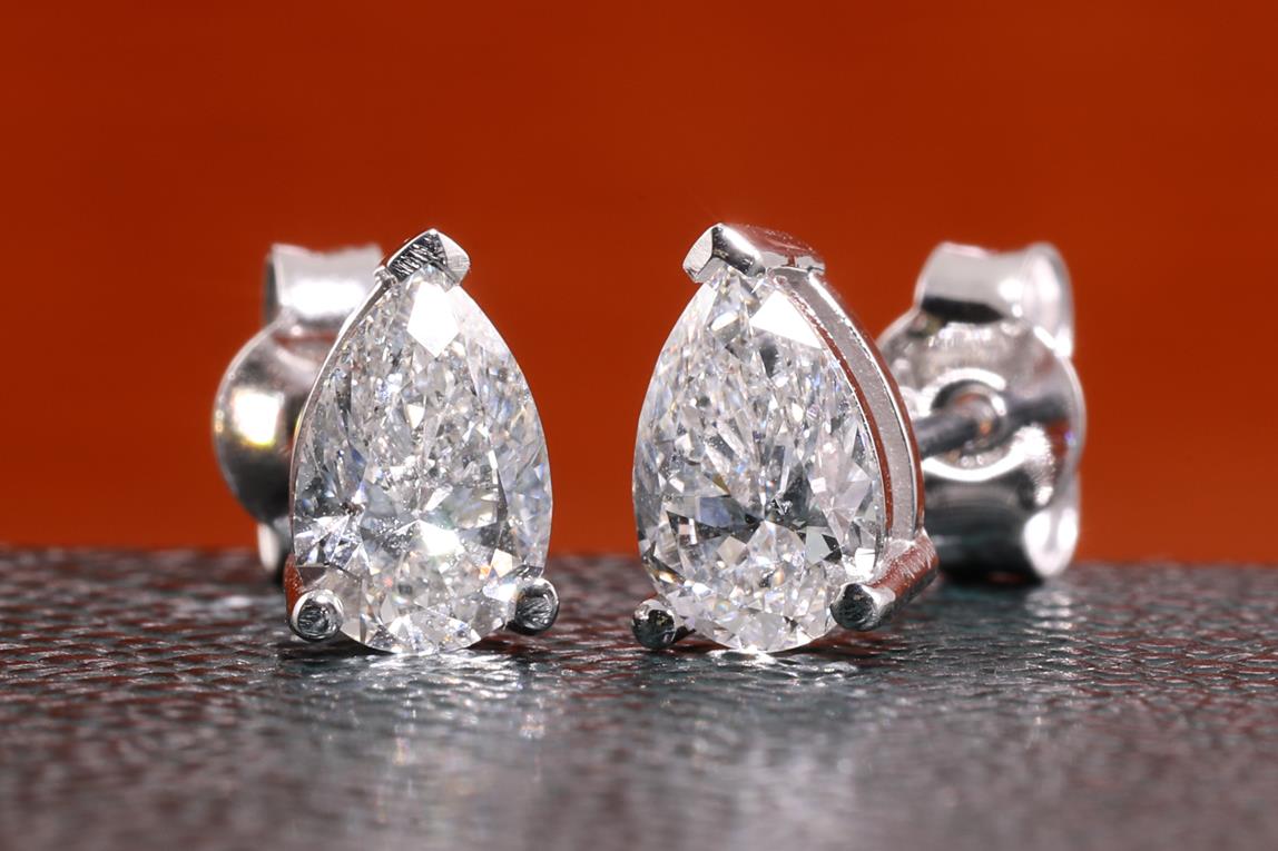 Diamond stud earrings with 2 Pear shape Diamonds totalling 2.02cts (both with GIA report both graded as E-F SI2#7381297685, 1389597636). 18ct white gold. Weight: 3.0g (New)