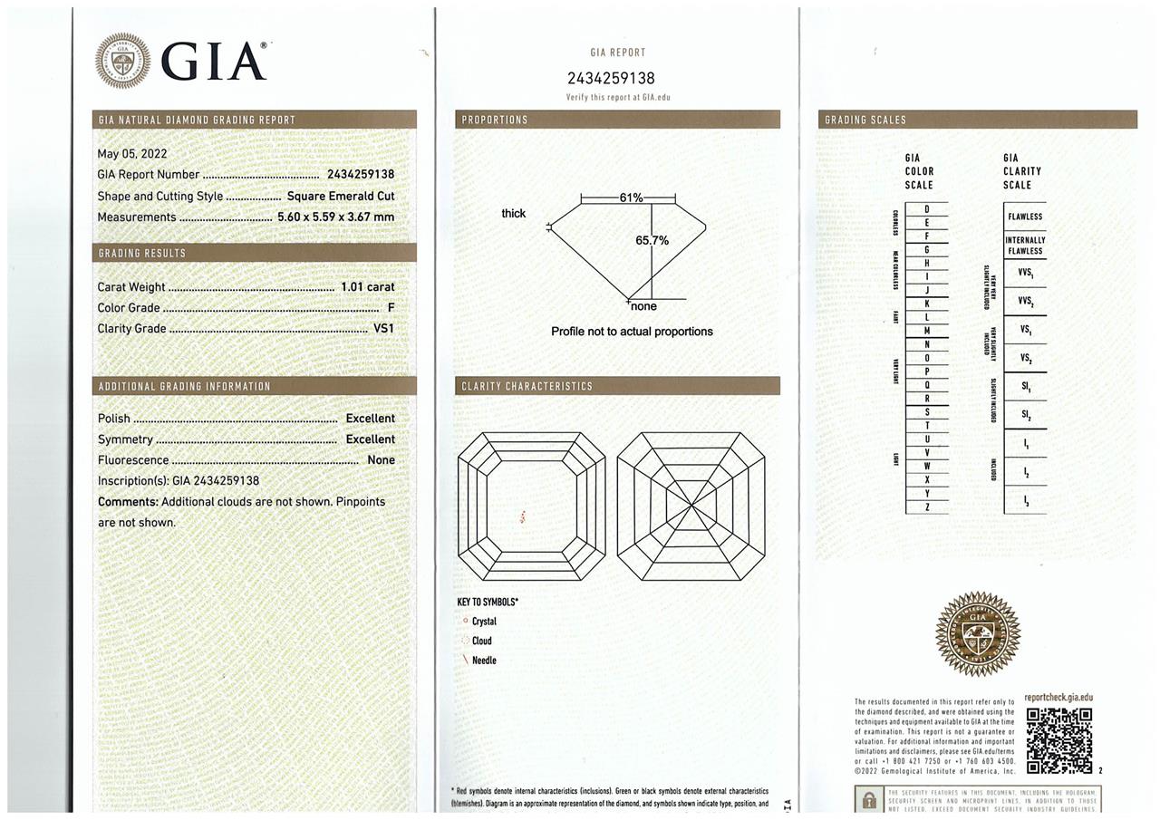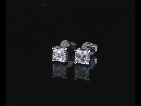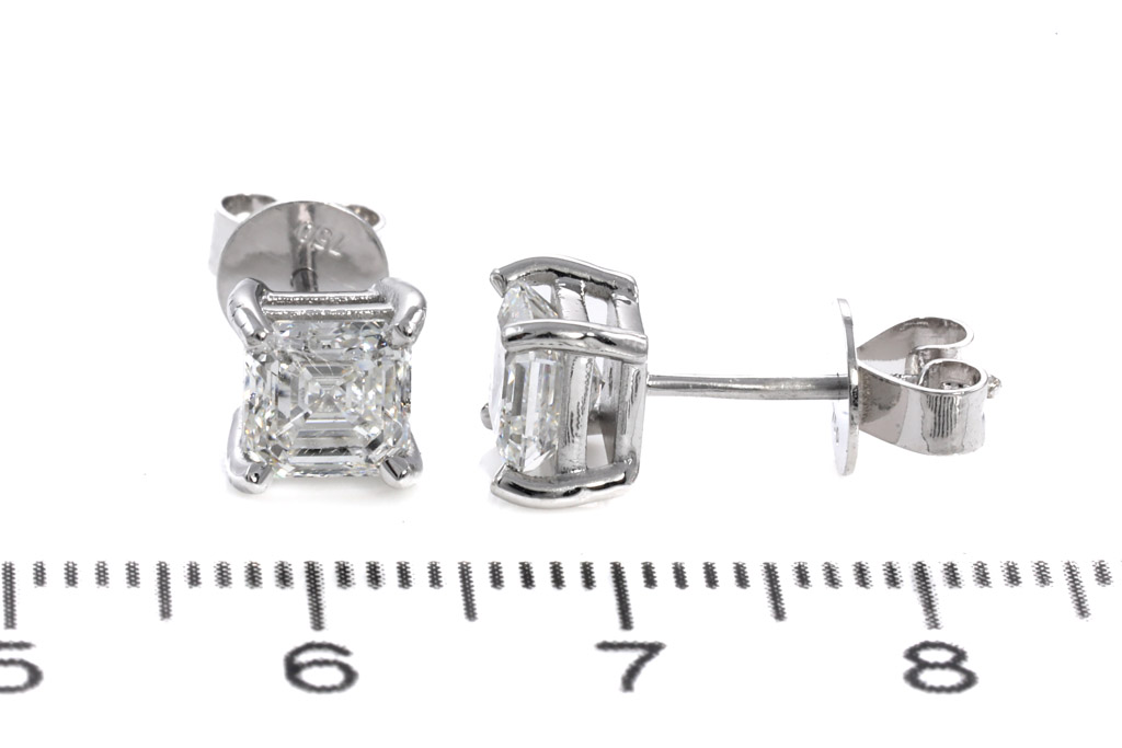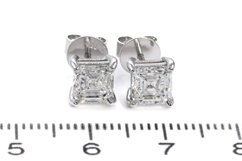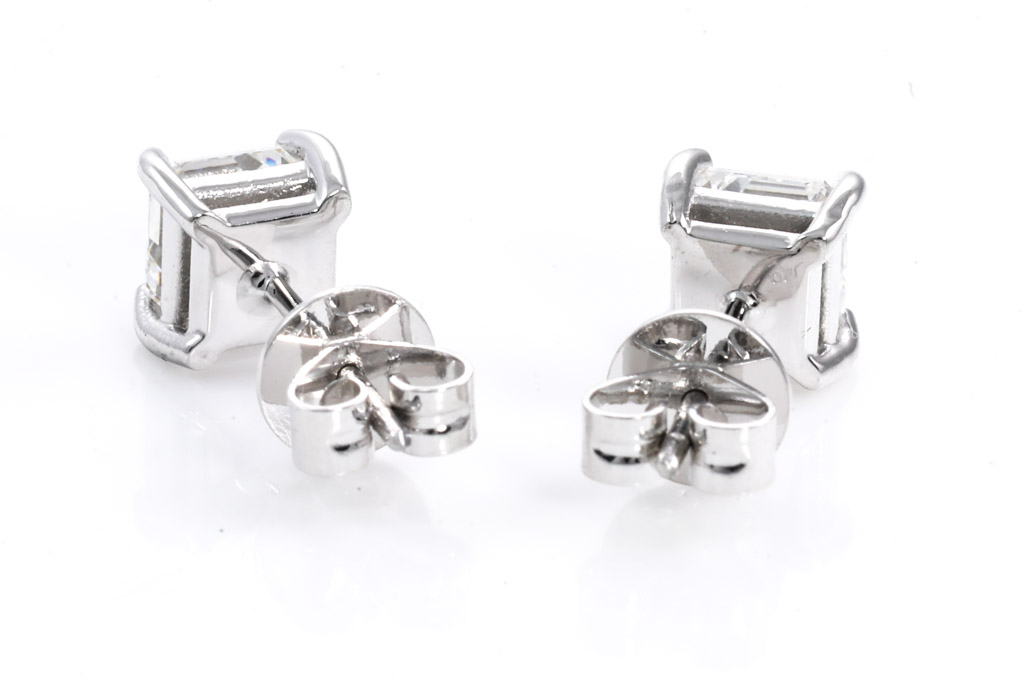 Diamond stud earrings with 2 square emerald cut Diamonds totalling 2.02cts (both with GIA reports graded as F VS1 #1226422181, 2434259138). 18ct white gold. Weight 3.1g. (New)