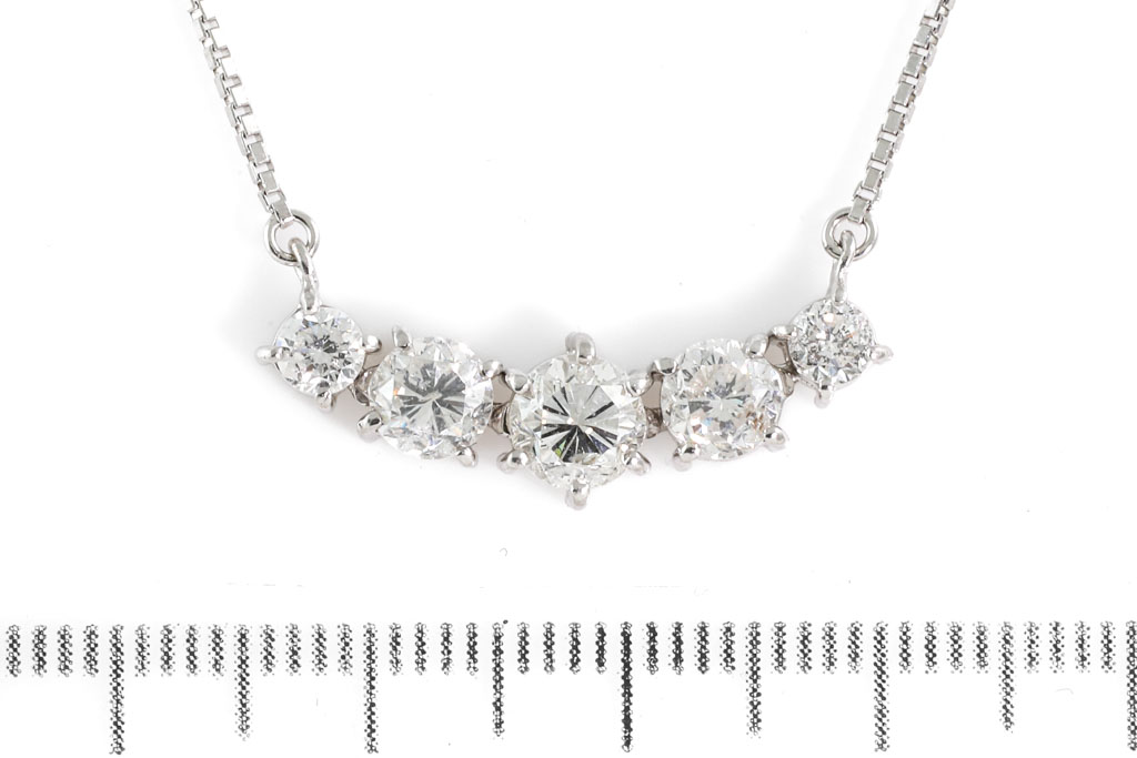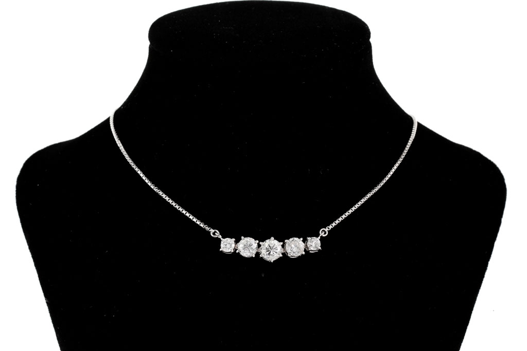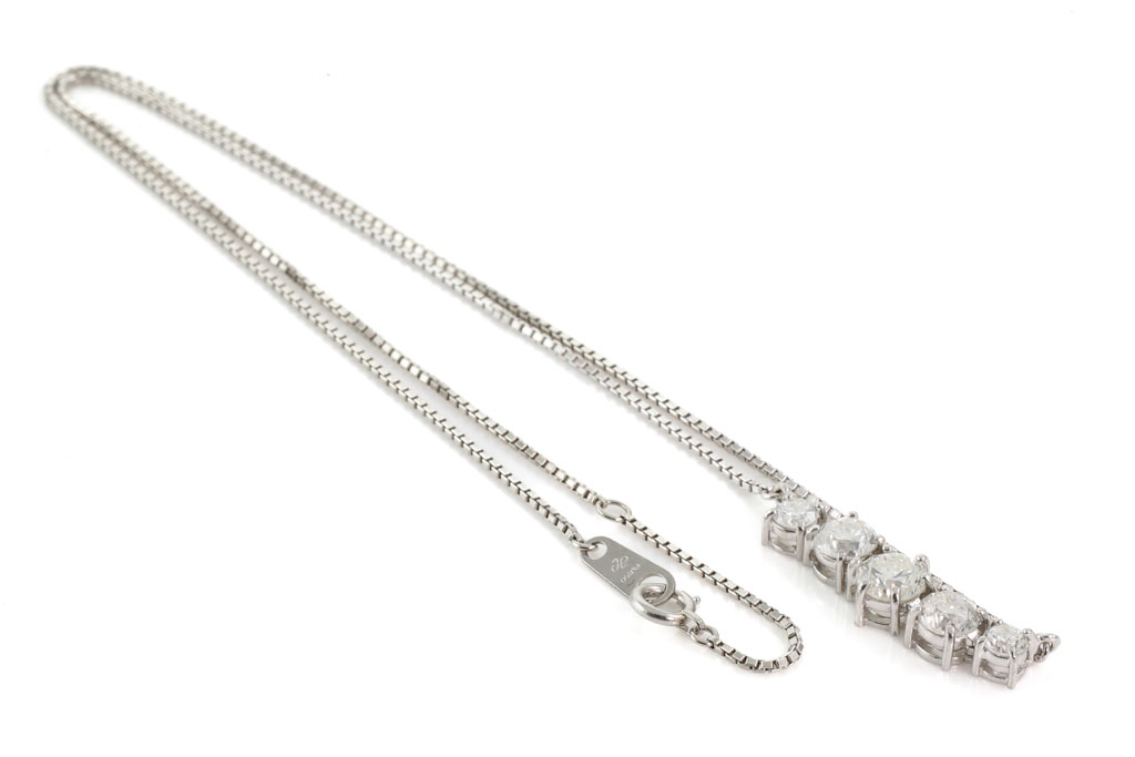 Diamond pendant with 5 round Diamonds totalling 2.02cts (Estimated grading: H-I SI-P1). Platinum - 850 with platinum max 41cm chain. Weight: 5.8g. (Pre-owned)