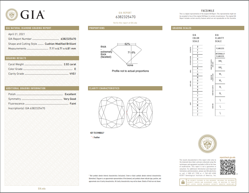 A loose Cushion cut Diamond of 2.02ct (With GIA report graded as E VVS1 #6382325470). (New)