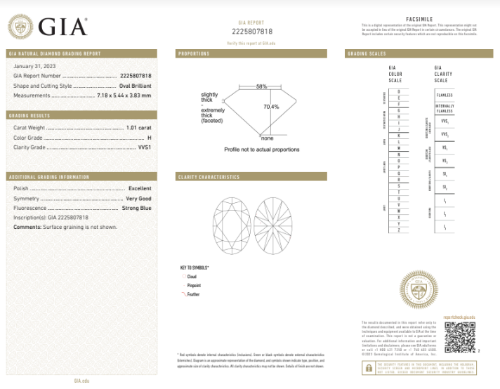 A loose pair of oval cut Diamonds totalling 2.02cts (Both with GIA reports graded as H VVS1# 2438958164, 2225807818). (New)<br><br><STRONG>*Shipping:</STRONG> <BR>This item will be dispatched 7 working days after full payment is received <BR><BR><STRONG>*Viewing:</STRONG> <BR>Pre-auction viewing is unavailable for this item
