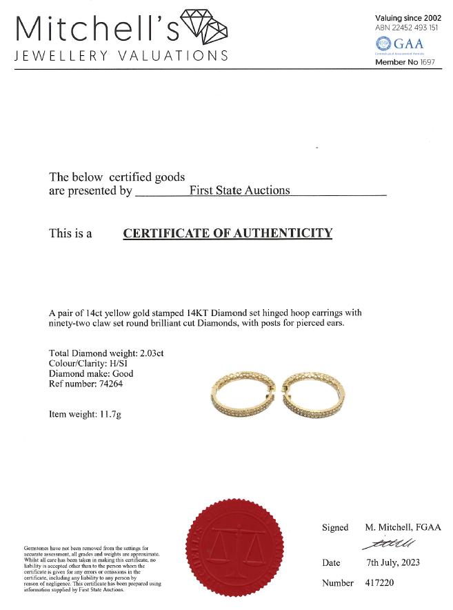 2.03ct Diamond Hoop Earrings | First State Auctions