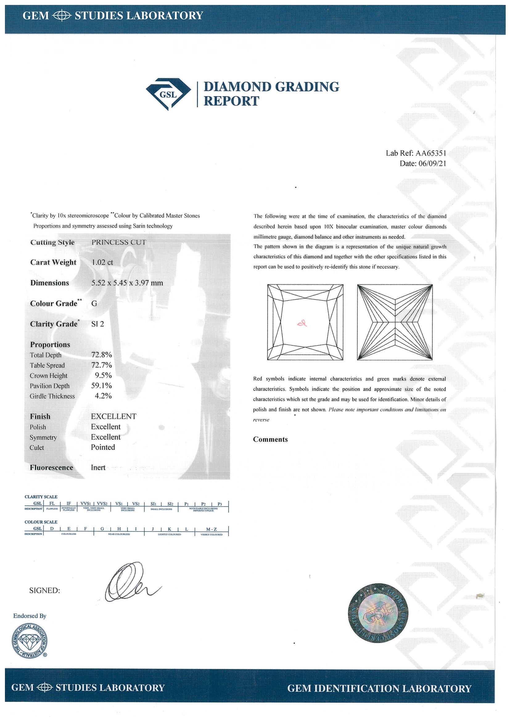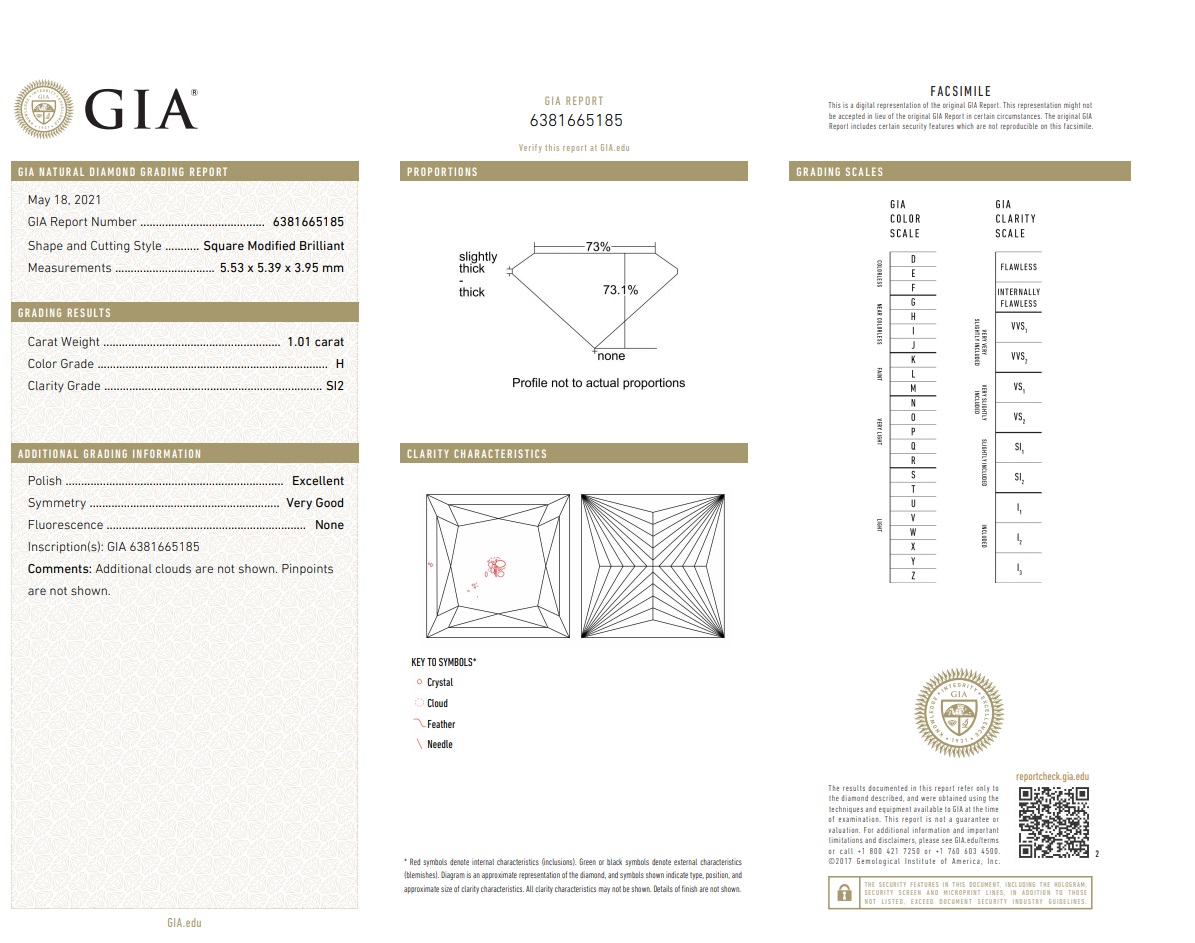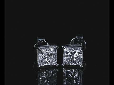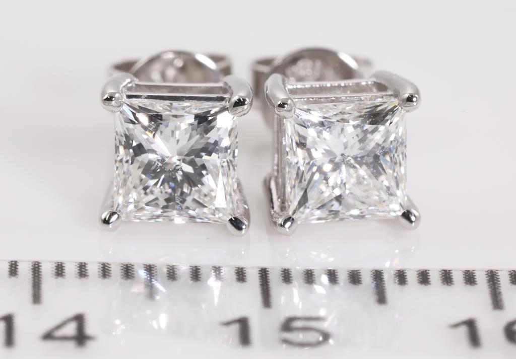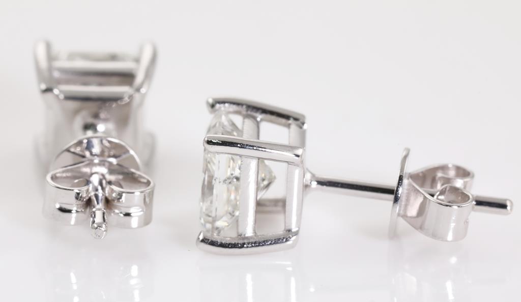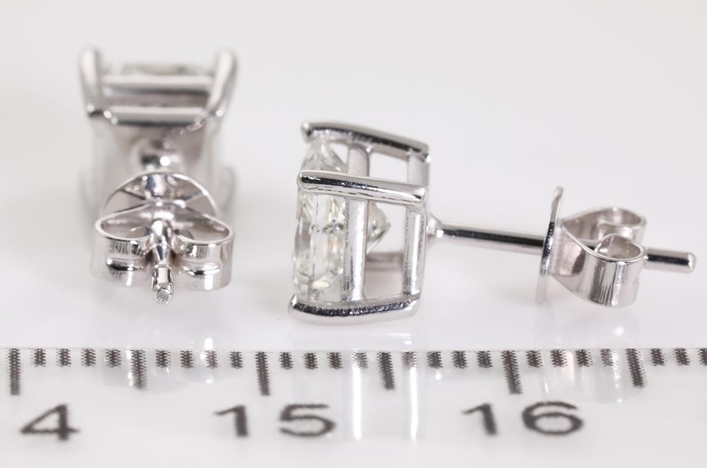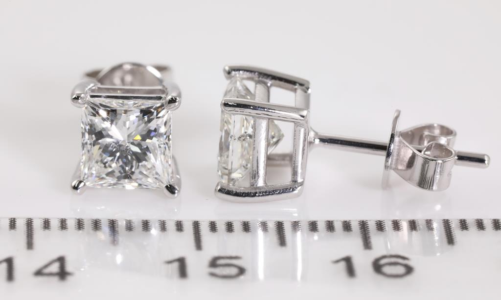 Diamond Stud Earrings with princess cut (square modified brilliant) Diamonds totalling 2.03ct (with GIA report both graded as H SI2 #6381665185 and GSL Report # AA65351 graded as G SI2) set in 18ct white gold. Weight: 2.8g. (New)