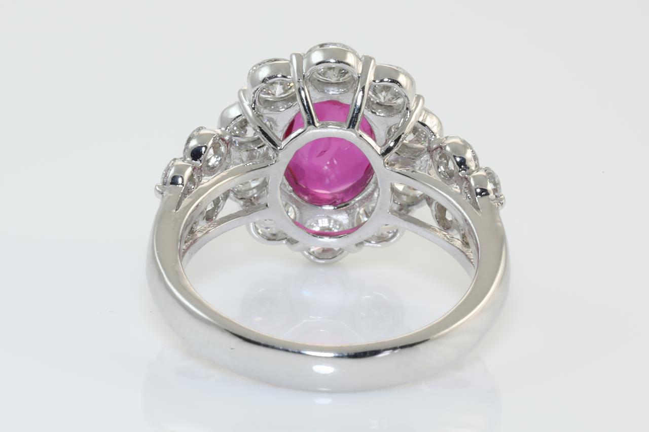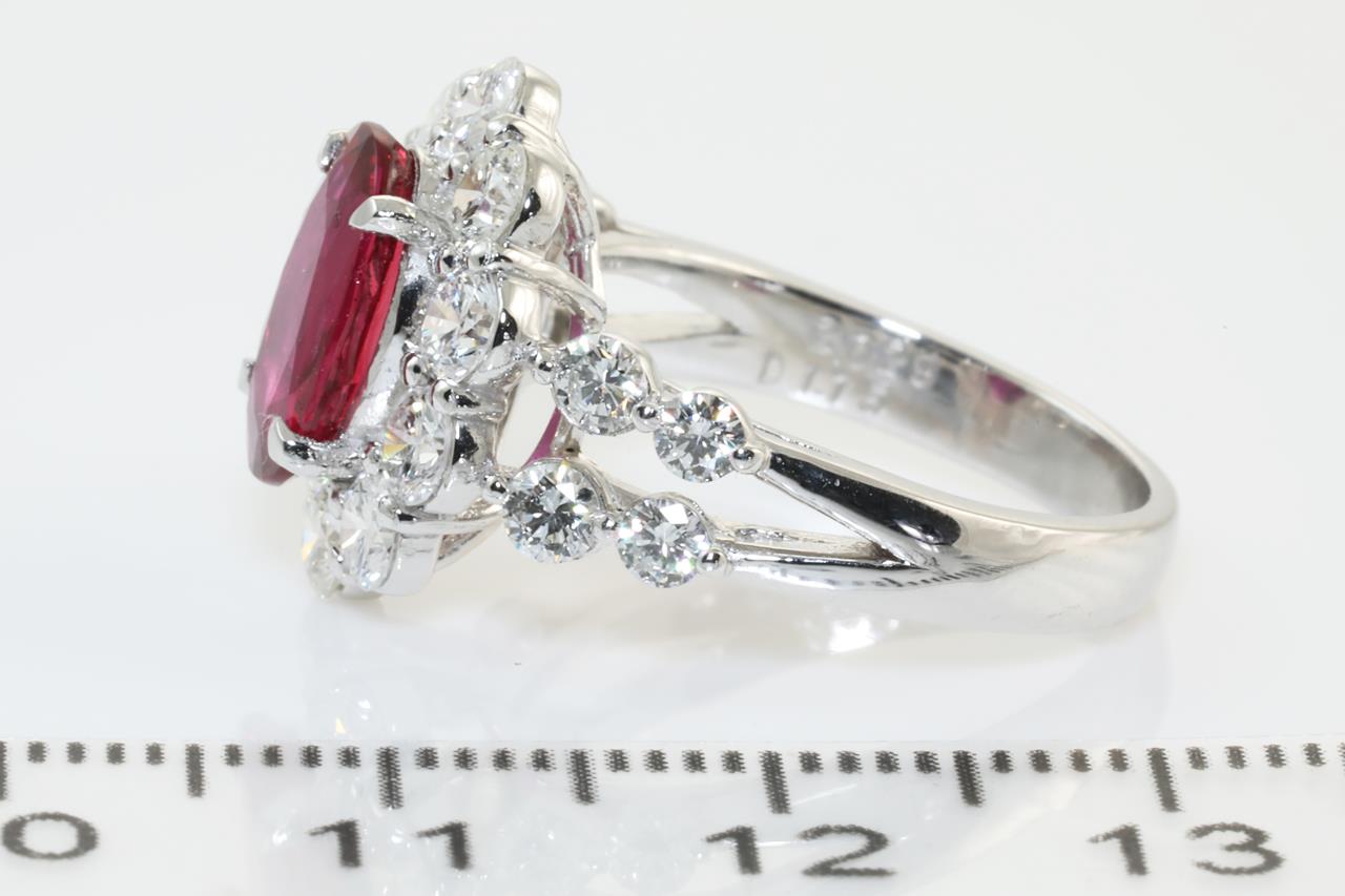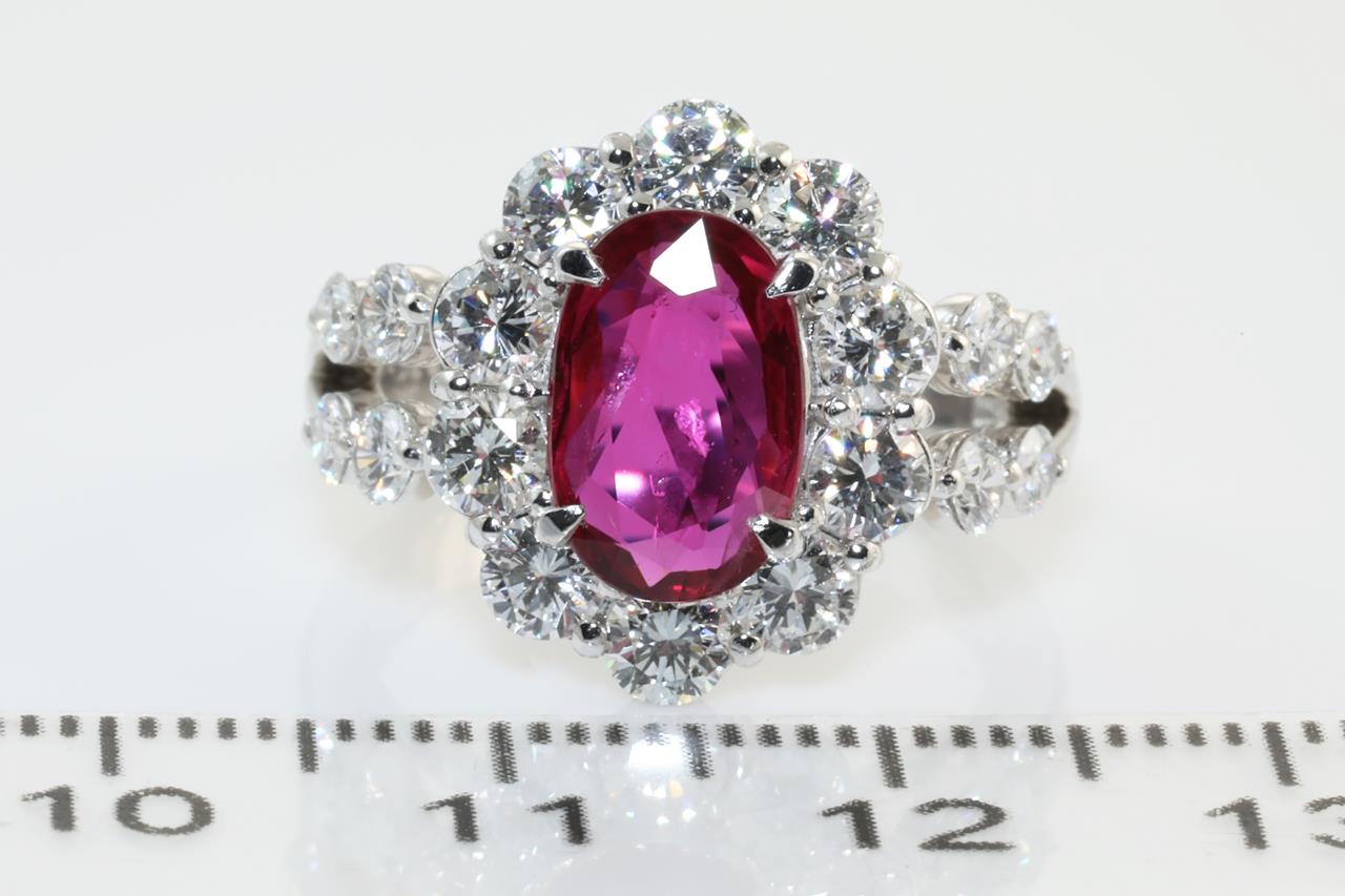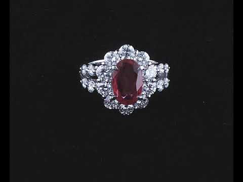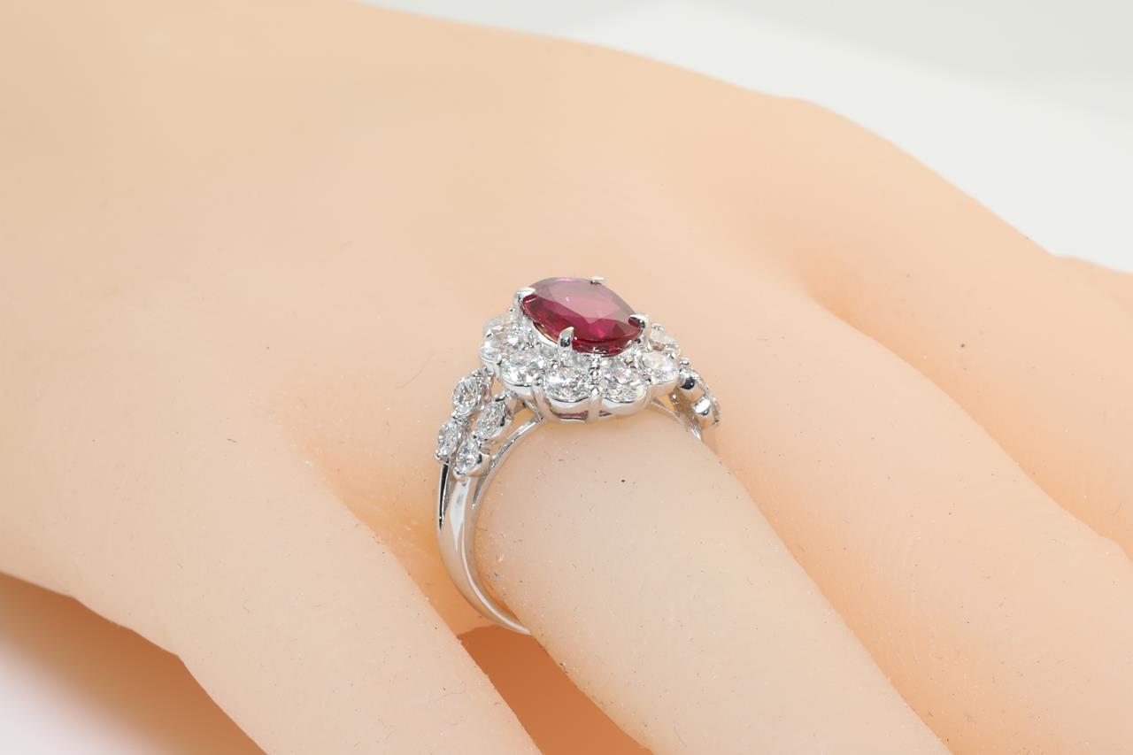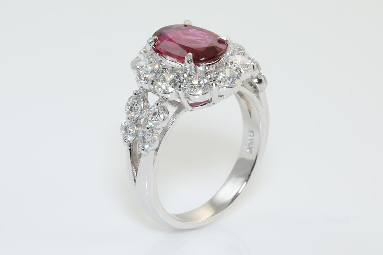 Ruby and Diamond ring with oval shape Thai Ruby of 2.03ct (with GIA report #6312897722) and round Diamonds totalling 1.75cts (Estimated grading: G-H VS-SI). Platinum. Ring size: L1/2. Weight: 8.0g (Pre-owned)