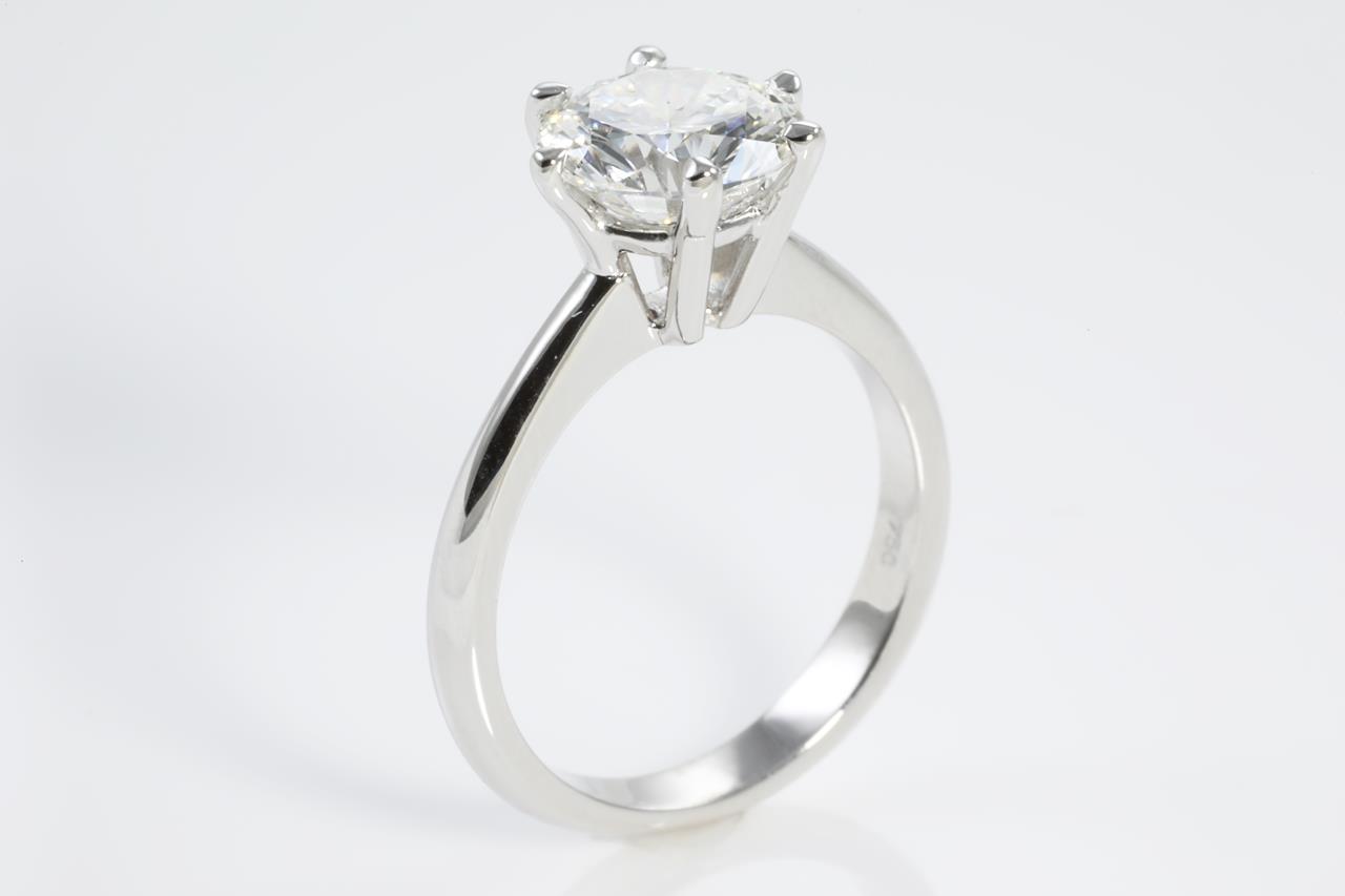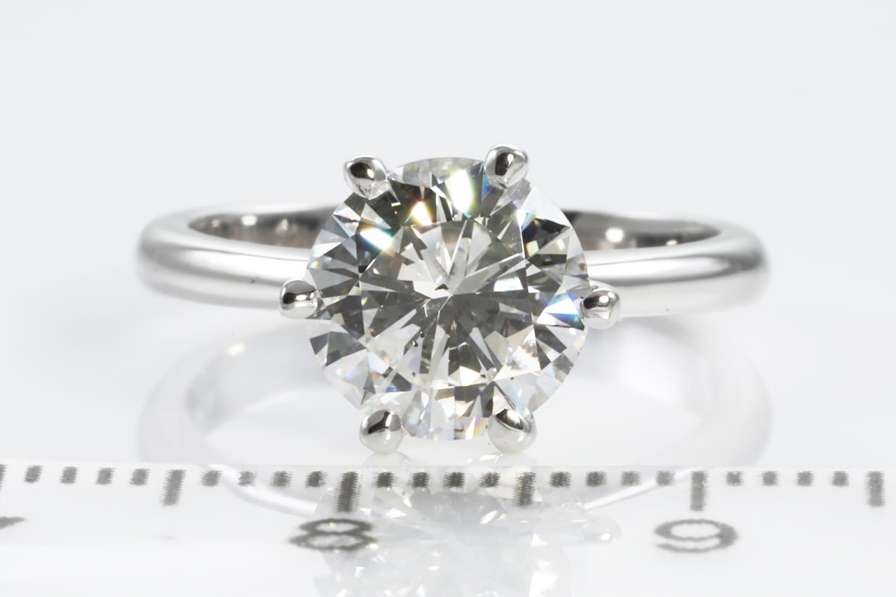 Diamond solitaire ring with round brilliant cut Diamond of 2.04ct (With GSL report graded as F SI1 #AA62515/4). 18ct white gold. Ring size J1/2. Weight: 4.6g (As New)