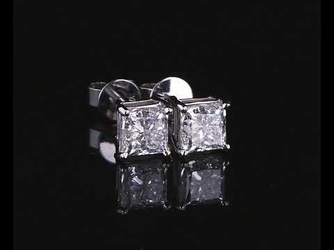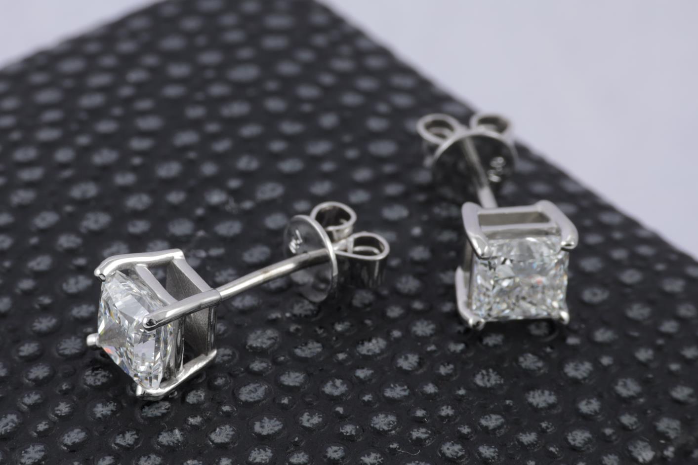 Diamond Stud Earrings with 2 princess cut (square modified brilliant) Diamonds totalling 2.04ct (with GIA reports both graded as E VS2 & F VS2 #2417197021, 2225132512) set in 18ct white gold. Weight: 2.2g. (New)