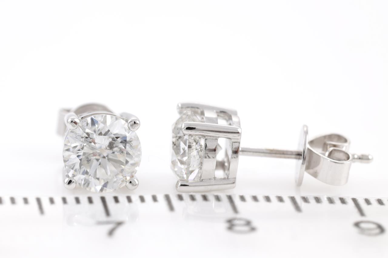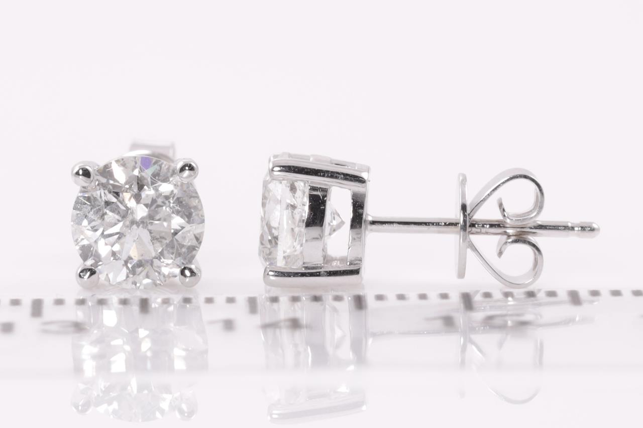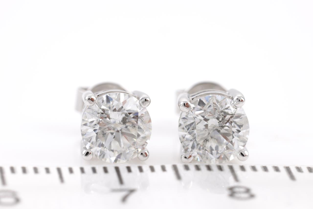 Diamond Stud earrings with 2 round brilliant cut Diamonds totalling 2.06cts (With GSL memos graded as G P2 and H P2 #GSL291121-17, GSL291121-18). 18ct white gold. Weight: 2.4g (New)