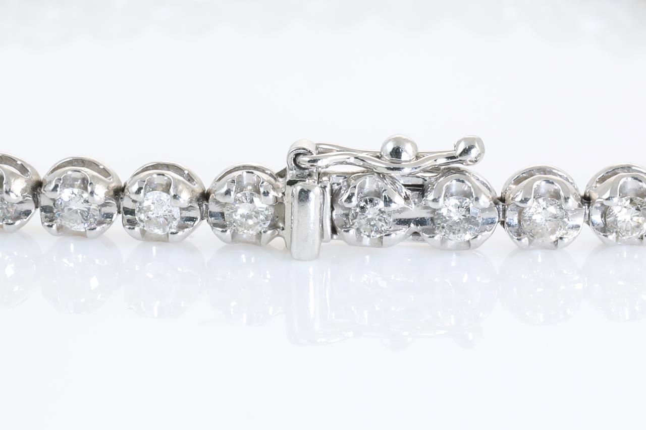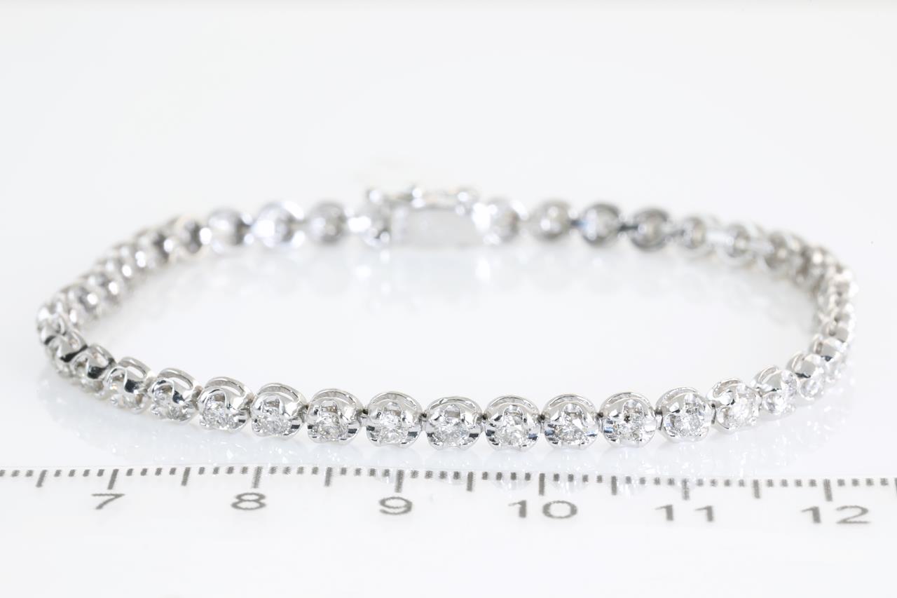 Diamond Tennis Bracelet with round Diamonds totalling 2.07cts (Estimated grading: H-I P1-2). Platinum. Length: 18cm. Weight: 12.1g (Pre-owned)