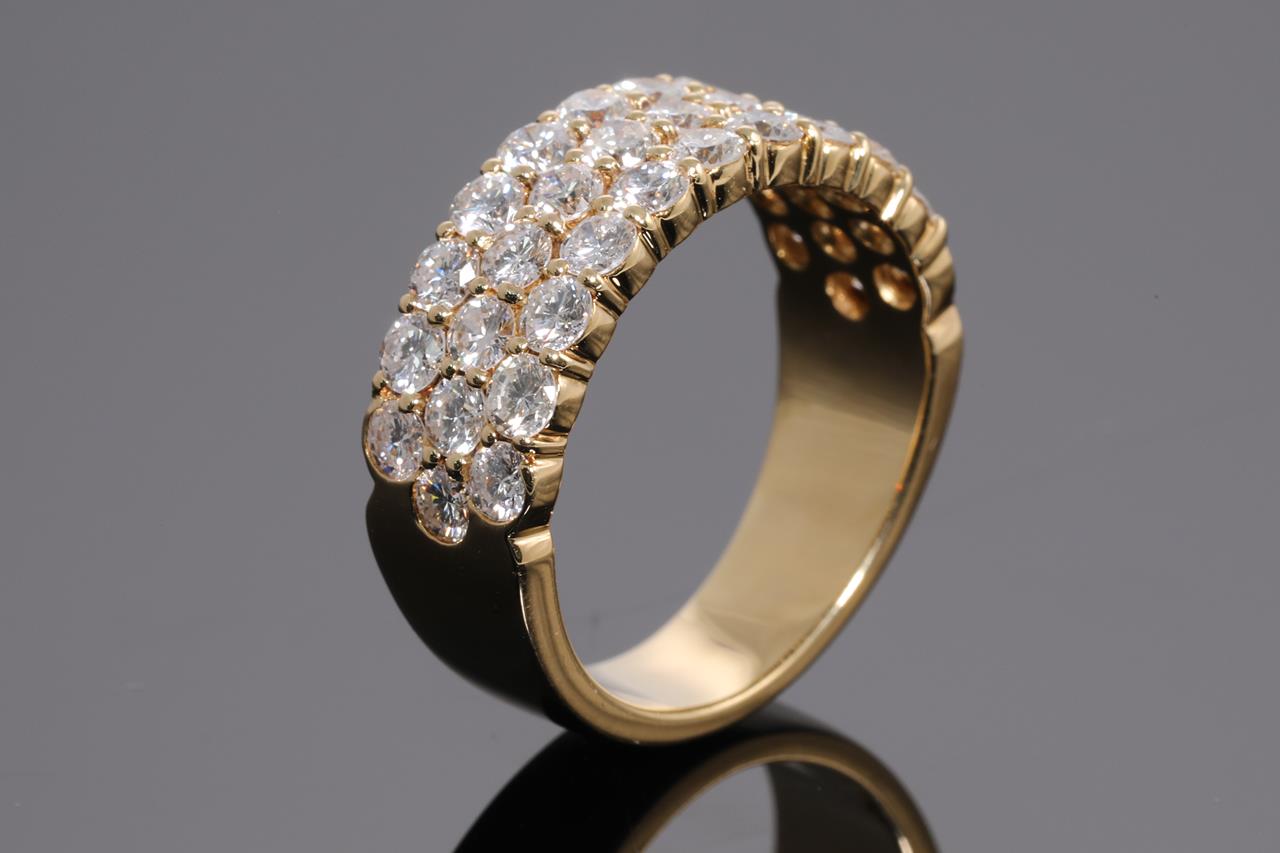 Diamond dress ring with round Diamonds totalling 2.08cts (Estimated grading: H SI). 18ct yellow gold. Ring size M. Weight: 7.7g (Pre-owned)
