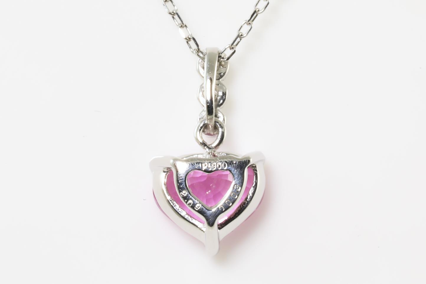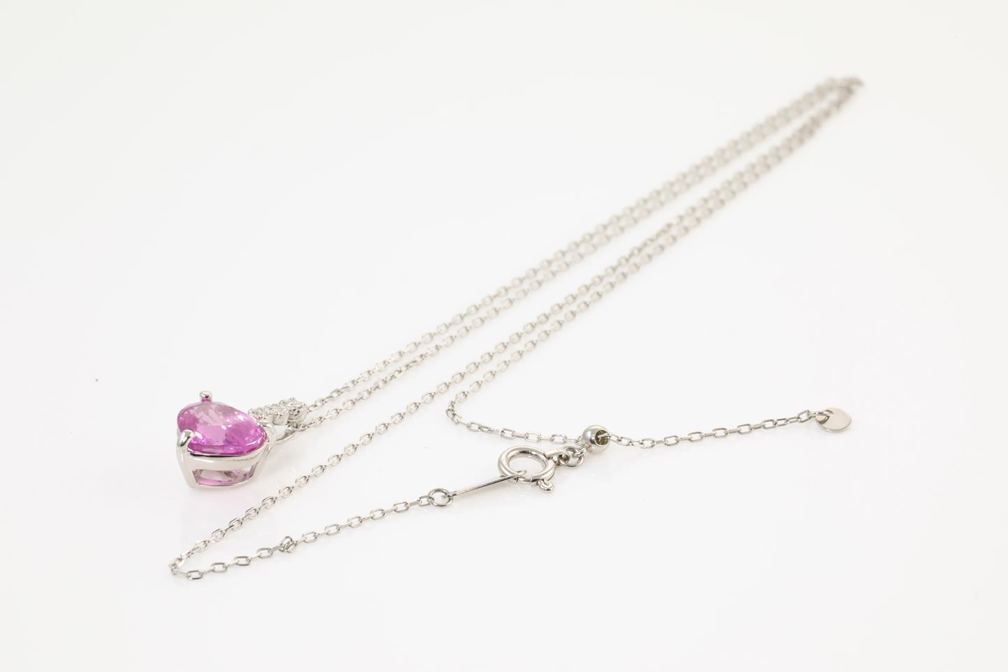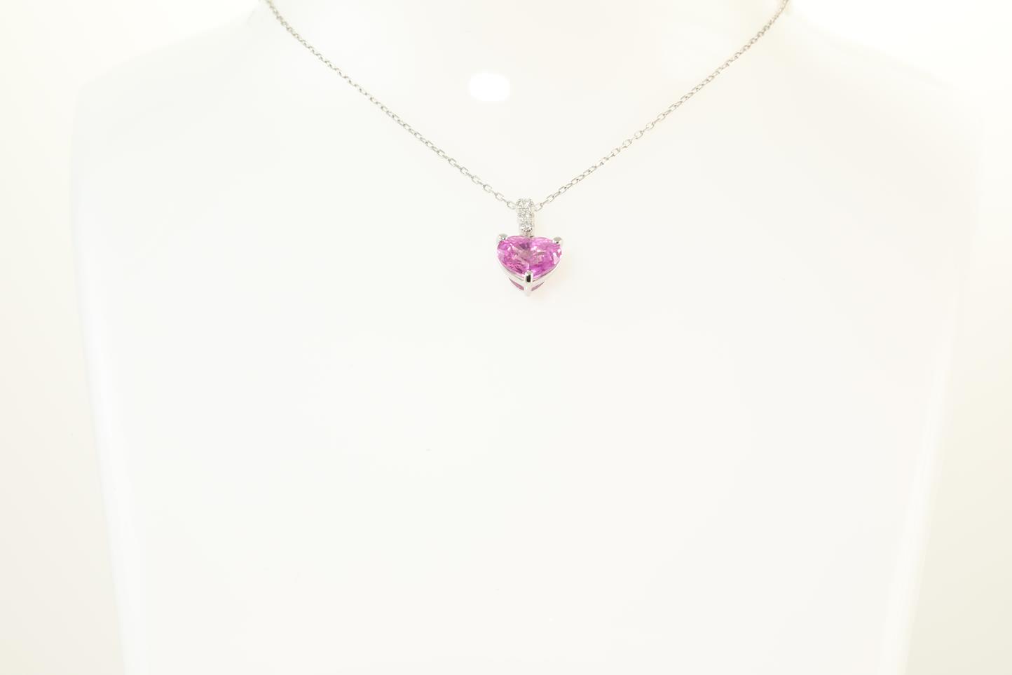 Sapphire and Diamond pendant with heart shape Pink Sapphire of 2.09ct (with GRS report #GRS2019-068630) and Diamonds totalling 0.03cts. Platinum with platinum 45cm adjustable chain. Weight: 2.9g (Pre-owned)