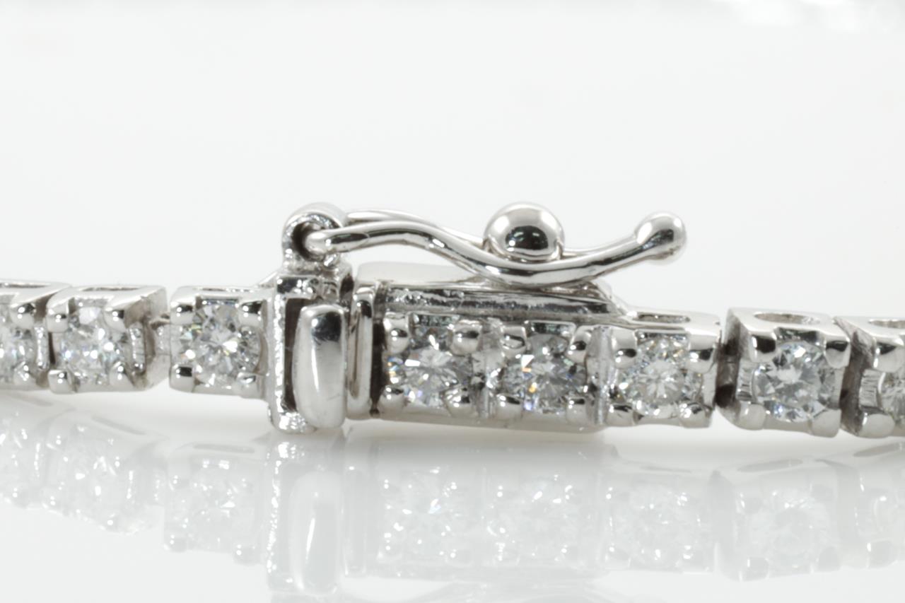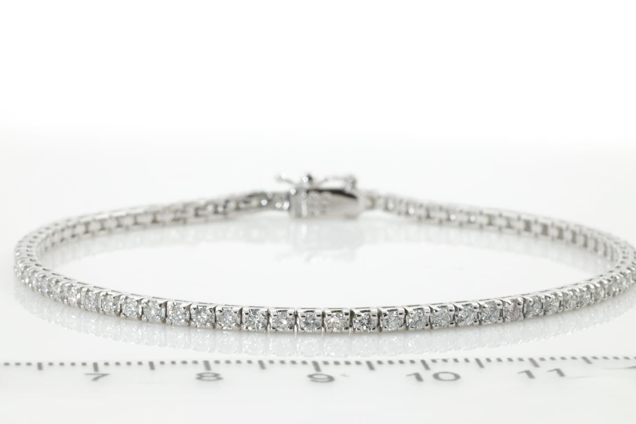 Diamond Tennis bracelet with round diamonds totalling 2.10cts (Estimated grading: G-H SI-P1). Platinum. Length 19cm. Weight: 9.5g (Pre-owned)